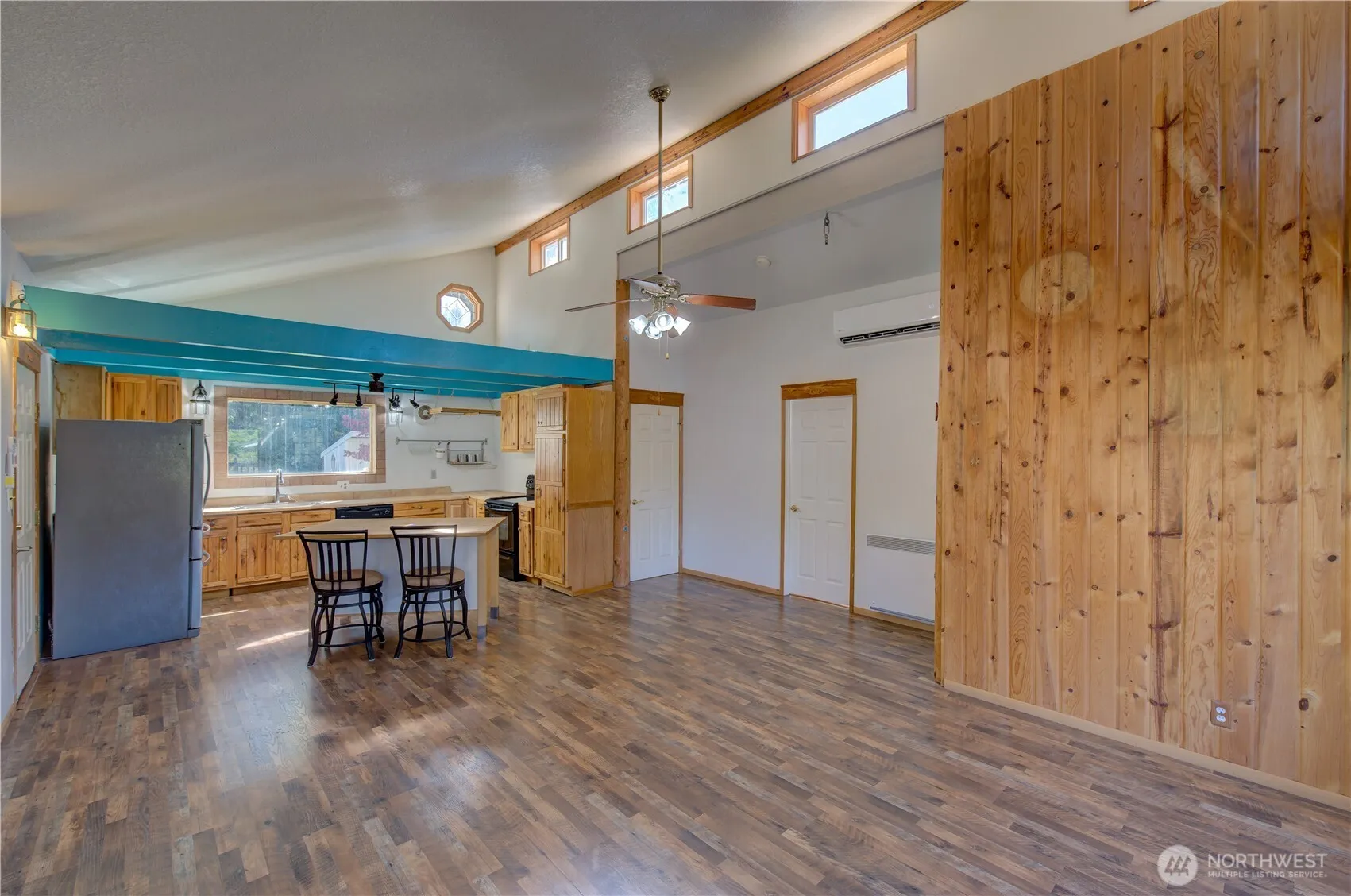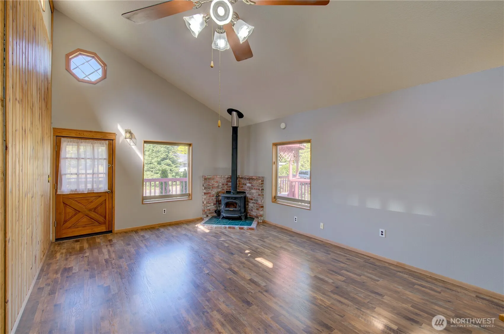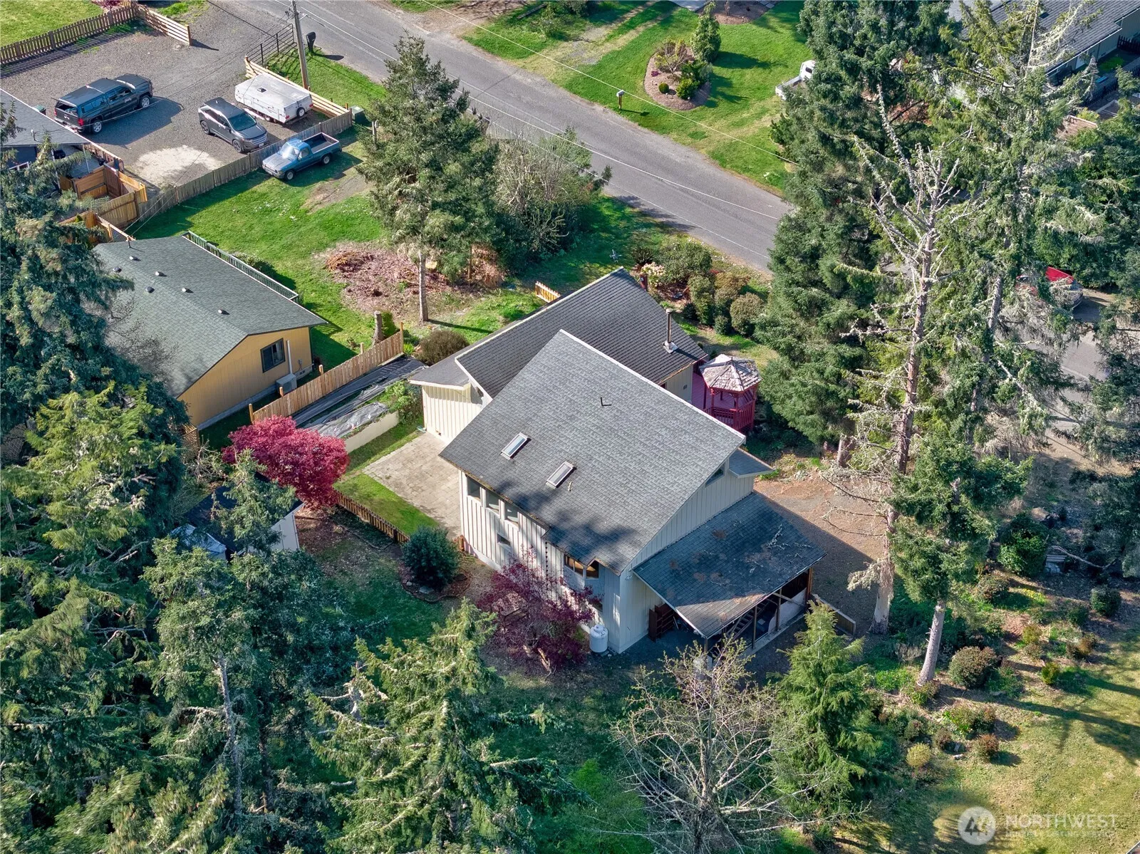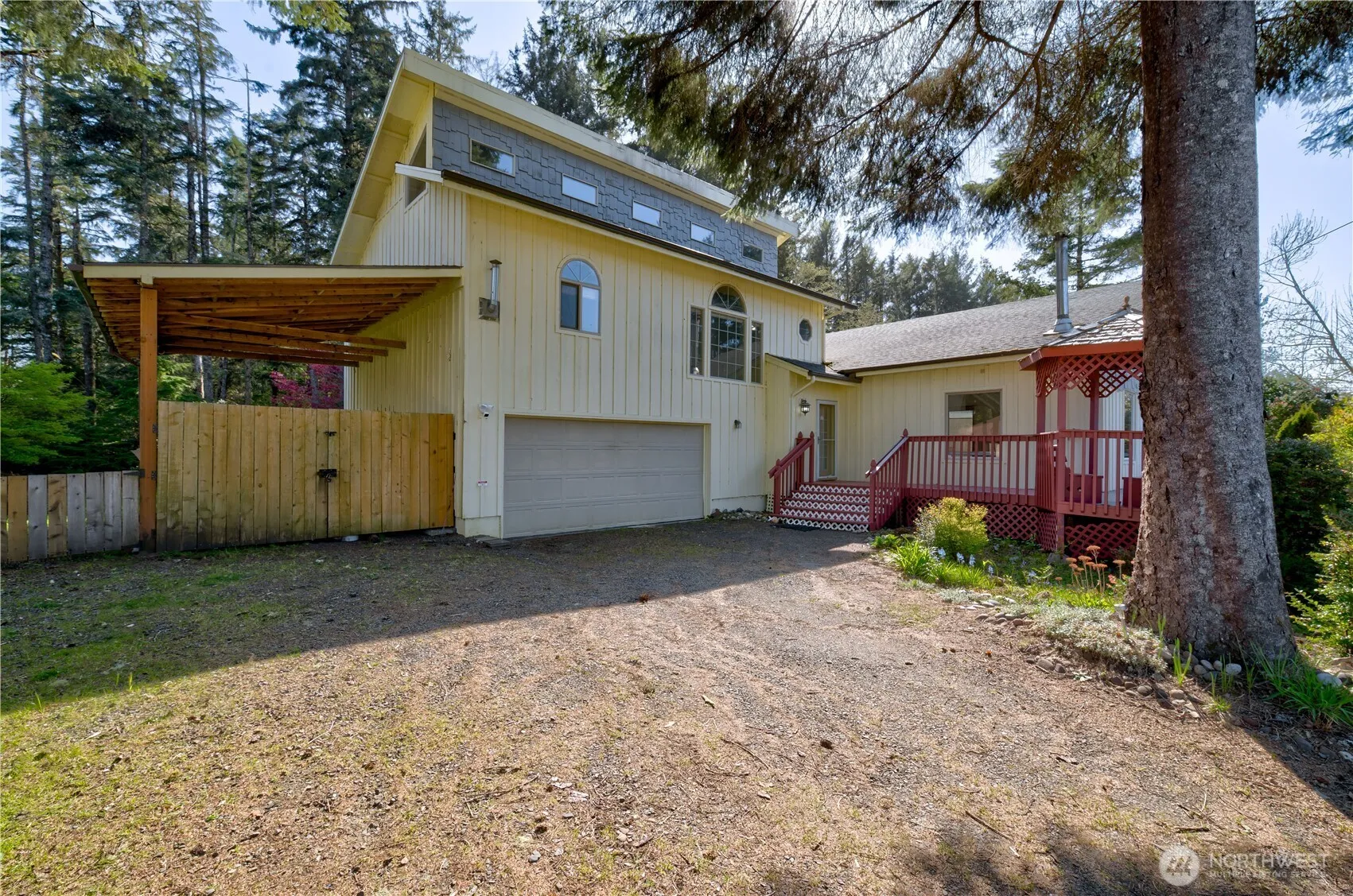 One of a kind Tides West 3 bedroom. Recently refreshed and move in ready. Open kitchen and living room floor plan. Wood burning fireplace to keep you cozy. Adorable kitchen with view of private back yard and patio. 2 bedrooms and full bath off the living room. Head on upstairs to a spacious great room and private primary suite with attached bathroom and walk in closet. Propane fireplace in primary bedroom. Head on down to the oversize laundry and utility room with patio and garage access. 2 car garage with lots of storage. Step outside and enjoy the fenced patio and grass area. Beyond the fence- there is raised bed gardens, a tool shed and stunning territorial views. Tides West community has private lake and beach access. Welcome Home!