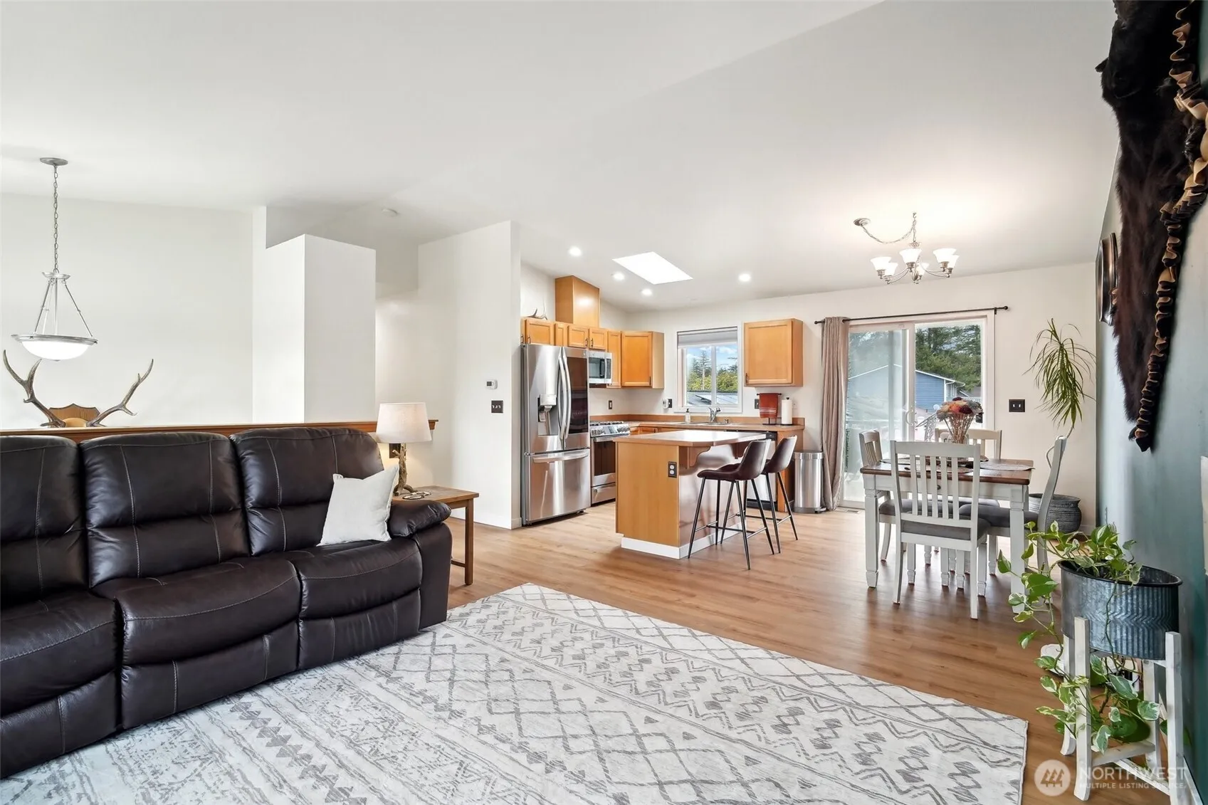 Welcome to this well-maintained and thoughtfully updated 3-bedroom, 1.75-bath home in the heart of Gold Bar. Vaulted ceilings and a spacious great room provide an open, airy feel, while large windows and a Trex deck (2022) with aluminum railing capture stunning Cascade Mountain views. Recent upgrades include new A/C and furnace (June 2024), new flooring (June 2024), and a premium gas oven (2024). Upstairs features three comfortable bedrooms and a full bath. The walk-out basement offers flexible space with a ¾ bath and laundry—perfect for a home office, media room, or creative space. Fully fenced yard invites outdoor relaxation, gardening, or gathering under the stars.