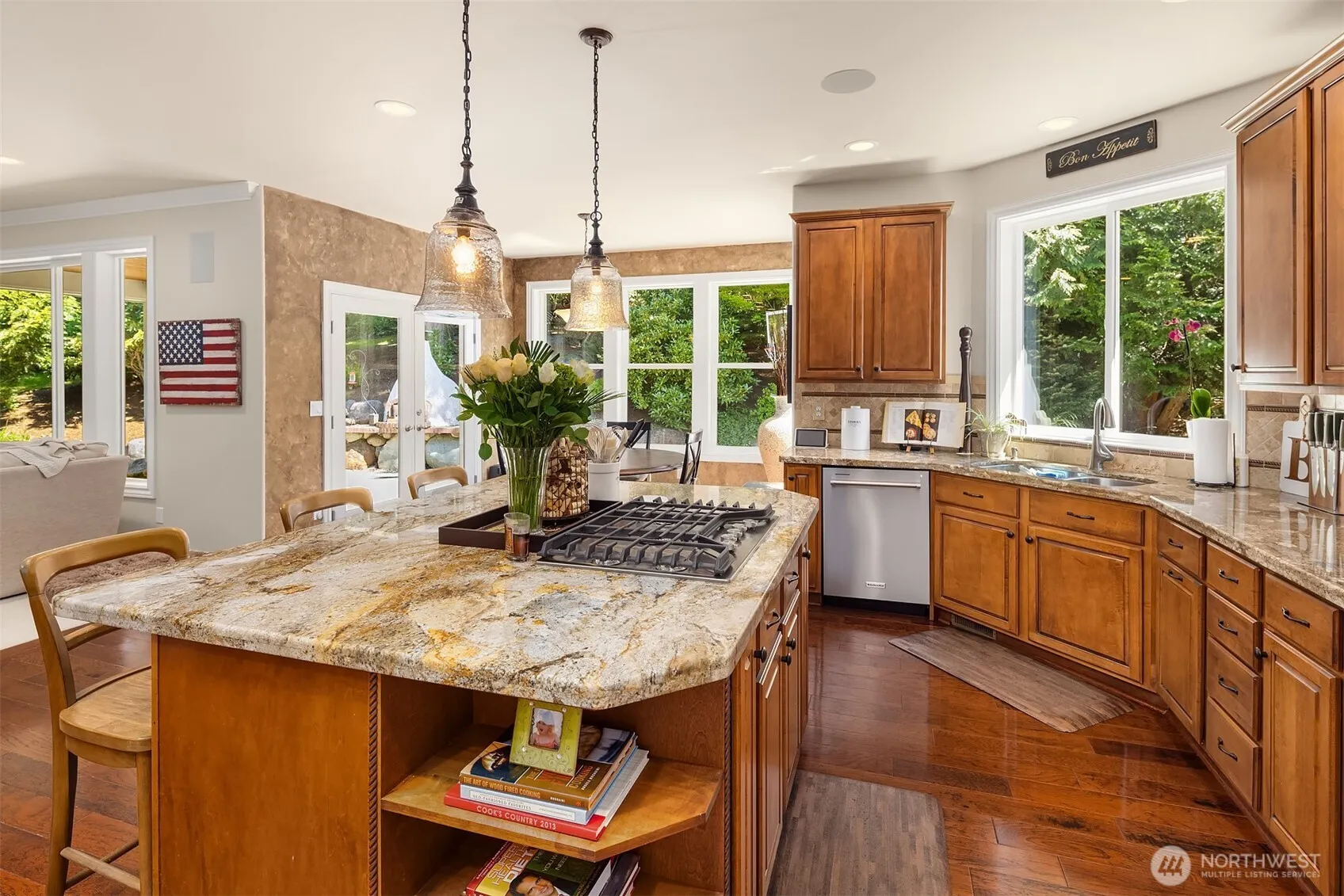 A timeless design is what you will find in this treasured 2 story home in the gated community of Cornerstone in Maple Valley. A Private 2 acre corner lot location showcases this terrific layout sprawling lawns. Well cared for inside and out loaded with updates and upgrades throughout. A generous sized Main floor primary suite with 5 piece spa bath, inviting Great Room kitchen with island, breakfast nook, butlers pantry and ample storage. In addition there is a main floor den plus living/flex room. 2nd Ensuite bedroom on mn flr, additional oversize beds on upper level with full bath & large bonus rm spaces. Covered outdoor living, pizza oven & tremendous full length room over the massive 3 car garage offering endless storage & hobby options