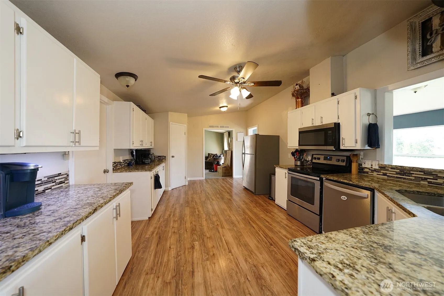 Set on 7.8 acres, this 2,166 sq ft triple-wide home offers the ideal blend of space, function, and comfort. Built in 1997, it features 3 bedrooms, 1.75 bathrooms, plus a versatile bonus room. The spacious kitchen is equipped with stainless steel appliances and granite countertops, providing both practicality and style. The primary suite includes a beautifully tiled walk-in shower. The home is climate-controlled with both forced air heat and a heat pump for efficient air conditioning. Outside, an 864 sq ft two-bay shop/detached garage adds valuable utility for projects, storage, or parking. There’s a great Smoke House for curing meat too. Whether you’re hosting friends or winding down after a long day, the expansive patio is a standout.