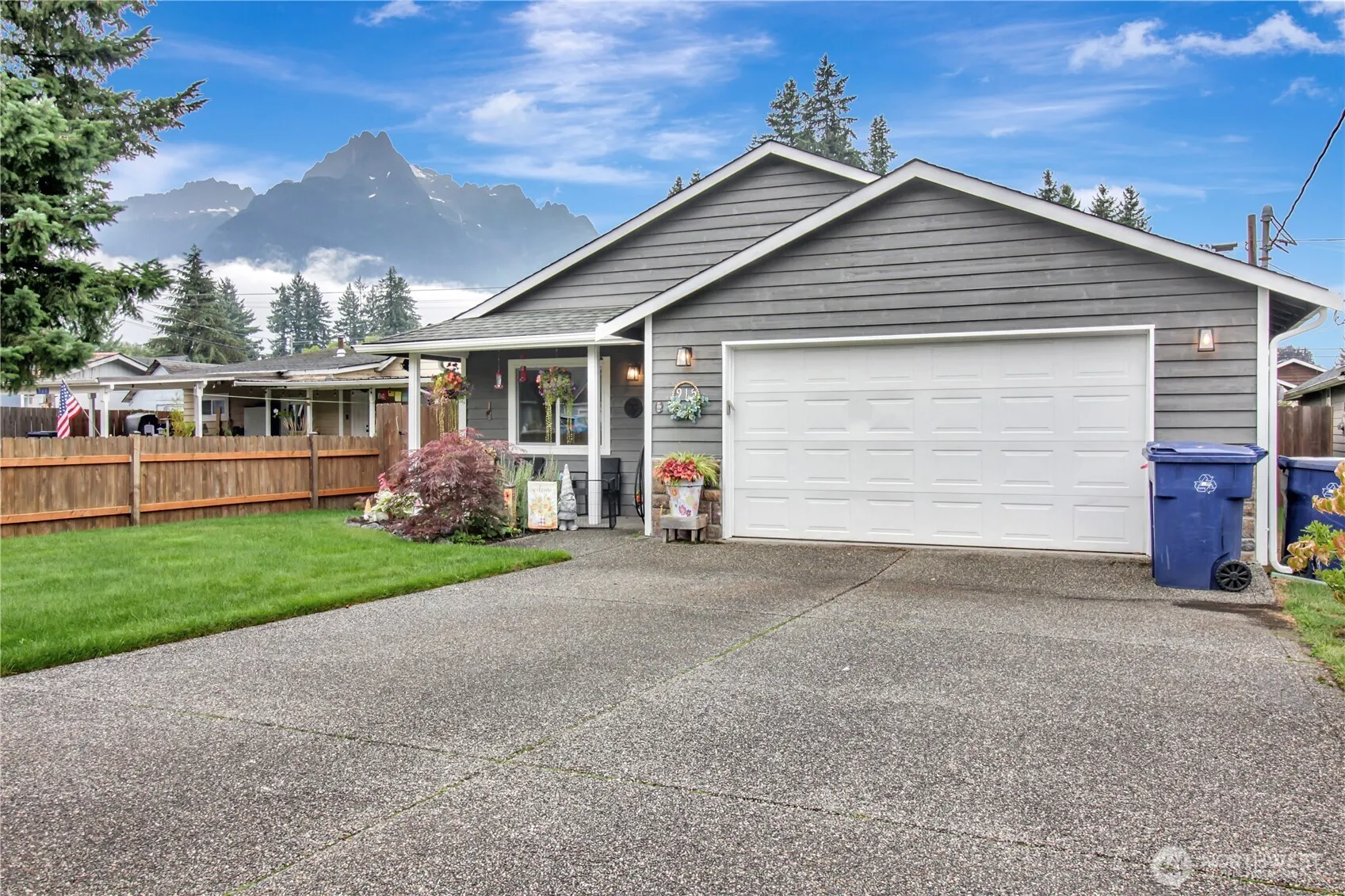 Charming 2-bedroom house featuring brand-new flooring throughout, modern appliances only 2 years old, and a beautifully remodeled bathroom. The home is nestled in a lush, landscaped, fenced yard perfect for outdoor gatherings and morning coffees. Enjoy breathtaking views of Whitehorse Mountain from your kitchen window and back patio. This classic craftsman style rambler home may be small, but it is mighty. The large 2 car garage with spacious bedroom closets gives this home plenty of storage options. With an open floor plan the kitchen, dining and living area flow together naturally with room for guests. The Old school park is right across the street! Tennis courts, playground, skate park and covered gazebo all are within sight.