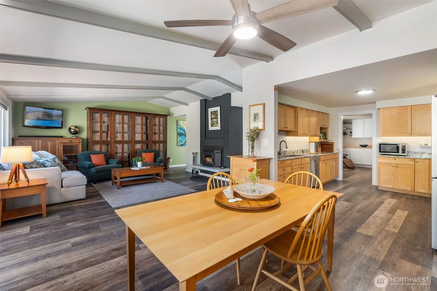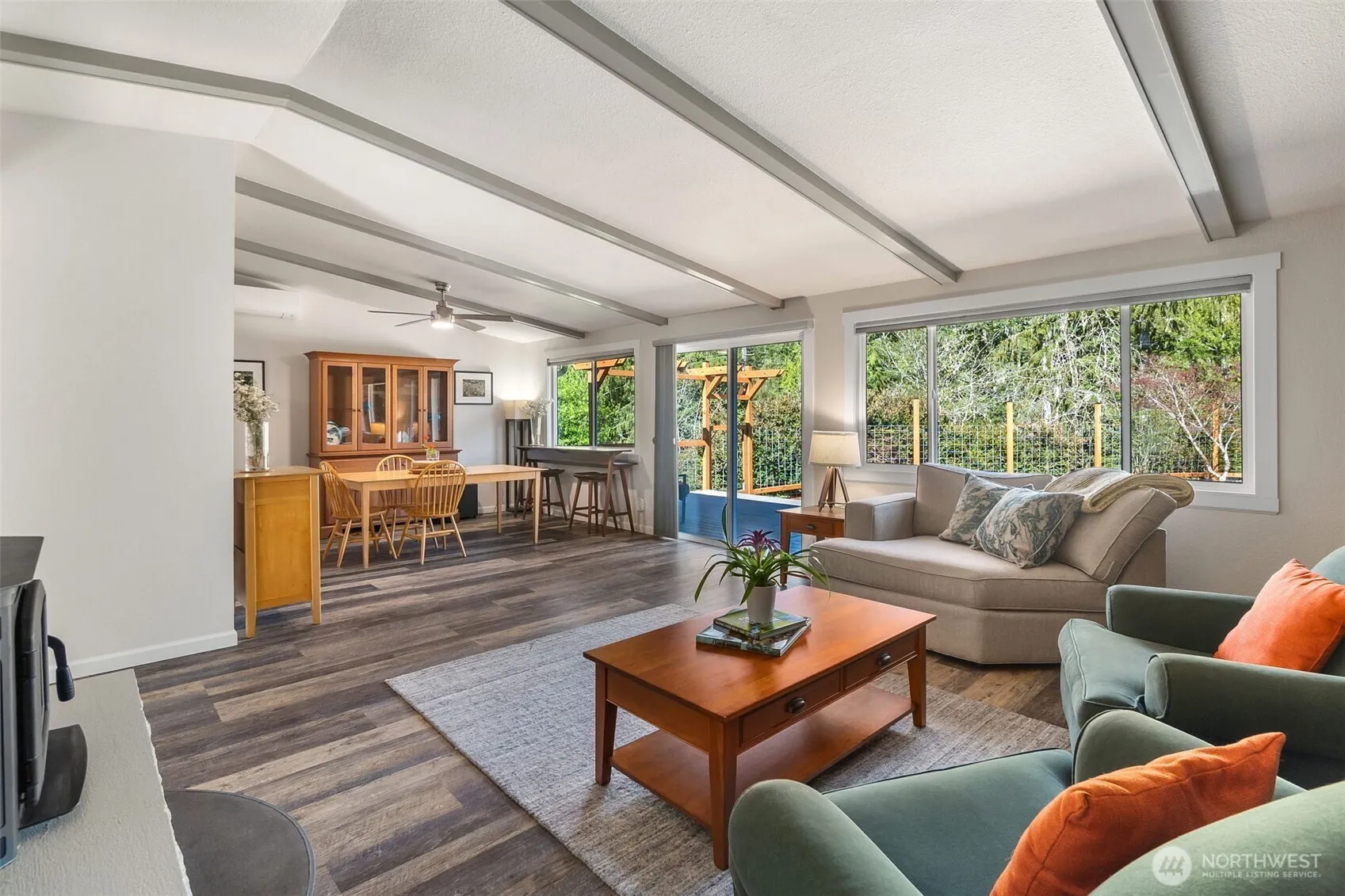 Enjoy privacy & serenity in this beautifully maintained & updated rambler, nestled on a shy 1/2 acre lot in the desirable Alderbrook community. This stunning home offers 2,060 sq. ft. of comfortable living space, featuring LVP flooring & 4 spacious BR’s. Inviting LR, complete with a new woodstove, overlooks a picturesque, fully fenced backyard w/ a gorgeous forested backdrop. Relax or entertain on the new Trex deck, surrounded by easy-care landscaping. The spacious FR features upper and lower cabinetry for plenty of storage, while the sleek kitchen boasts beautiful quartz countertops & SS appliances. Recent upgrades also include a new roof & updated electrical system. HOA includes unlimited 18 hole PGA course, club house & restaurant.