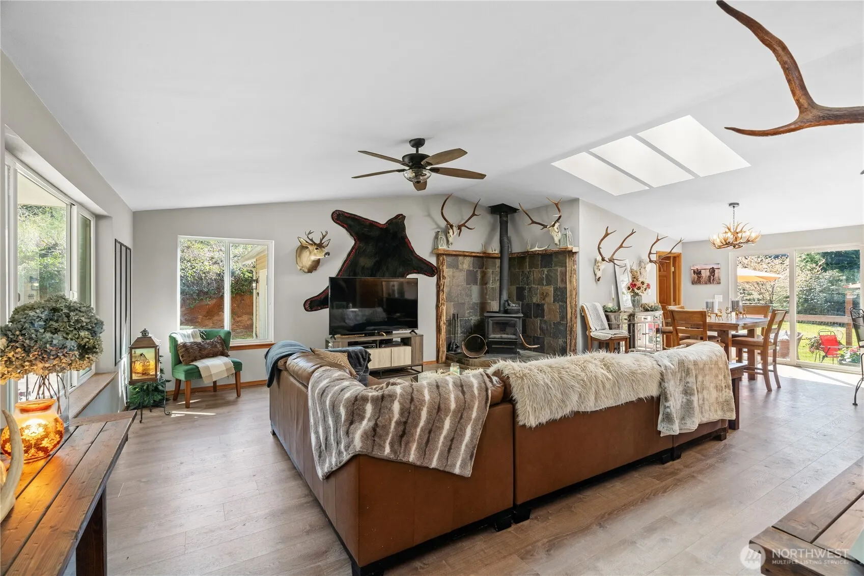Incredible opportunity outside Hoquiam! This ~2100 ft 4+ bed, 2 bath home sits on a nice, mostly level 4 acres with matured landscaping, creek, outbuildings and back patio w/ hot tub for entertaining! Rare cabin (from yesteryear) in the back! Enjoy the like-new one-level living with large living, dining and kitchen area. Kitchen features custom cabinets, stone counters, stainless appliances and more. 4 great-sized bedrooms! Primary bedroom with spacious en suite and walk-in closet. Ample storage throughout! Attached two-car garage and 2 detached outbuildings. Close to excellent fishing on the Humptulips, clam digging and all the beach activities and the National Rainforest all within a short drive!