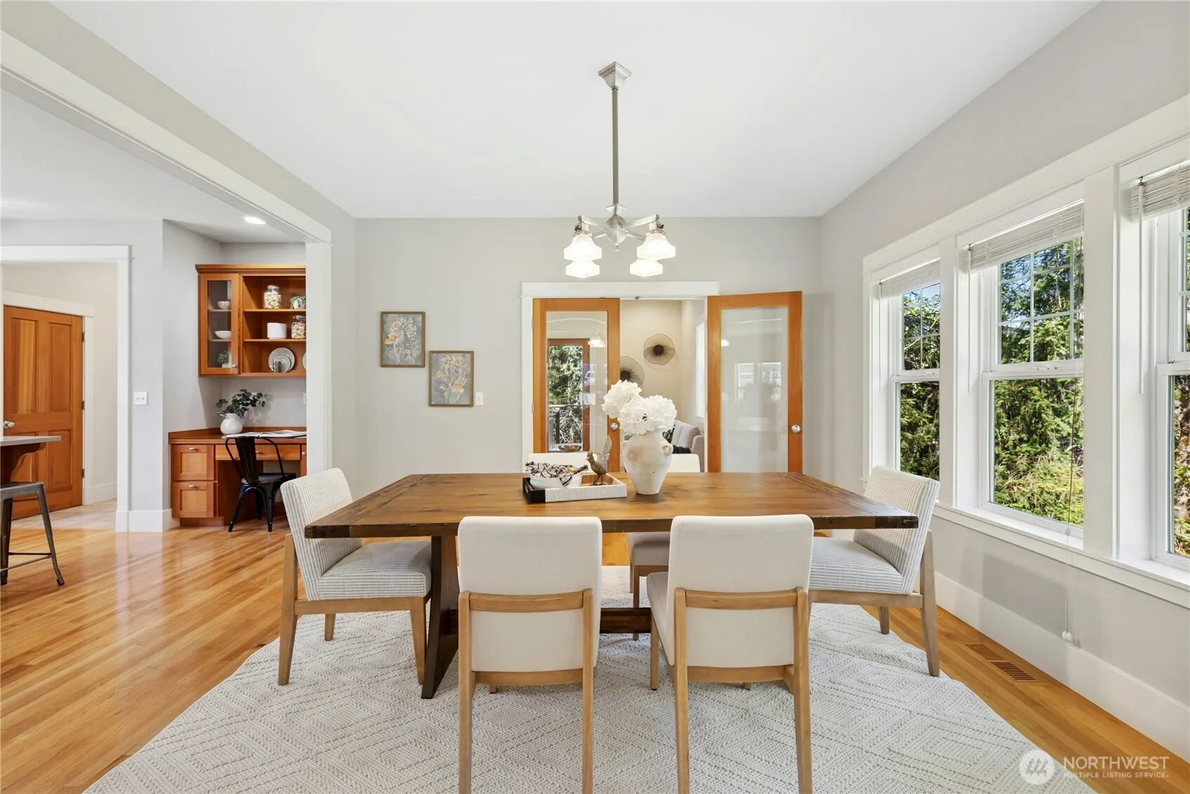First time on the market! Classic Craftsman home built by Jerry Reese sits on one of the best and largest lots in the ever-popular North Town Woods Neighborhood. A charming covered front porch welcomes you home and a newer deck in the backyard connects to the community open space/park plus sunny garden space is on both sides of the home. Inside, the thoughtfully designed open-concept main level has a freshly updated kitchen that flows nicely into the living spaces plus a convenient and private den or home office. Three bedrooms are upstairs, plus the desirable detached garage with an add’l 460 sq ft Guest Studio with a 3/4 bath (not included in sq footage) is perfect for home office or guests. Close to town, ferry and all levels of schools.