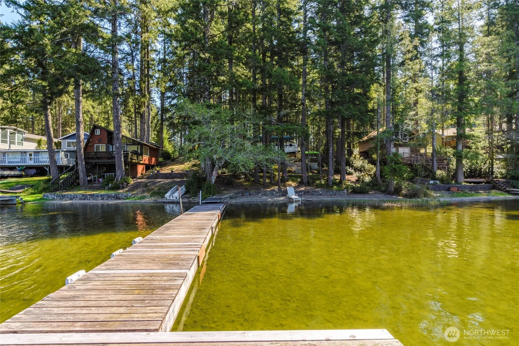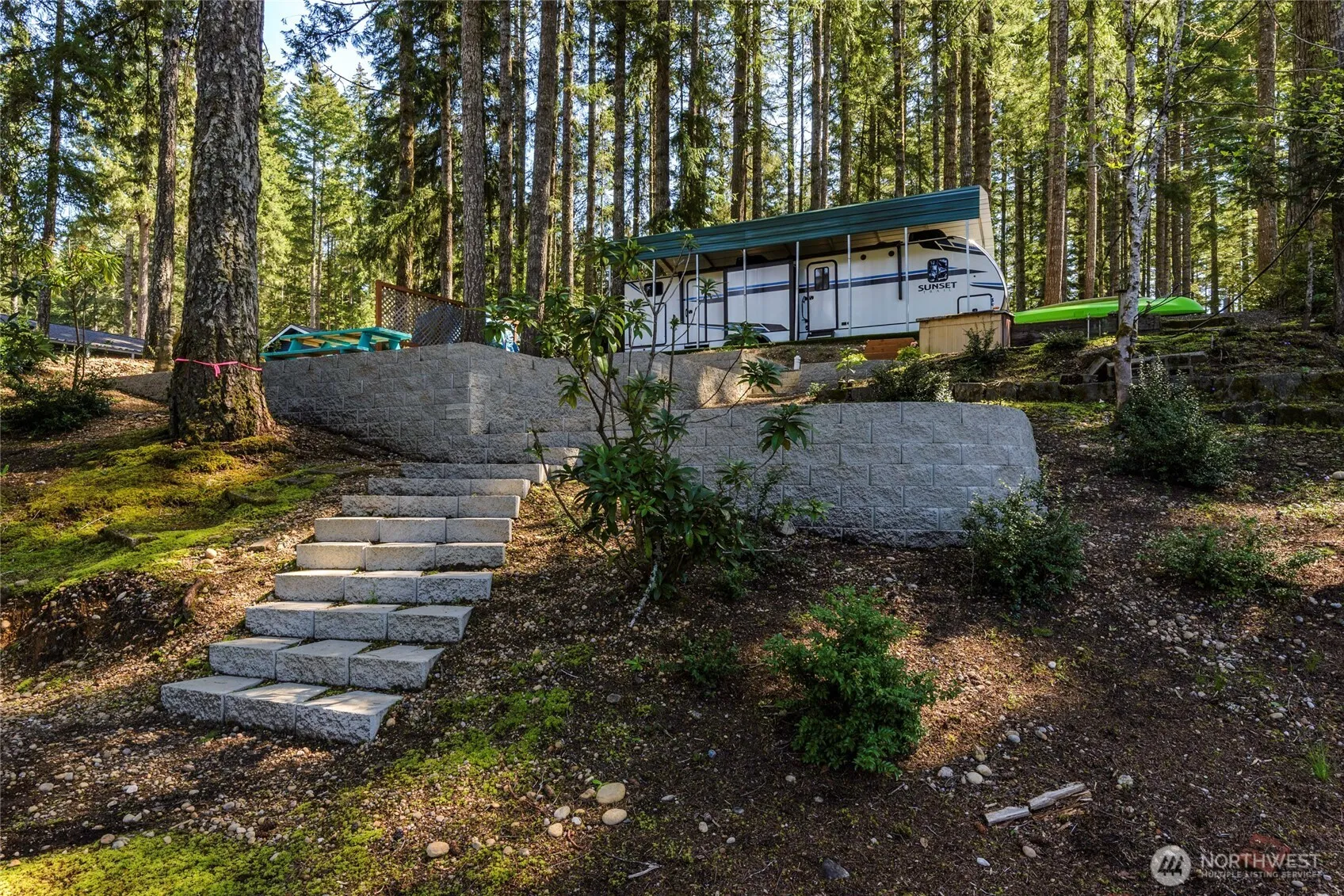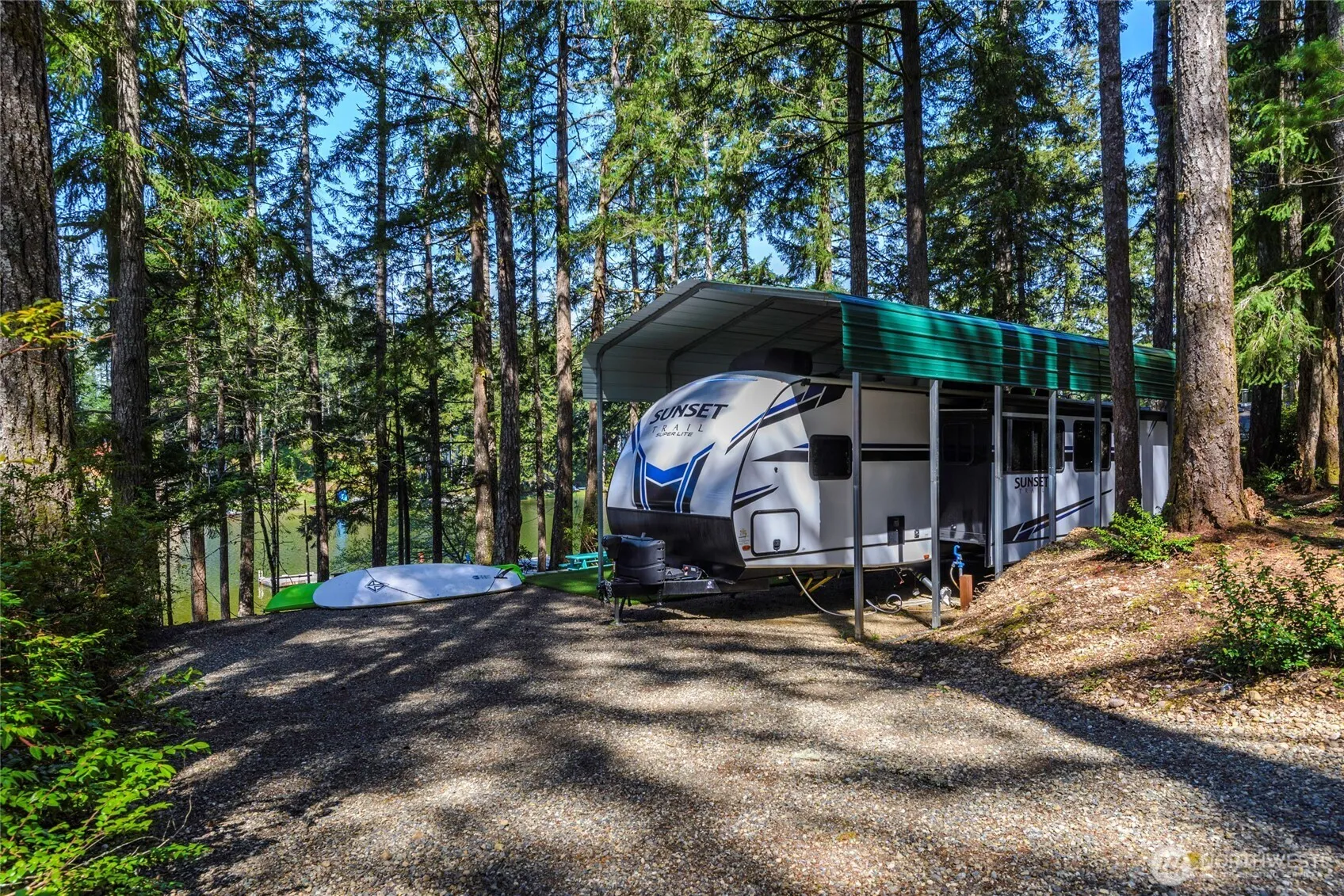 FINALLY! An affordable property to get you onto Mason Lake to enjoy all it has to offer! Don’t miss out on this opportunity with lots of options! This large, level lot offers sunny western exposure w/ low bank & has a magical campground vibe to it! Property includes the new RV trailer hooked up to water/septic on-site to start enjoying overnights at the lake today! Level lot affords the ability to build a large garage/apartment up off the road w/ plenty of space left to build a home down by the water. All utilities are already in place with a dock to moor your boat! Mason Lake is known for its great active lifestyle…waterksi/wakesurf, jetski, sailing, fishing, cycling, off-roading & more! Welcome to one of WA State’s cleanest lakes!