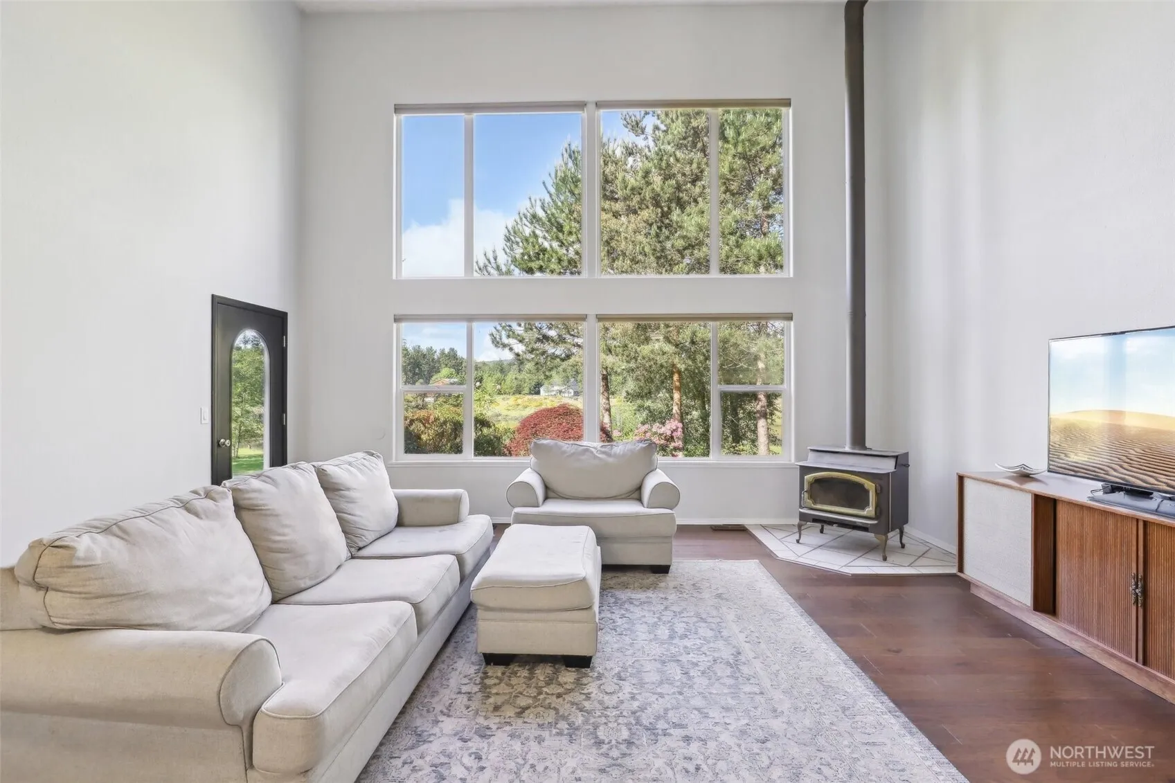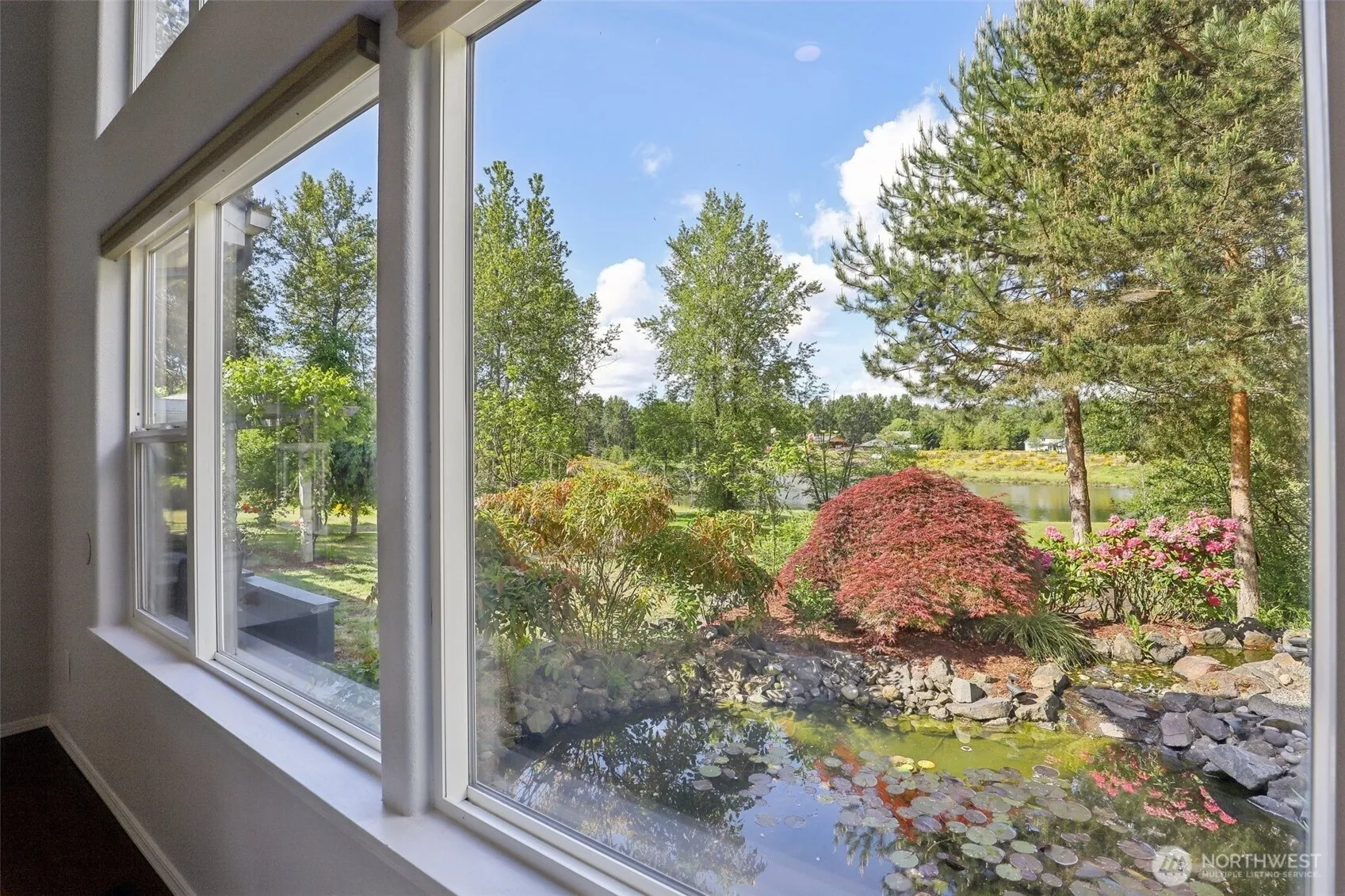 UPDATED KITCHEN! PRICE REDUCTION! Private 5-bed, 2.5-bath lakefront oasis on 5 usable acres in Cowlitz County— Perfect for entertaining or your own private oasis! This retreat features a koi pond, chicken coop, huge garden, established orchard, and backyard fishing. The great room boasts floor-to-ceiling windows with lake views, vaulted ceilings, hardwood floors, and natural light. Recent updates: new roof (’23), HVAC, dual water heaters, lighting, stainless steel appliances (’24). The finished garage with HVAC and partial kitchen offers ADU potential, plus a spacious 3-car shop with 240V hookups. Your private retreat awaits!