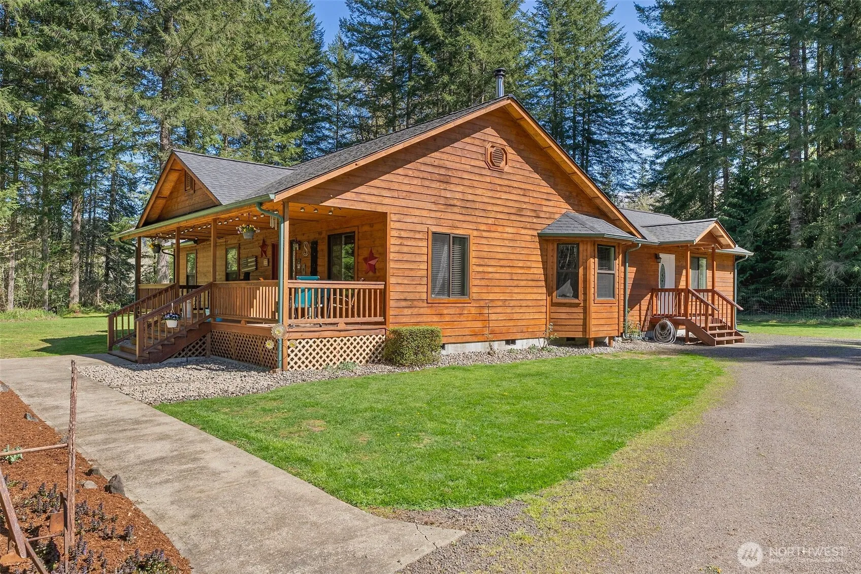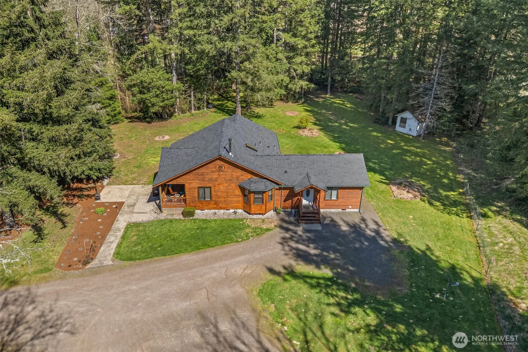Live in a park! This beautiful home feels like a vacation. Beautiful trees and seclusion everywhere you look, enjoy a quiet back deck for quiet evenings. Three bedrooms, 2 baths and a large bonus great room, walk in pantry off of the roomy laundry room, wonderful front porch that’s covered for sitting! Cozy wood stove and open concept kitchen, dining, living for gatherings. Shop is finished and has electric and heat, with a nice work bench area for tinkering. Come see this one soon.