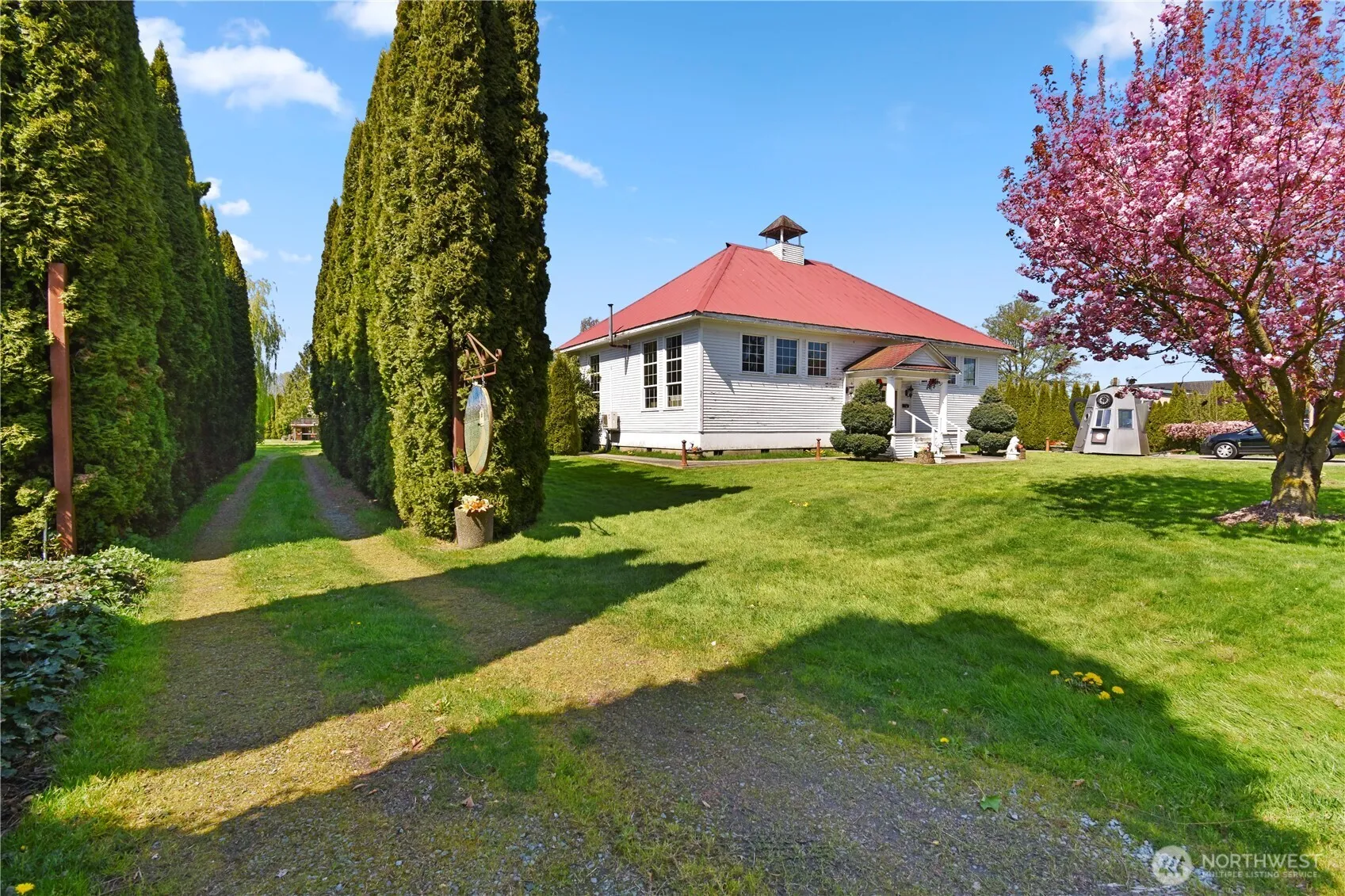 Step into history with the enchanting Historic Silvana School House—where the past becomes your future. Perfect for a wedding venue, event space, BNB, multi-generational living, or tourist attraction, this property is brimming with possibilities. The grand room boasts soaring 17 ft ceilings, while the main floor offers a kitchen, bathroom, and primary bedroom. Upstairs, an unfinished apartment is plumbed for a kitchen and bathroom, awaiting your personal touch. The property features updated electrical and plumbing, new windows and foundation, a charming chapel, saloon with a full kitchen, and convenient restrooms for events. Surrounded by privacy trees, this treasure combines timeless charm with modern versatility!