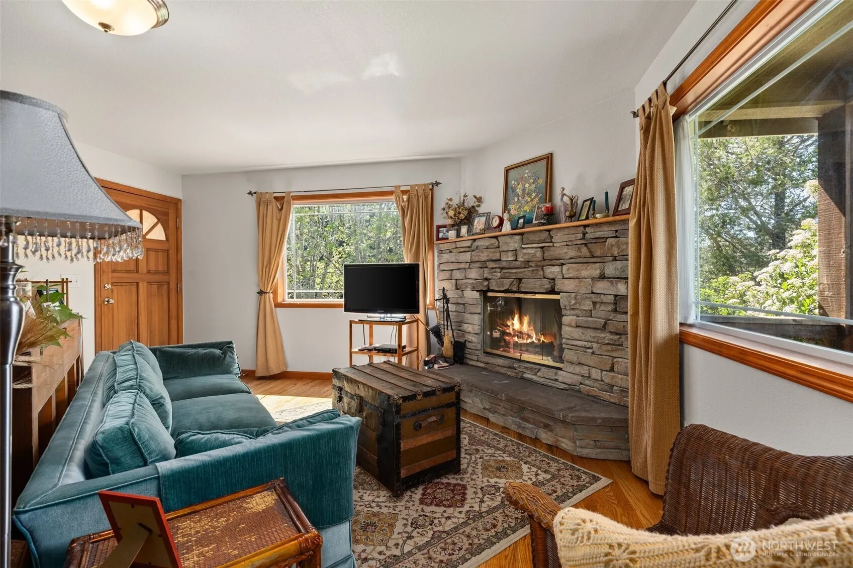 Desirable Adna area home on Curtis Hill. This craftsman style bungalow on 5 acres is a great starter or step-down home. This two-bed, 1.5-bath has area to expand with a 3-bedroom septic installed. A small bonus room serves as an office. The open concept kitchen, dining, and living room areas are great for gatherings and entertaining. Hardwood floors and rock fireplace add to the cozy feel. The house sits on a gentle ridge. Back porch looks over the west facing slope with beautiful territorial, sunset views. A fringe of evergreen trees adds to the privacy of this quiet setting. Space around the house is open with fenced garden and fruit tree areas. 5-acre lot on the north side is also for sale. Drive-by ok, but need agent to enter property.