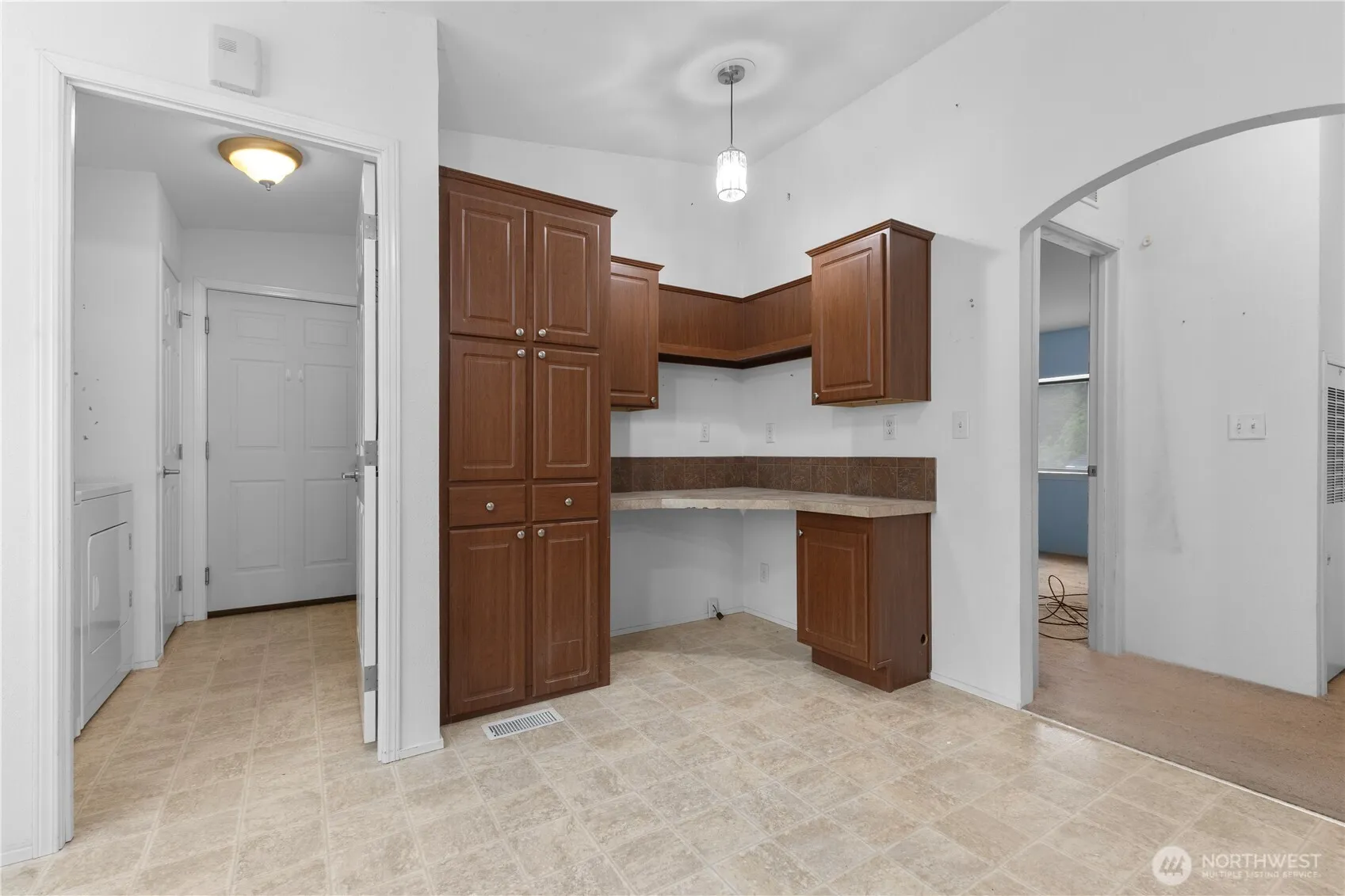Welcome to the desirable Golden Valley 55+ gated community! This lovely 3 bed, 2 bath home offers a comfortable and convenient lifestyle. The open-concept living and dining area is perfect for entertaining, featuring a charming wood fireplace. The spacious kitchen boasts ample counter space, an extra eating area, NEW APPLIANCES, and a handy built-in desk. Large laundry room w/ pantry and extra fridge. Retreat to the primary suite with its attached bathroom and a large wic and bookshelf. One guest bedroom features brand new LVP flooring and the other w/ ceiling fan. Enjoy year-round comfort with AC, the convenience of an attached 2-car garage plus an additional parking space, and a delightful backyard suitable for a garden area. Come see!