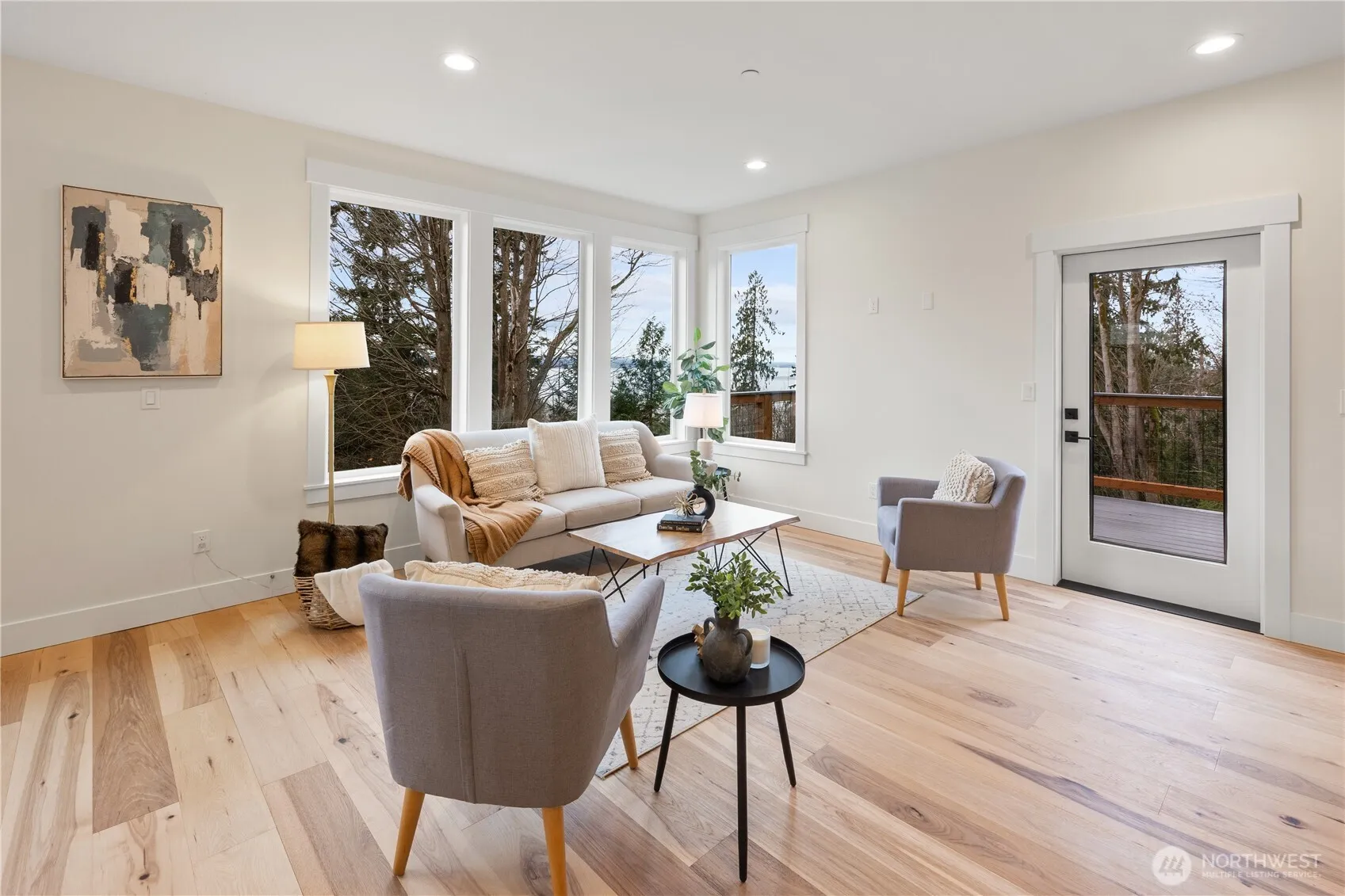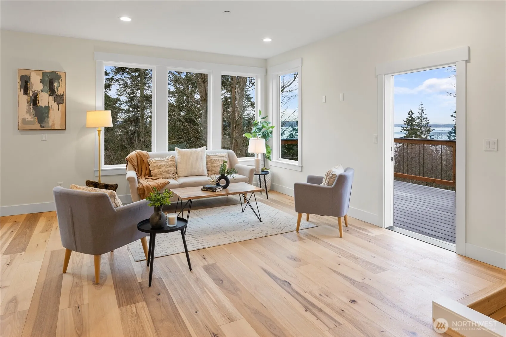 3-bedroom NEW CONSTRUCTION view home in Warm Beach community. Each bedroom features a private en-suite bathroom for ultimate convenience and luxury. The primary bedroom is perched at the tree tops with views to the west and north, primary bath has dual shower heads and a walk in closet. The heart of the home is an expansive great room, perfect for entertaining or relaxing while enjoying panoramic vistas. Beautiful honed counters mimic ripples of sand. Home has piping for propane and Panel that can support electric car. Ideally situated to take advantage of coastal living with a beach access point and a community park. Close to the 7 lakes, Stanwood, Smokey Point, and in a quiet beach community. Crawlspace storage accessed from rear.