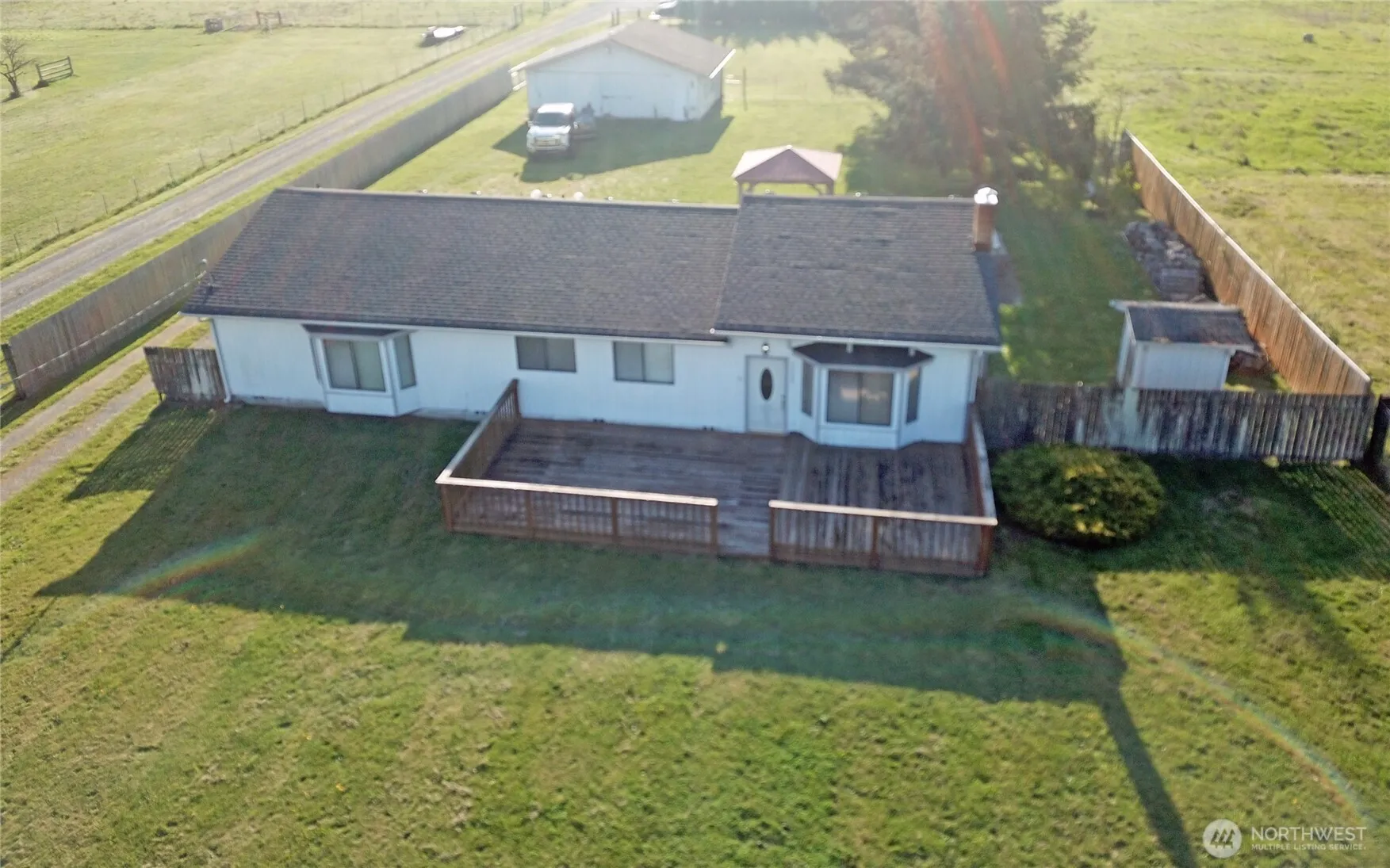 Pleasant Country setting between Rochester & Grand Mound. 1880 sq.ft. 3 bdrm/2 bath home set far off the street on a very useable acre+. Bountiful supply of fresh, cold well water for household/gardens/pets. Forced air/heatpump for winter warmth/summer AC. Decorative and energy saving wood stove, riverstone hearth adornment. Spacious living rm with wetbar area. Tall vaulted ceilings. Gazebo covered outdoor entertaining/BBQ/firepit area. Hottub. Lots of offstreet parking and detached garage/workshop. Updated electrical. Fresh carpets in some of the bedrms. Property fenced and well drained. No flooding or wetland issues. Walking distance to school sports fields. EZ commute to Olympia/Centralia. This is a great value for a good country home.