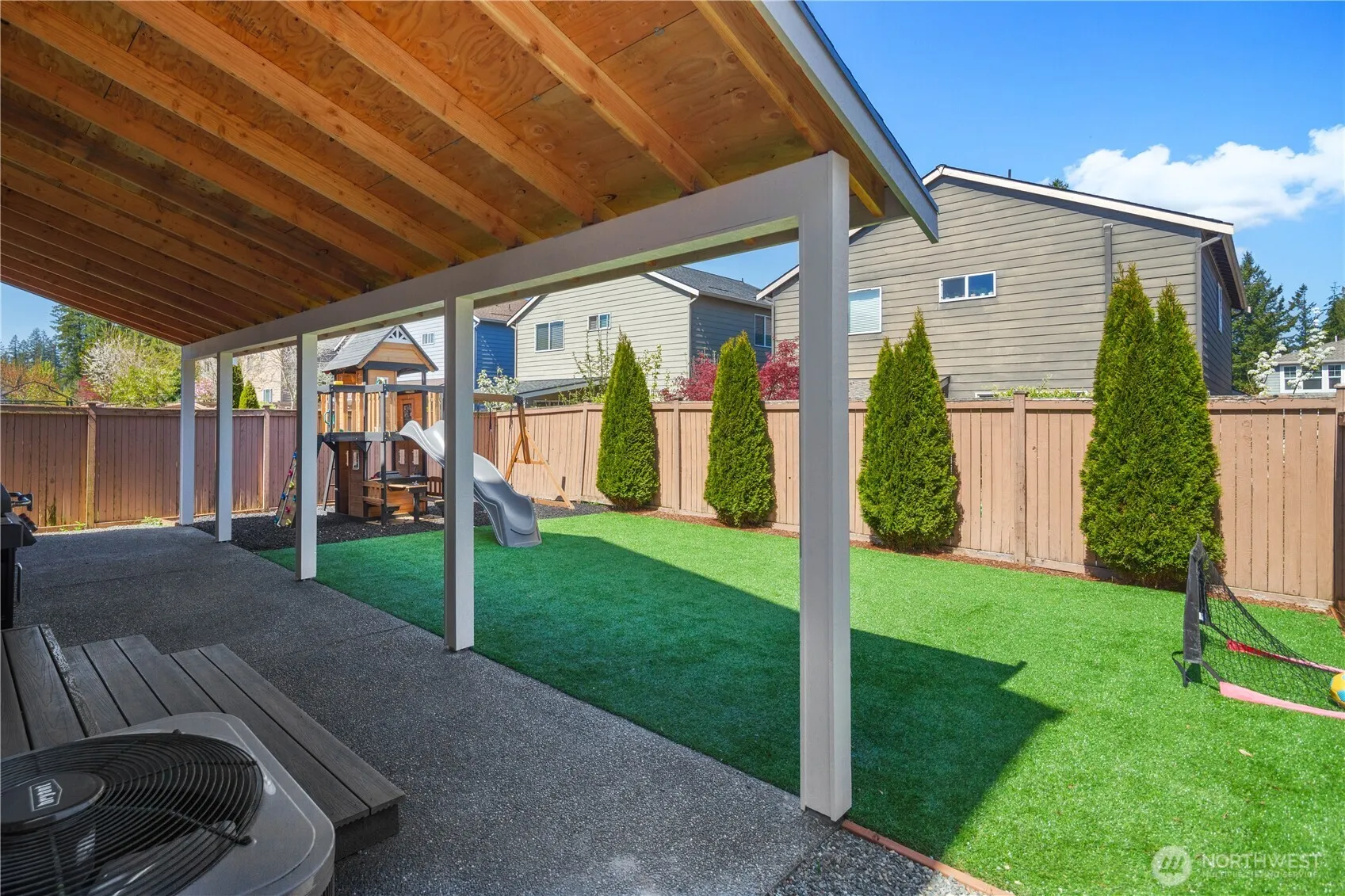 Welcome to this beautifully maintained Pulte resale, a 3-bedroom + Loft, 2.5-bath home offering 2,111 square feet of thoughtfully designed living space. From the turf yard in both the front and back to the upgraded covered patio with wiring ready for a hot tub, every detail has been carefully considered. The open-concept layout flows seamlessly between the living room, dining area, kitchen, and outdoor space, perfect for everyday living and entertaining. Enjoy year-round comfort with a heat pump providing central A/C, a tankless water heater, and a fully finished, heated garage—ideal for projects or extra flex space. Conveniently located just steps from local amenities and shopping, and situated in the highly rated Tahoma School District.