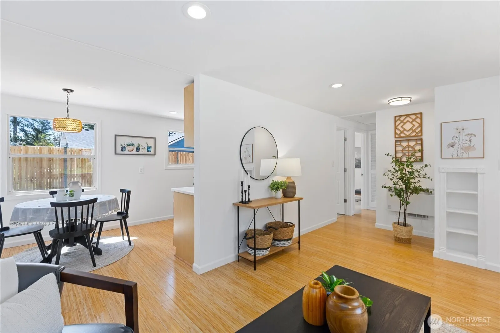 THIS is the dream rambler you have been waiting for. Located in the heart of booming Mountlake Terrace, this tastefully updated home is move-in ready. This unassuming charmer lives large with its open floor plan and ample natural light. Beautiful kitchen with eating nook, living room, 3 beds, full bath and large laundry room. Sunny, level and fenced corner lot and spacious back deck—perfect for entertaining or relaxing in your private garden oasis. Tucked away on quiet, non-through street close to parks and top-rated Edmonds SD schools. The potential to expand or add an ADU or DADU (buyer to verify) anchors this property’s value. Enjoy one-level living in a pivotal location close to bakeries, brew pubs, freeways and MLT Light Rail station.