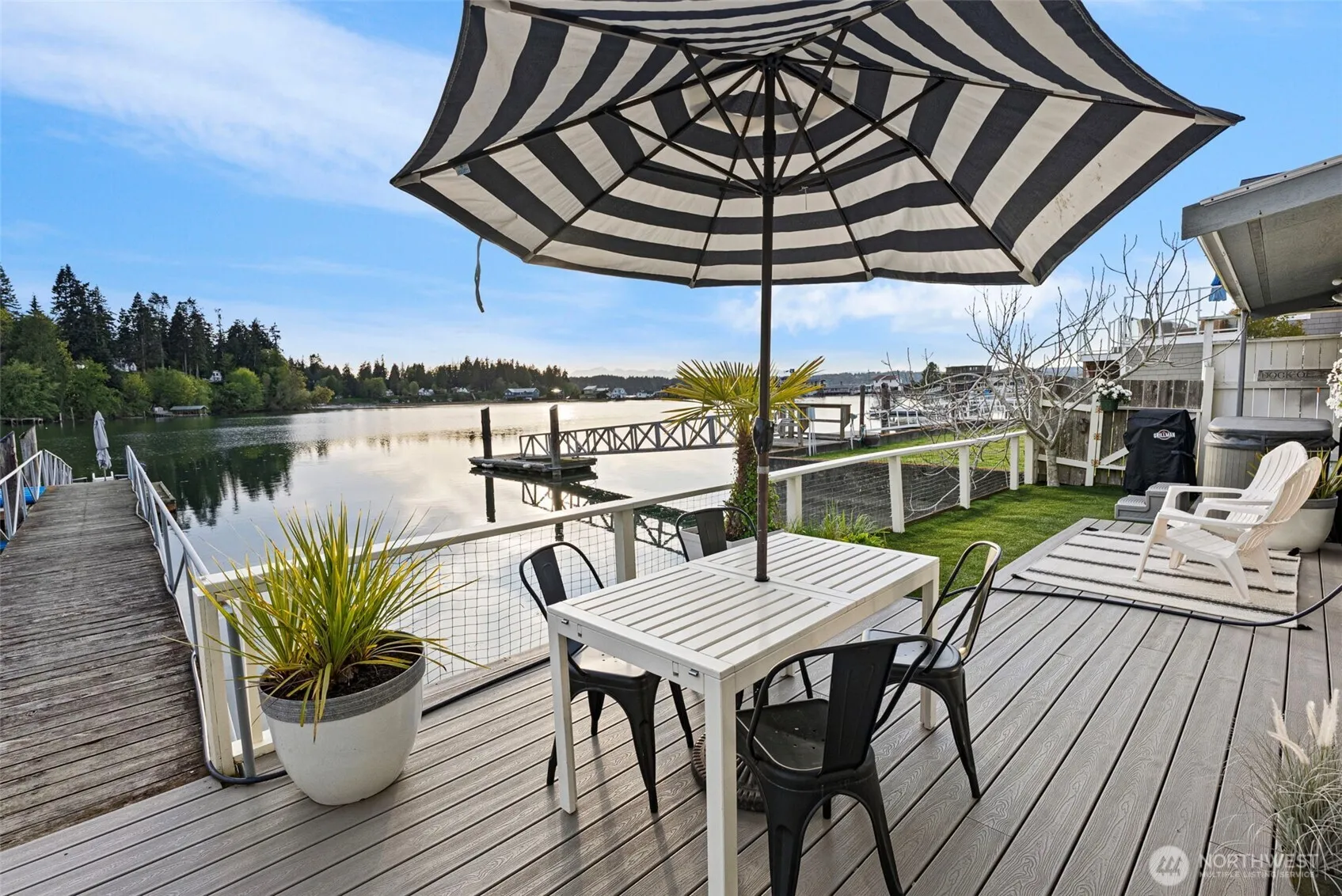 Experience an extraordinary waterfront lifestyle w/ this sunlit beach house located on the coveted “The Spit” of Bainbridge Island. Whether as a primary residence, a serene second home, or an income-generating rental, this property offers unparalleled aquatic enjoyment & breathtaking views. The lagoon-side dock is ideal for boating, kayaking, swimming & relaxation even at low tides. Relish panoramic views of the Cascades, Olympics & Puget Sound, enhanced by beautiful sunrises & sunsets. This versatile home features two bedrooms & two bonus rooms over two floors, adaptable as one residence or two residences, w/ modern kitchens & baths. Observe wildlife like seals, otters, eagles, herons and more!