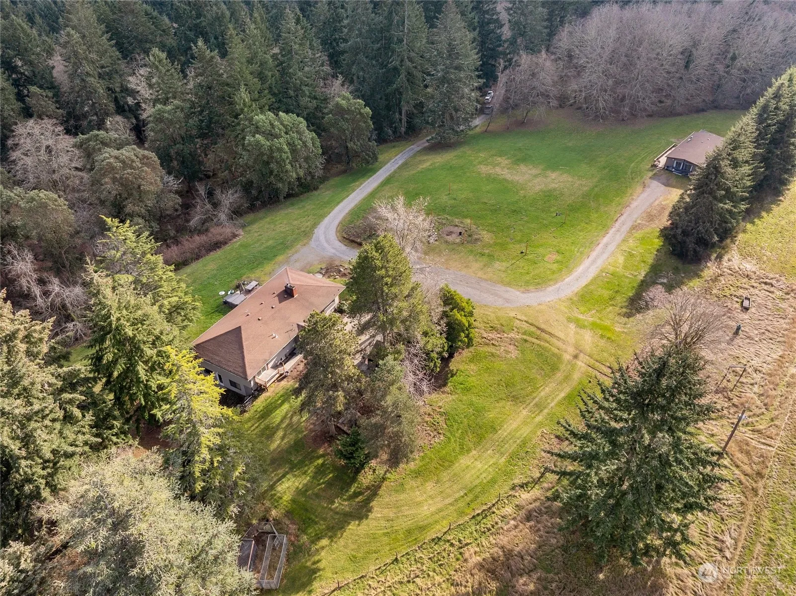Your own stunning private 6.52-acre haven on Vashon Island surrounded by 110 acres of King County Park Land! Passing through the gated entrance, you immediately notice its private, serene beauty! This rare gem is multi-functional with a main home – 4 bdrms, office, 3 baths & spans an impressive 3,840 Sq Ft w/daylight basement, 2nd full kitchen & potential for independent living plus a guest home! The main home has been tastefully updated throughout – New cabinets, counters, doors, trim, paint, flooring, plumbing, fixtures & so much more! The guest home features 2 bdrms, 2 baths, 1,701 Sq Ft on its own septic! Did we mention the gorgeous sunsets, fruit trees, berries, vibrant flowers, RV parking w/hook-up, extra parking & spectacular views!