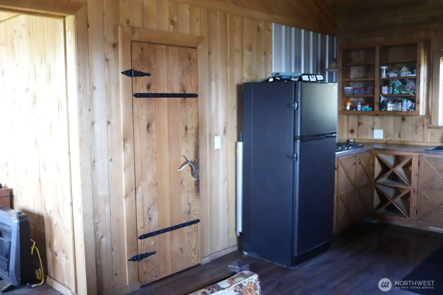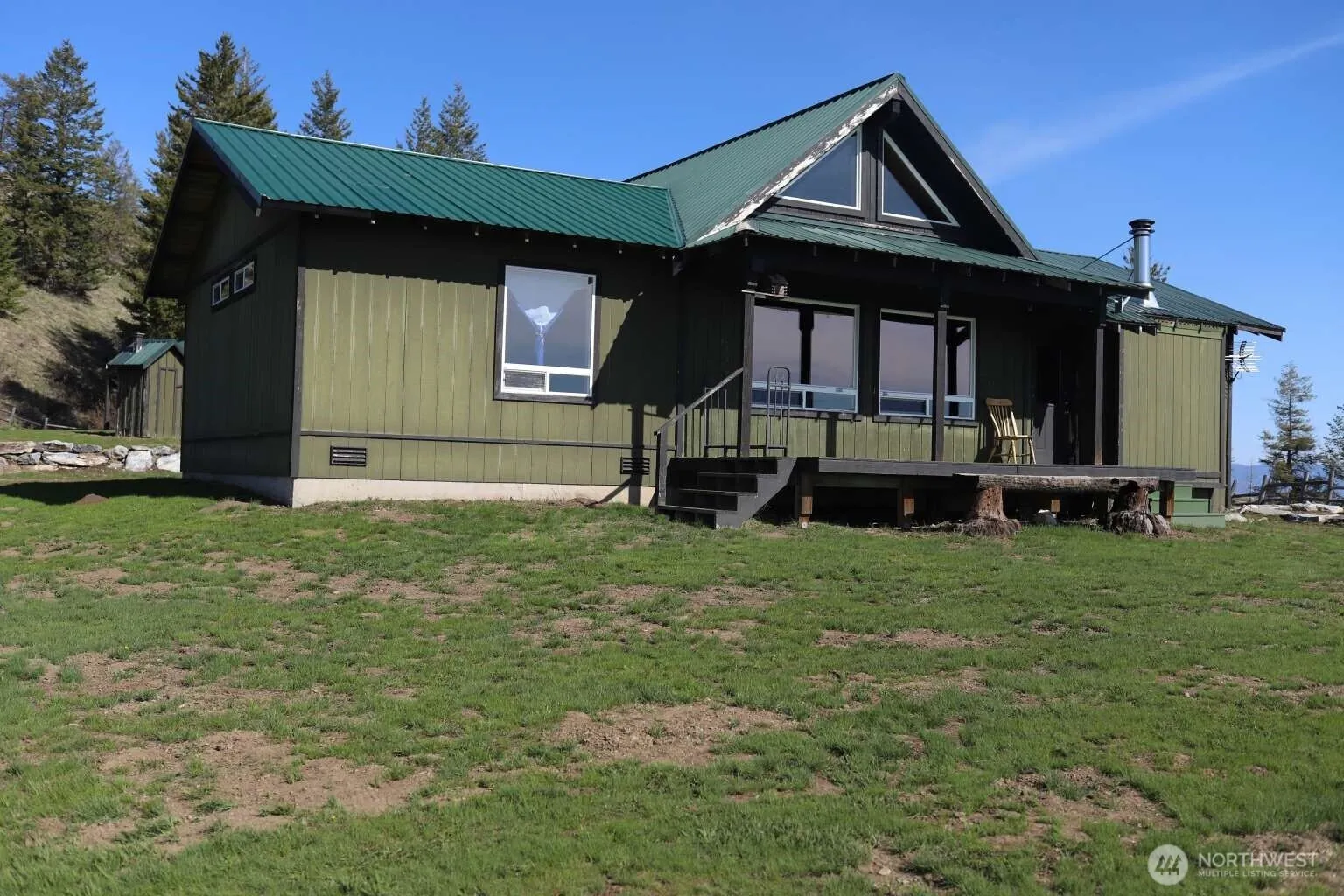 This 1 bed/1 bath hilltop ranch-style home offers 1,400 sq. ft. of cozy living space on 40 acres with stunning mountain views. Built in 2006 with solid hardwood construction, it features a spacious main-floor bedroom, a warm living area with a fireplace, and a rustic kitchen with wooden cabinets and a walk-in pantry. A loft with built-in storage adds charm and extra space for storage or a quiet nook. Outside, enjoy a detached garage, multiple storage buildings, solar panels, and full wooden fencing. Move-in ready, perfect for those seeking peace, nature, and a ranch-style lifestyle.