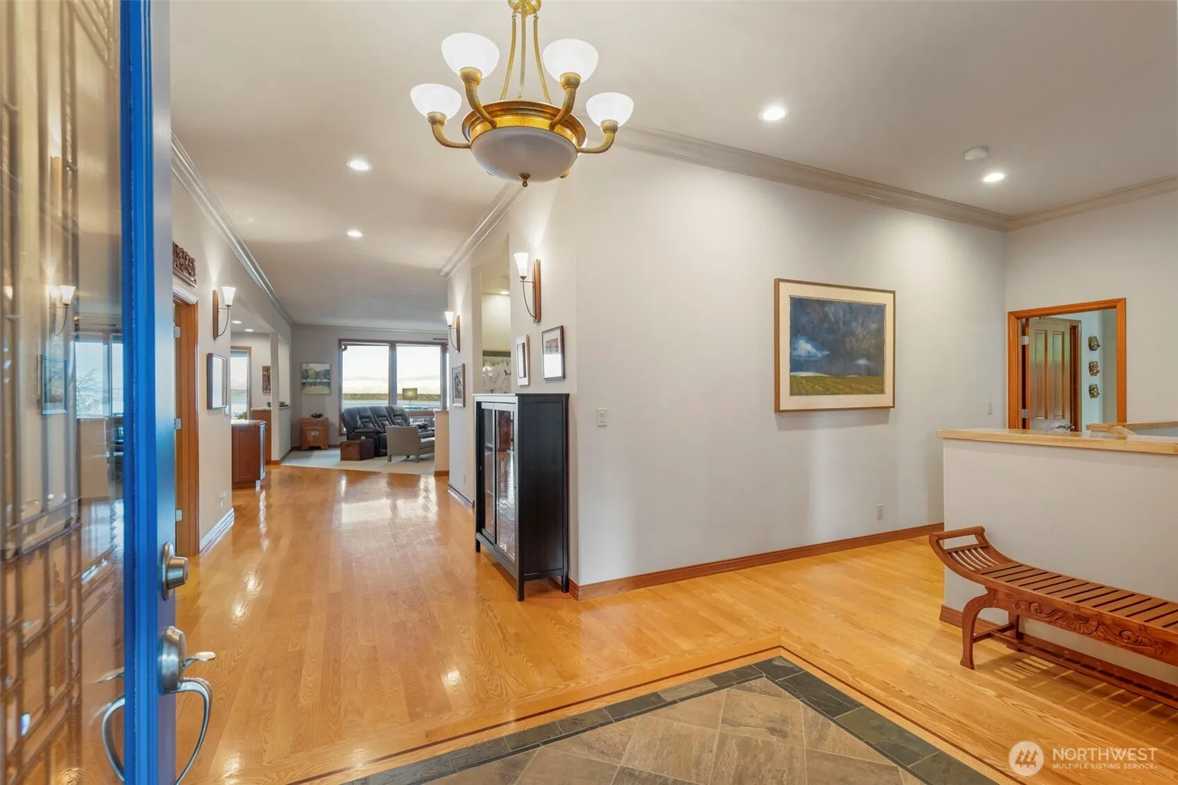 With over 5,300 square feet of living space spread over 2 levels, this thoughtfully designed custom home has stunning views of Puget Sound and the Cascades from most rooms. Covered decks on both levels provide a great outdoor area to take in the views and entertain guests. Main level living area includes beautiful hardwood floors, custom built-ins and trim plus 2 primary suites, office, formal dining rm., powder rm. and laundry rm. The lower level has a 3rd bedroom, full bath, rec. rm, wet bar, flex rm, 2nd office and storage. This home is ideal for working from home and is adaptable for multi-generational living. New whole house generator (2023). Over 3/4 Ac. lot. Wired detached workshop. Please see Virtual Tour.