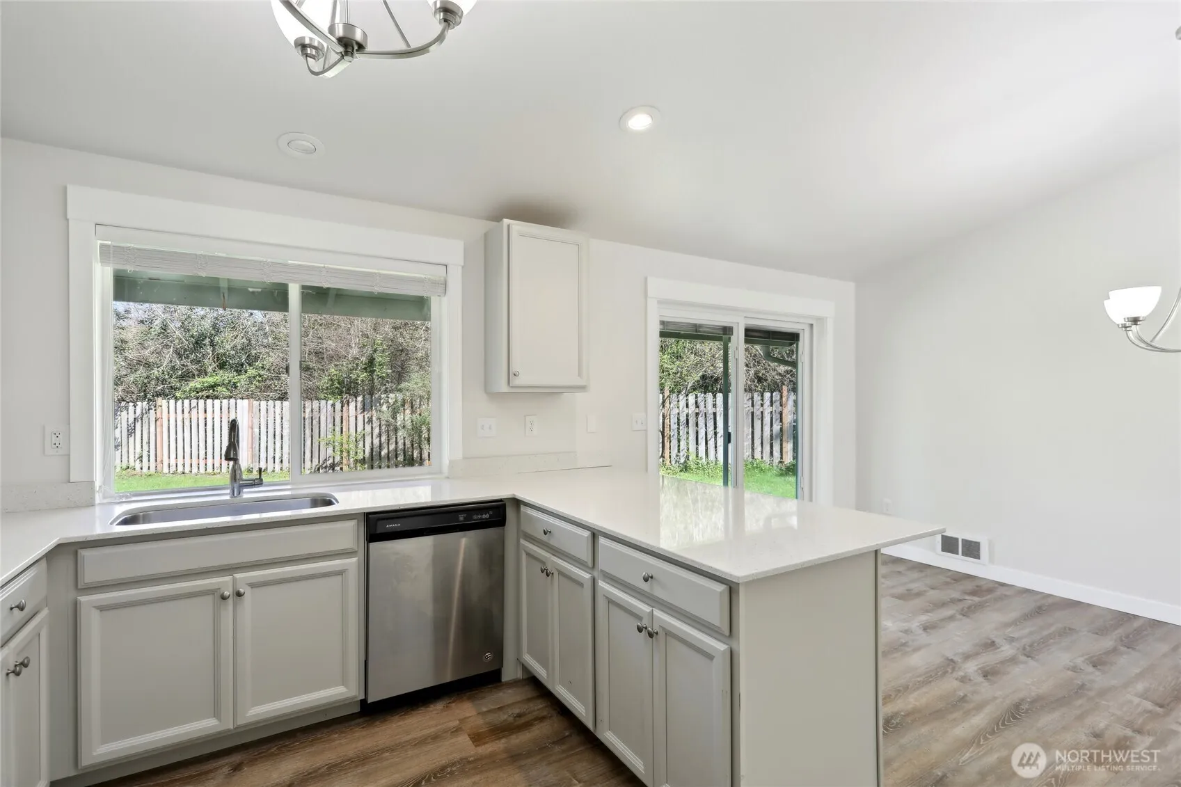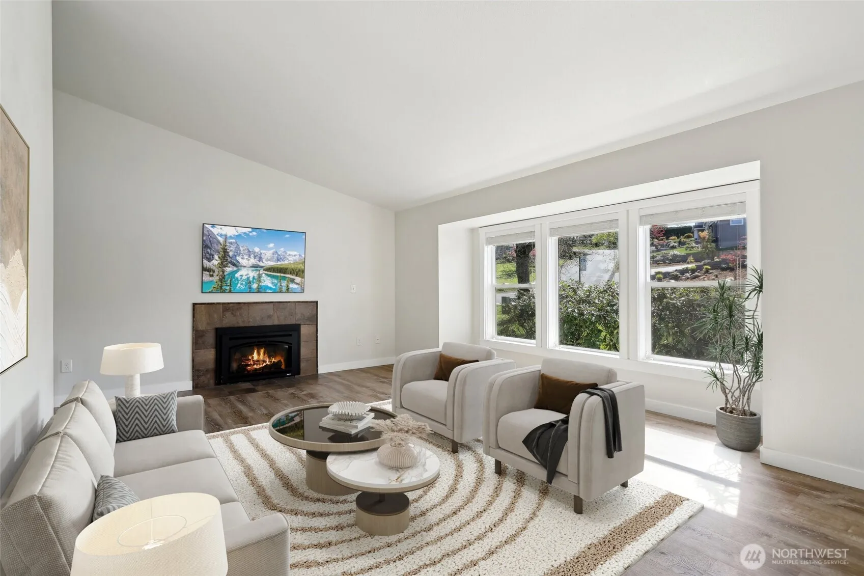 Beautifully remodeled 2 bed, 2 bath home in charming Steilacoom! Light-filled living room features vaulted ceilings and a cozy gas fireplace, flowing seamlessly into the dining area and updated kitchen with stainless steel appliances. The spacious primary suite offers two closets and an en-suite bath. Enjoy a large, fully fenced yard and attached 2-car garage. Just minutes to Sunnyside Beach Park and and Fort Steilacoom Park. Conveniently located near JBLM, shopping, dining, and more. Move-in ready!