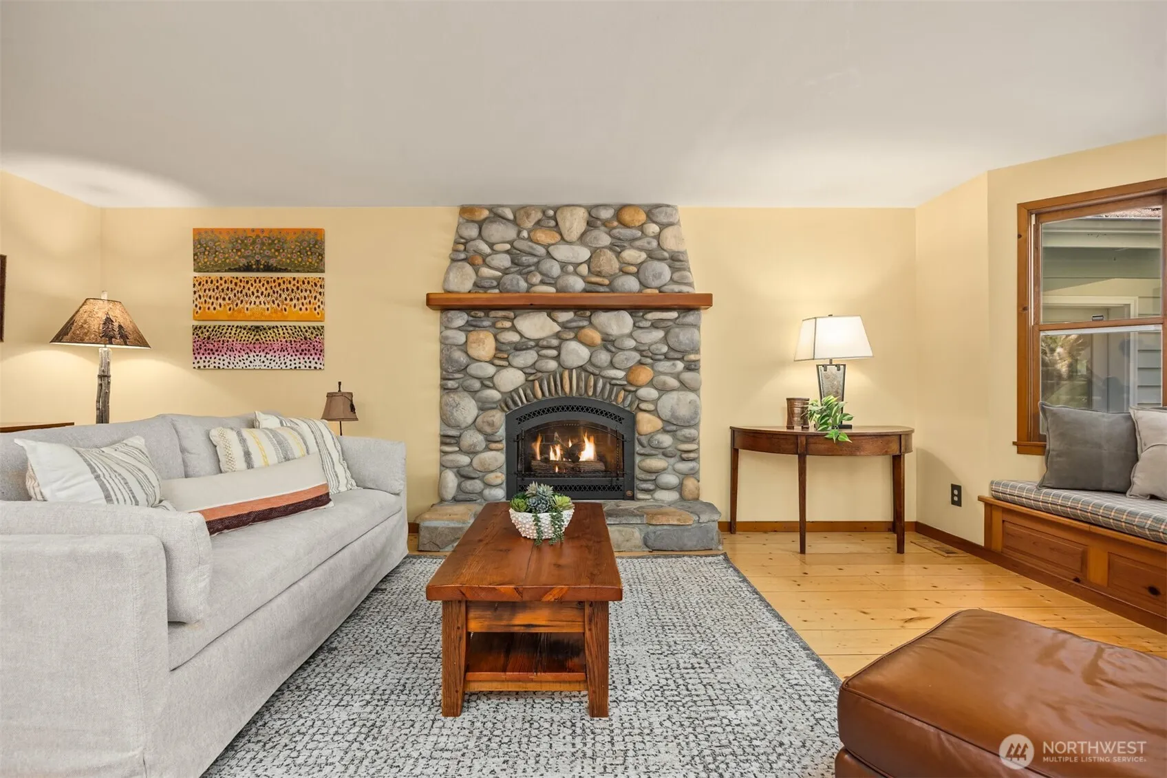 Improved Price! Charming cottage style home close to 90 acre Battle Point Park with sports fields, walking trails, play structures, and Pickle Ball courts. Conveniently located in the center of Bainbridge Island, close to all daily used amenities and schools. A tranquil 1.25 acres, this property includes a large deck for entertaining, beach access and private pond. Wide plank wood floors and open floor plan. Main floor primary bedroom, with 2 additional bedrooms on the upper level. Bonus space has private access on the second floor and would be a great home office or gym. Attached 2 car garage and additional RV or boat parking available. Store your kayak or paddleboard at the beach for easy launch