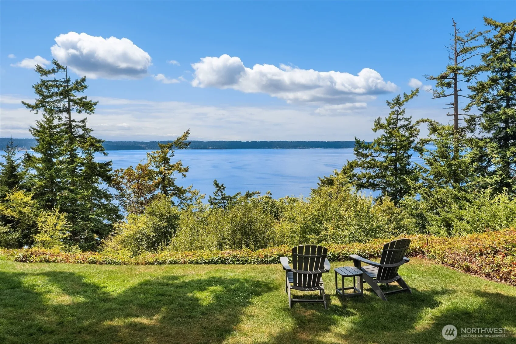 Set among lush gardens and framed by evergreens for privacy, this special home has desirable features around every corner. Understated luxury combined with privacy and unobstructed western views of Saratoga Pass, Olympics, and marine traffic. Designed for single-level living, the interior showcases thoughtfully designed spaces, new Wolf appliances(including micro), panel ready fridge, wine fridge, new roof, detached office, cottage shed, and huge deck together with multiple areas to relax and enjoy the yard. Enjoy the beach access footsteps away. 2 bedrooms + additional guest room. Carport and detached shop complete with a media lounge! Cross the bridge to Camano and feel the retreat vibe of the island-full time or part time. .