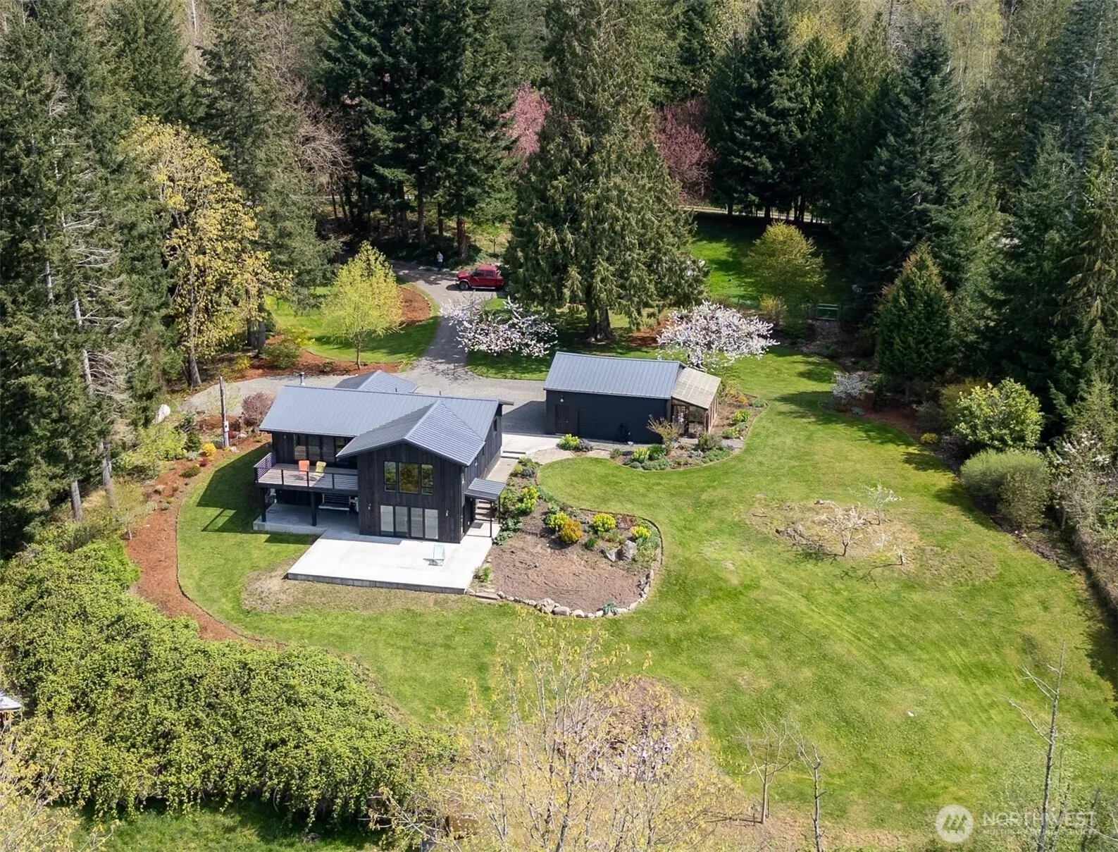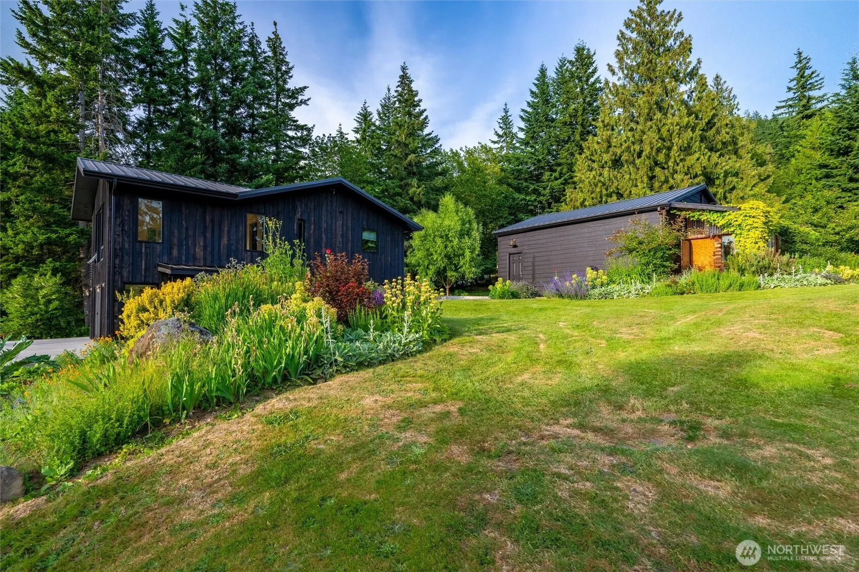 Stunning SW facing mountaintop home with beautiful 180° pastoral views of Nooksack Valley from San Juans to Canadian Coastal Range! Enjoy gorgeous sunsets all year in this fully remodeled high end 3 bed 2 bath home. Everyday is a vacation with gourmet custom kitchen & baths, stone countertops, wide plank fir floors, radiant heated slate floors, custom stairs/handrails, high end Westeck windows & sliders, and huge deck & patio facing West! Clad in rough sawn cedar siding and metal roof. A hobby farmer’s paradise w/ manicured gardens, fruit trees, animal barn and greenhouse. 2 car garage and large shop w/ wood stove. Located on a private dead-end road, this peaceful home fronts 100’s of acres of beautiful forest stretching to the North Fork!