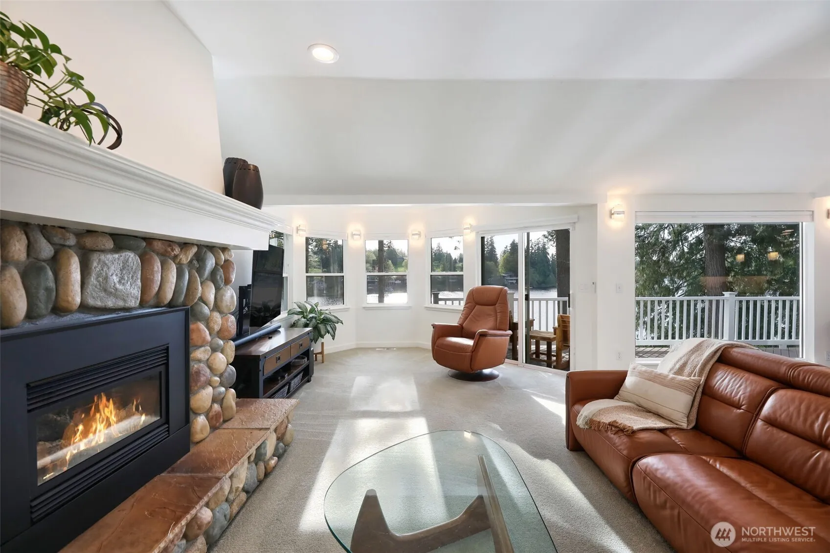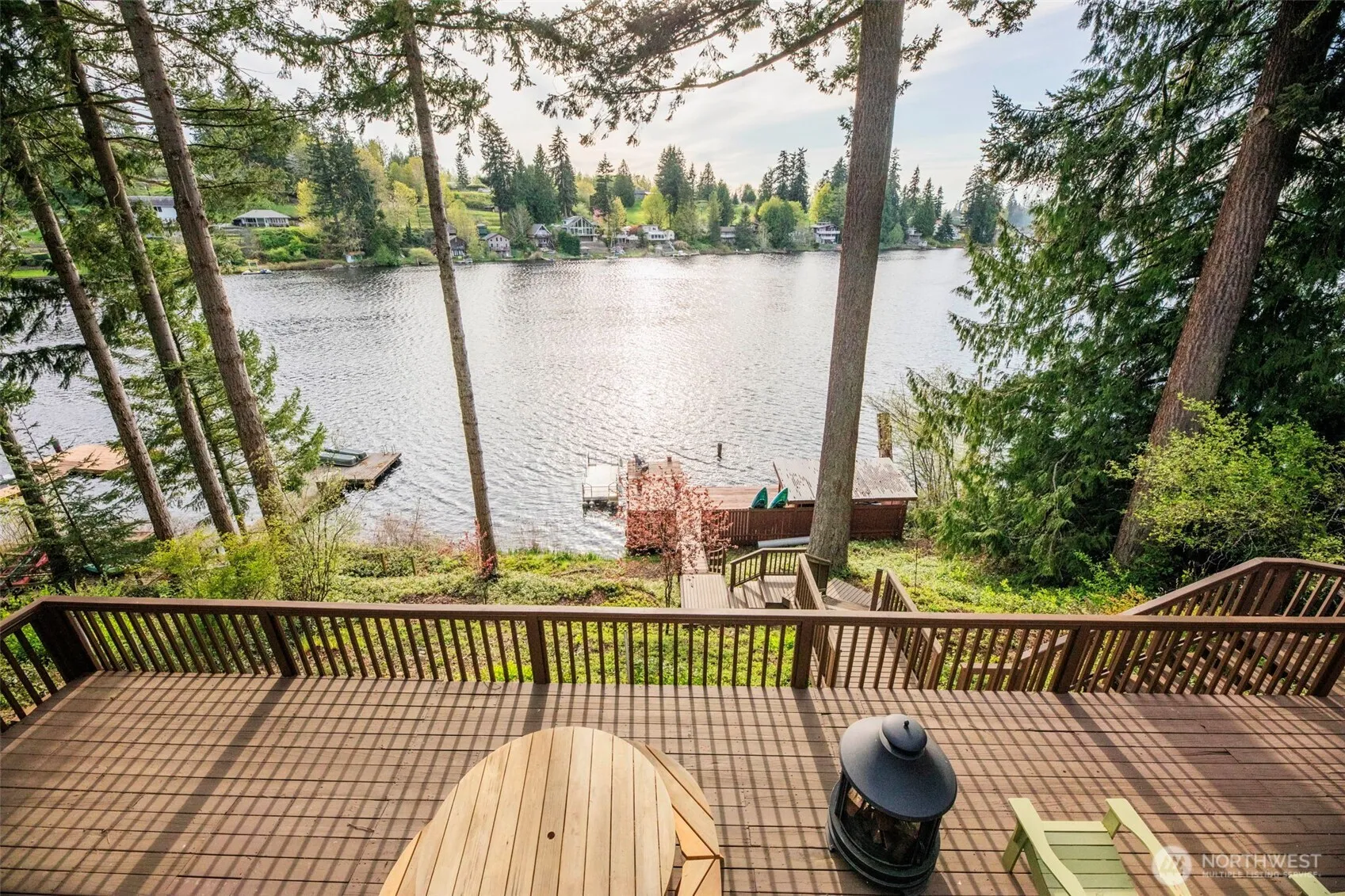 Experience tranquility in this exquisite home with 60 feet of lakefront. Bathed in natural light & offering breathtaking sunset views, this property is a true sanctuary. The Expansive entertainment deck seamlessly creates the perfect setting for enjoyable outdoor dining amidst the beauty of nature. Stroll down to your private covered dock, perfectly designed for your adventures. Enjoy modern luxuries such as a gourmet kitchen, bonus/media room, a garage fitted with a car charging station, RV power hook up and a 2022 pontoon boat, primed for exploration. Recently remodeled gem, completed in 2024, includes a whole house 24KW Generac generator, ensuring peace of mind year-round. Embrace the charm & serenity of a lakeside lifestyle.