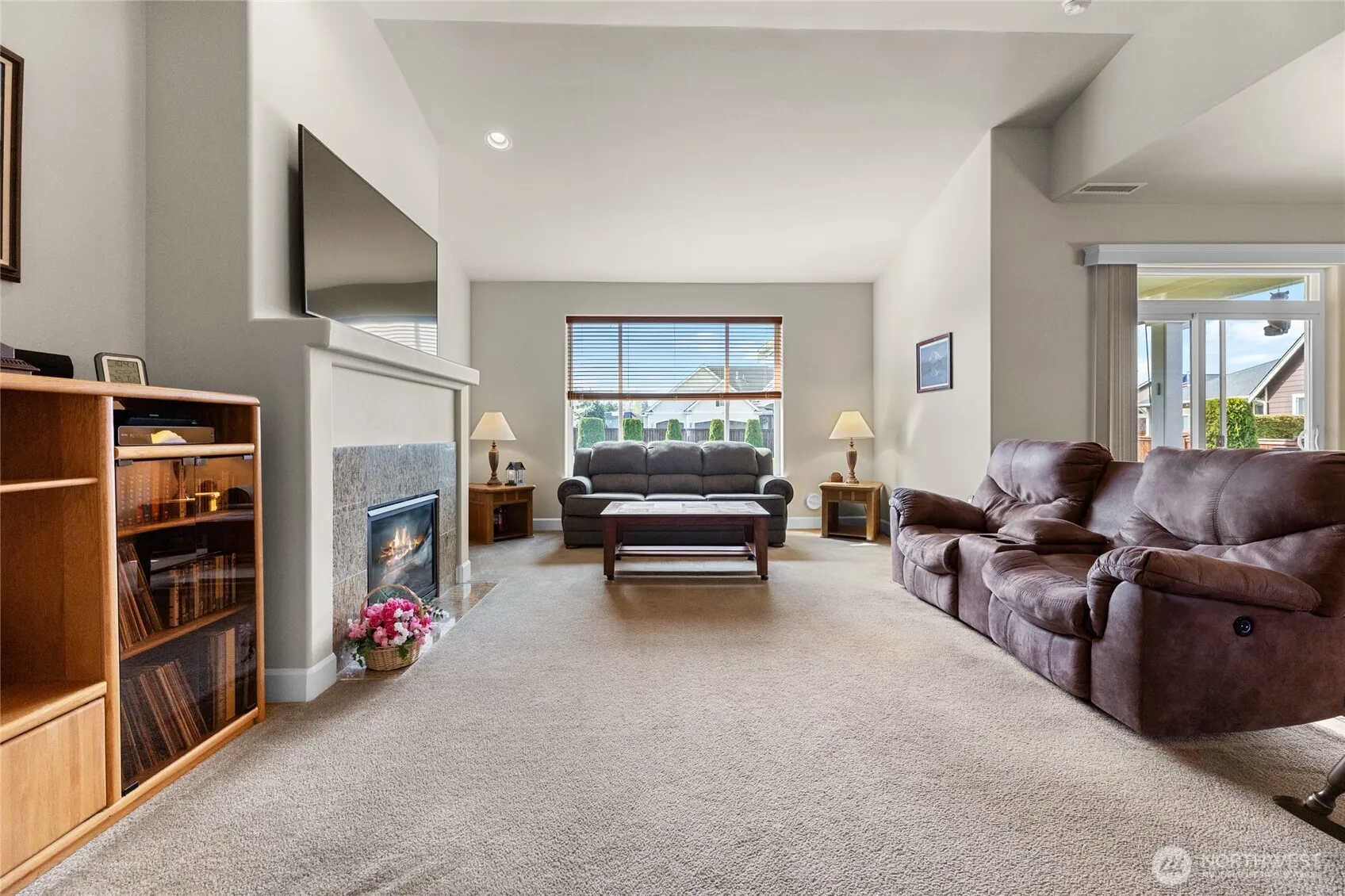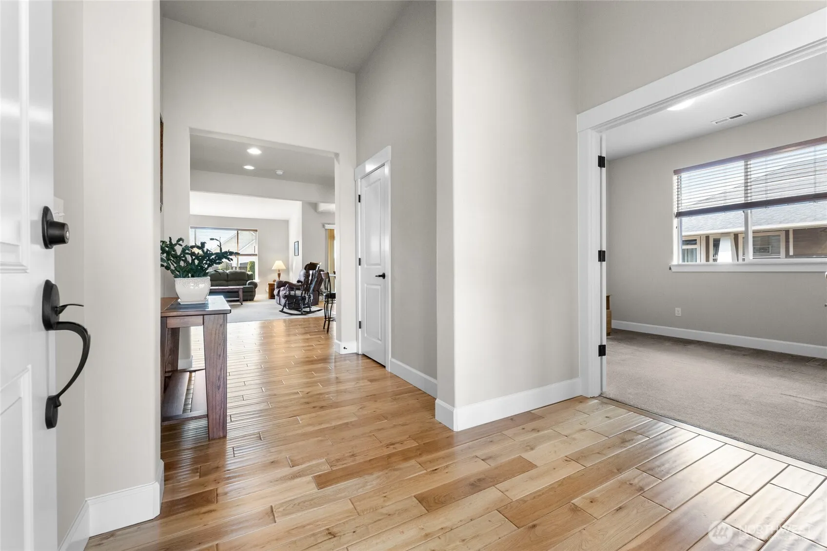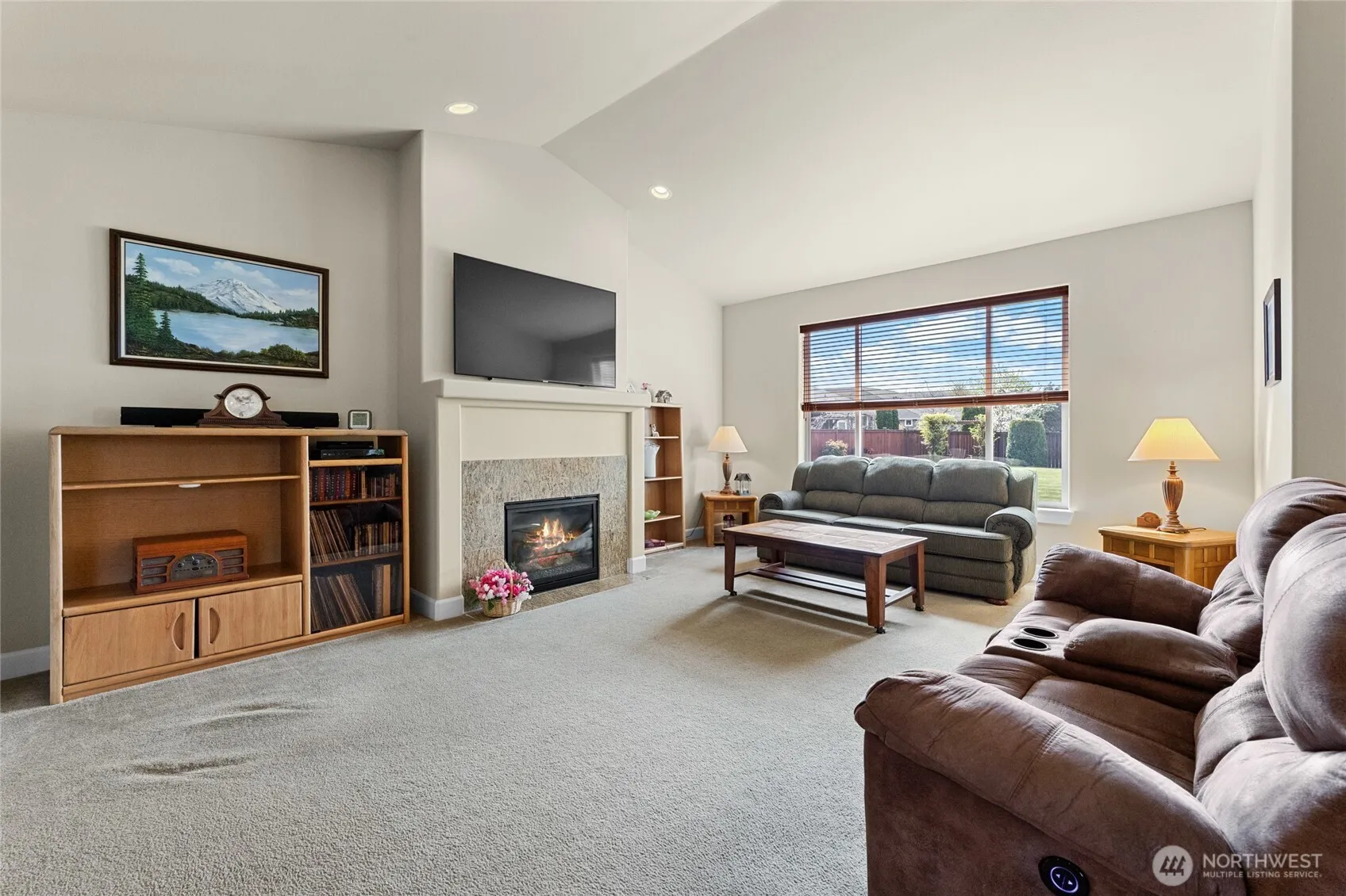 Enjoy stunning Mt. Rainier views from this meticulously cared for, open concept rambler. Designed to impress w/vaulted ceilings, high-end hardwood floors, white millwork, recessed lighting & an abundance of natural light. The exceptional layout features a gas fireplace & a spacious dining area that flows seamlessly to the expansive covered patio. The kitchen boasts rich cabinetry, slab granite counters, a large island w/eating space, extensive tile backsplash & sleek SS appliances. The luxurious 5pc primary ensuite includes a soaking tub, double sinks & a walk-in closet. The fully fenced backyard offers a double gate & raised garden beds. All tucked away just off Main Street in a quiet community of just 13 homes. Washer & dryer included.