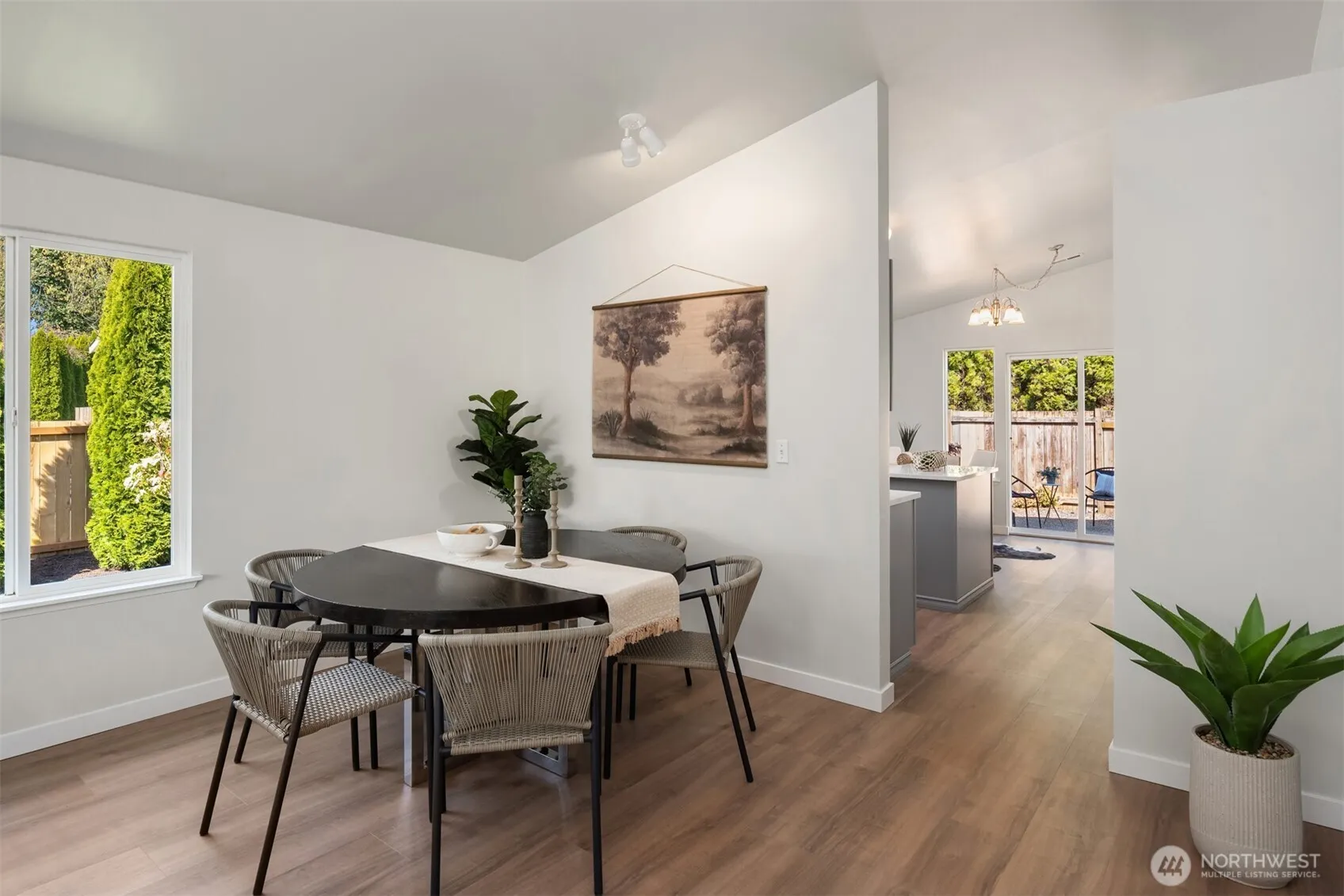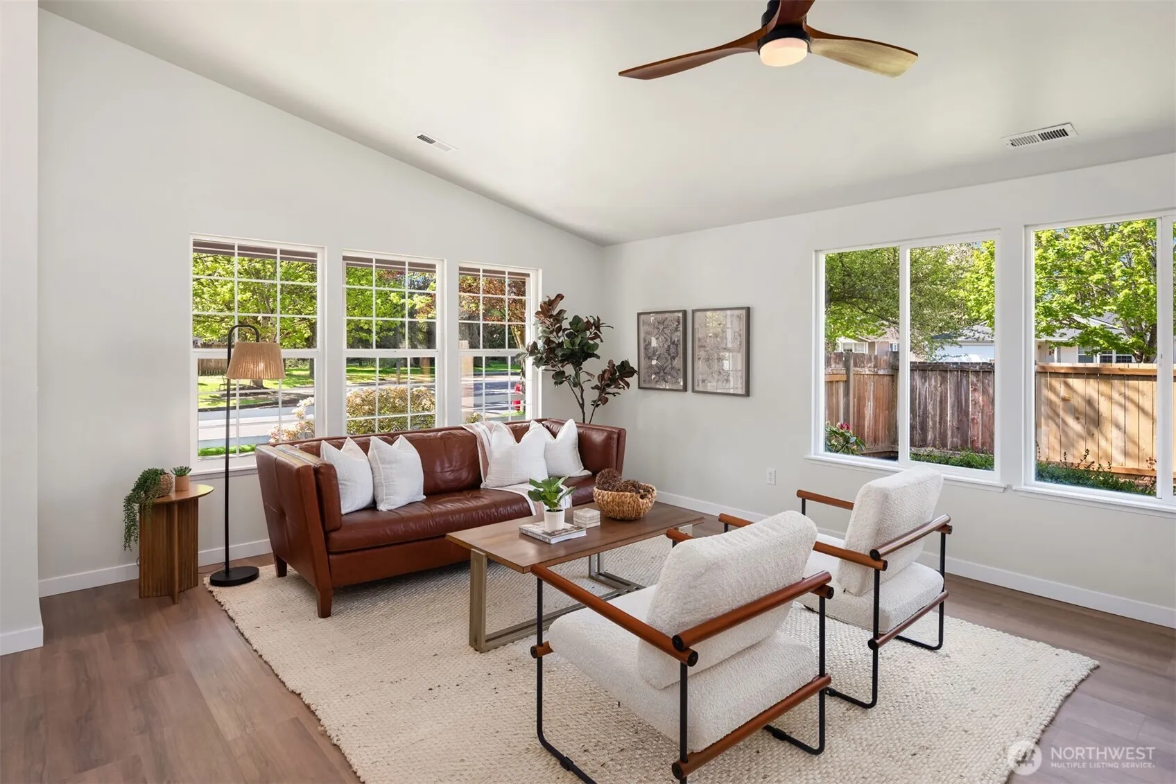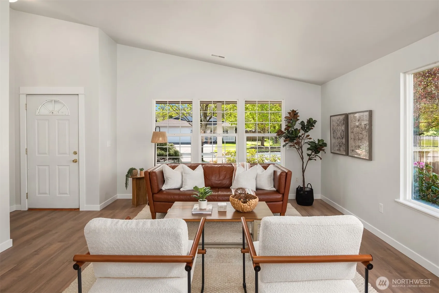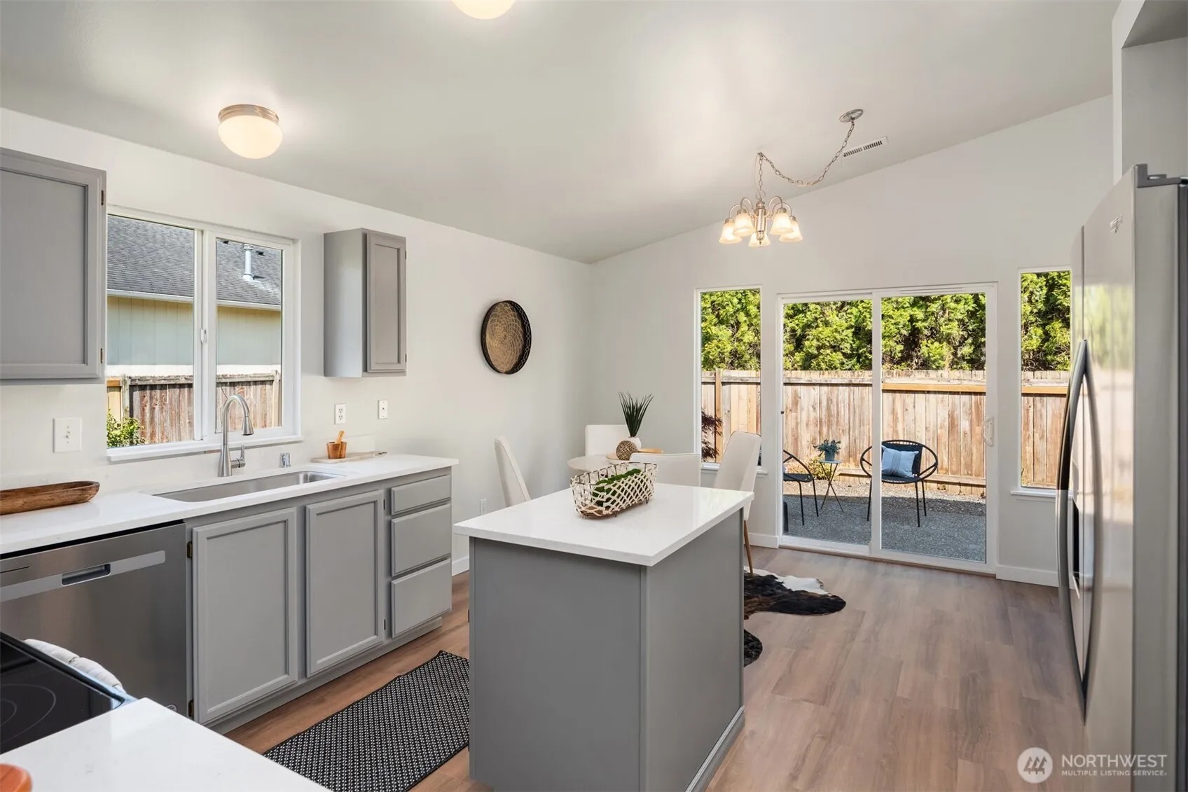 This beautifully updated, move-in-ready home features vaulted ceilings and oversized windows that flood the space with natural light. Recent upgrades include new LVP flooring, carpet, fresh paint inside and out, new white doors and millwork throught, and a stylish kitchen with new quartz countertops and brand-new stainless steel appliances. The updated primary en-suite adds a touch of luxury. Enjoy the expansive back patio, spacious side yard, new roof, and refreshed landscaping—all of which combine to make this a true turnkey oasis. Situated in quiet cul-de-sac, close to vibrant Smokey Point and I5, perfect for commuters.