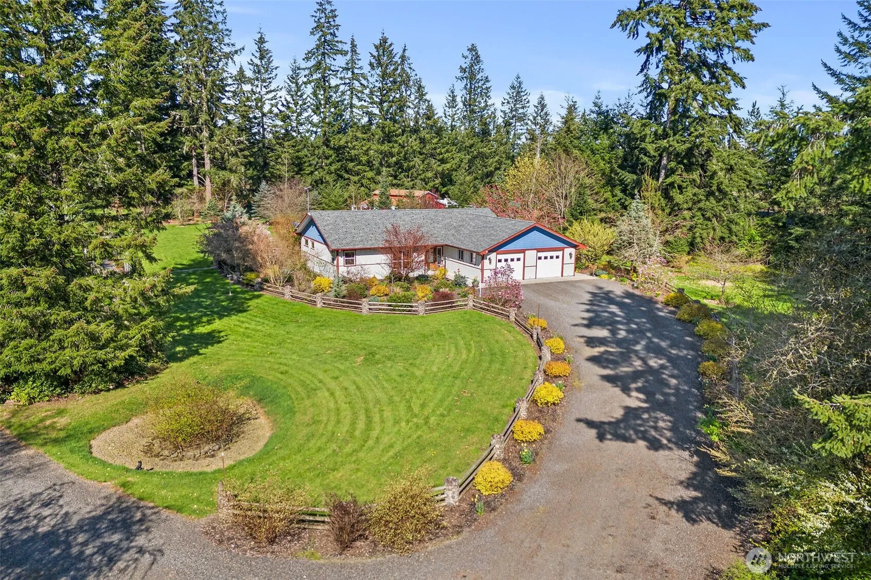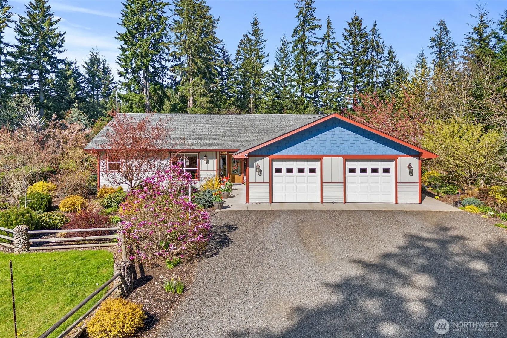 A beautifully designed single-level home nestled on 4.71 parklike acres, a rare blend of functionality, comfort, and natural beauty. Inside find solid 9/16″ thick bamboo flooring, granite counters, and solid wood doors and trim throughout. The home is built on commercial-grade trusses and features Milgard windows, an on-demand water heater, and a hardwired alarm system for peace of mind. Thoughtfully designed for easy living and is handicap accessible. Landscaped gardens surround the home with exotic plants and trees. The property includes a 2-stall barn, fenced pastures, insulated garden shed/kennel with power, dedicated garden area, gated entry, a redwood back deck and a 40×56 heated and insulated shop. All with generator back up.
