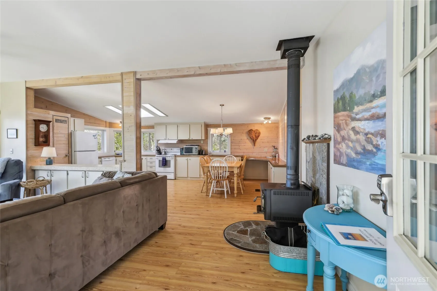 Soak in breathtaking west-facing water views w/approx 90+/- feet of high-bank frontage overlooking Holmes Harbor & Olympic Mountains. Enjoy unforgettable sunsets from the expansive deck, sunroom, or living room. Open-concept living room w/cozy stove seamlessly flows to the kitchen w/dedicated dining area. Generously sized primary plus 2 addl bedrooms, offer plenty of room & flexibility. A greenhouse on the property adds charm & functionality for year-round gardening. Newer composite roof, newer siding, & newer water heater. 2 car garage w/workshop. Strong vacation rental history. Community beach area features a boat ramp, bulkhead beach, picnic area, & opportunities for beachcombing & crabbing—ideal for those who love life by the water.