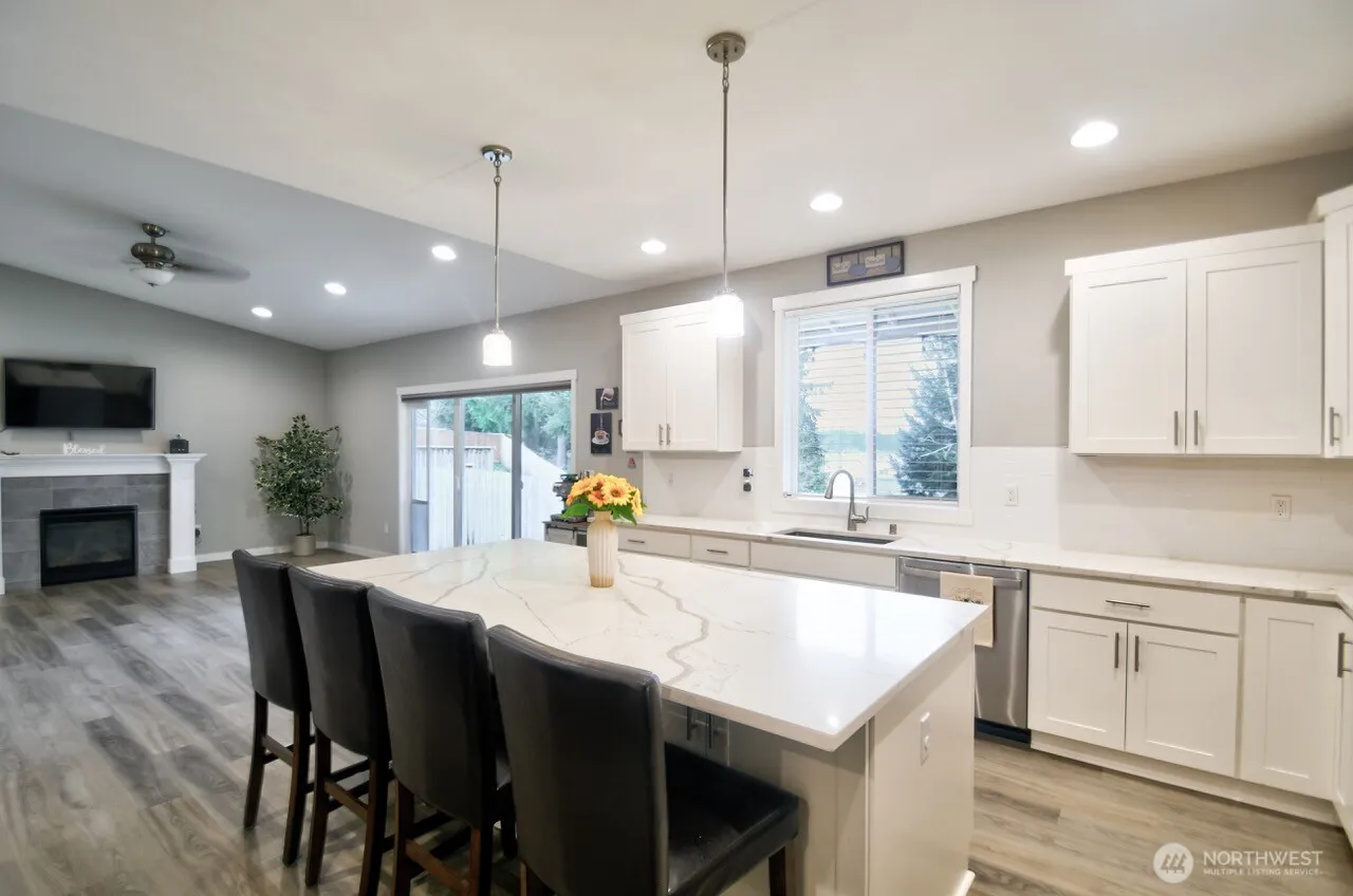 Small Town Living at it’s Best, Trotter Downs Neighborhood in Rainier, Almost New Rambler 1691 sqft home on .34 ac. Spacious open floor plan, 3 bedrooms, 9ft ceilings, Gourmet Kitchen, light and bright with quartz counter tops and lots of cabinets, beautiful island, farm style sink, SS appliances with gas range. Main bedrm with luxurious en suite, soaking tub, double sink vanities in both bathrooms, mini splits in each rm. lg utility rm washer/dryer incl. 2 car garage, tankless hot water heater, 3 panel glass slider with custom pull down blinds leads to a private back patio, terraced, fenced back yard to enjoy bbq’s and sunsets, quiet neighborhood with sidewalks. Close to the Rainier Sports Complex, Park with Playground and the Paved Trail System! Something for everyone! 22 mi from JBLM, 20 minutes to Oly. Move in ready! See it today!