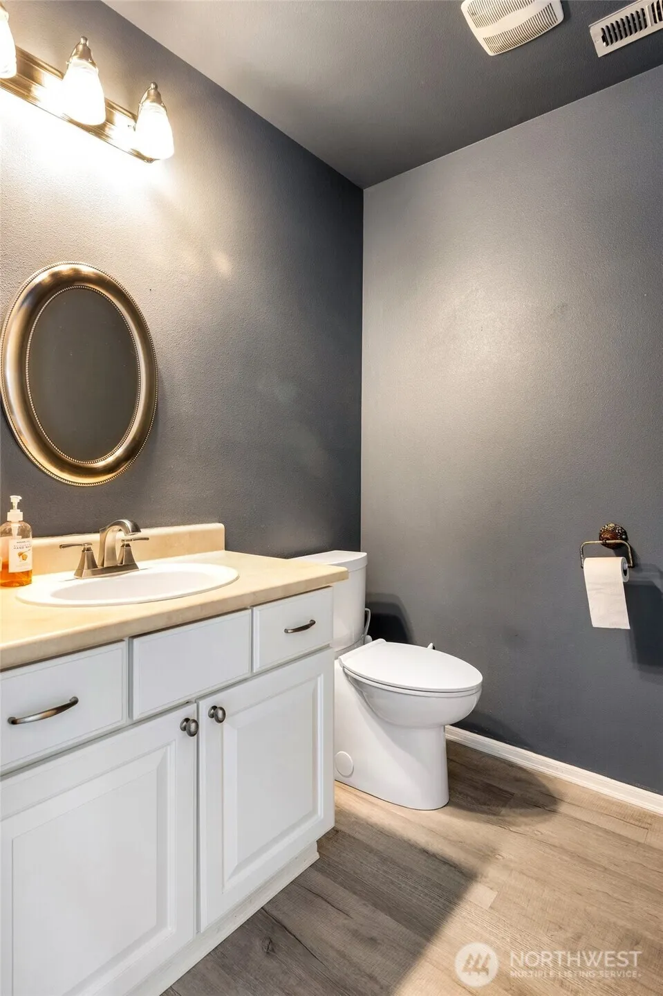 The best deal in Mount Vernon! 2200 sqft home with expansive primary suite, 5 piece primary bath with massive walk in closet, spacious living room, upstairs loft, and bonus room downstairs for the perfect home office or formal sitting room. Brand new ss fridge, a gas range, garage wired for 220v, and fresh interior paint ready for your vision. Low maintenance yard is your perfect oasis with sprawling community parks and trails available in the Skagit Highlands neighborhood for all of your outdoor adventures. Large secondary bedrooms include walk in closets as well!