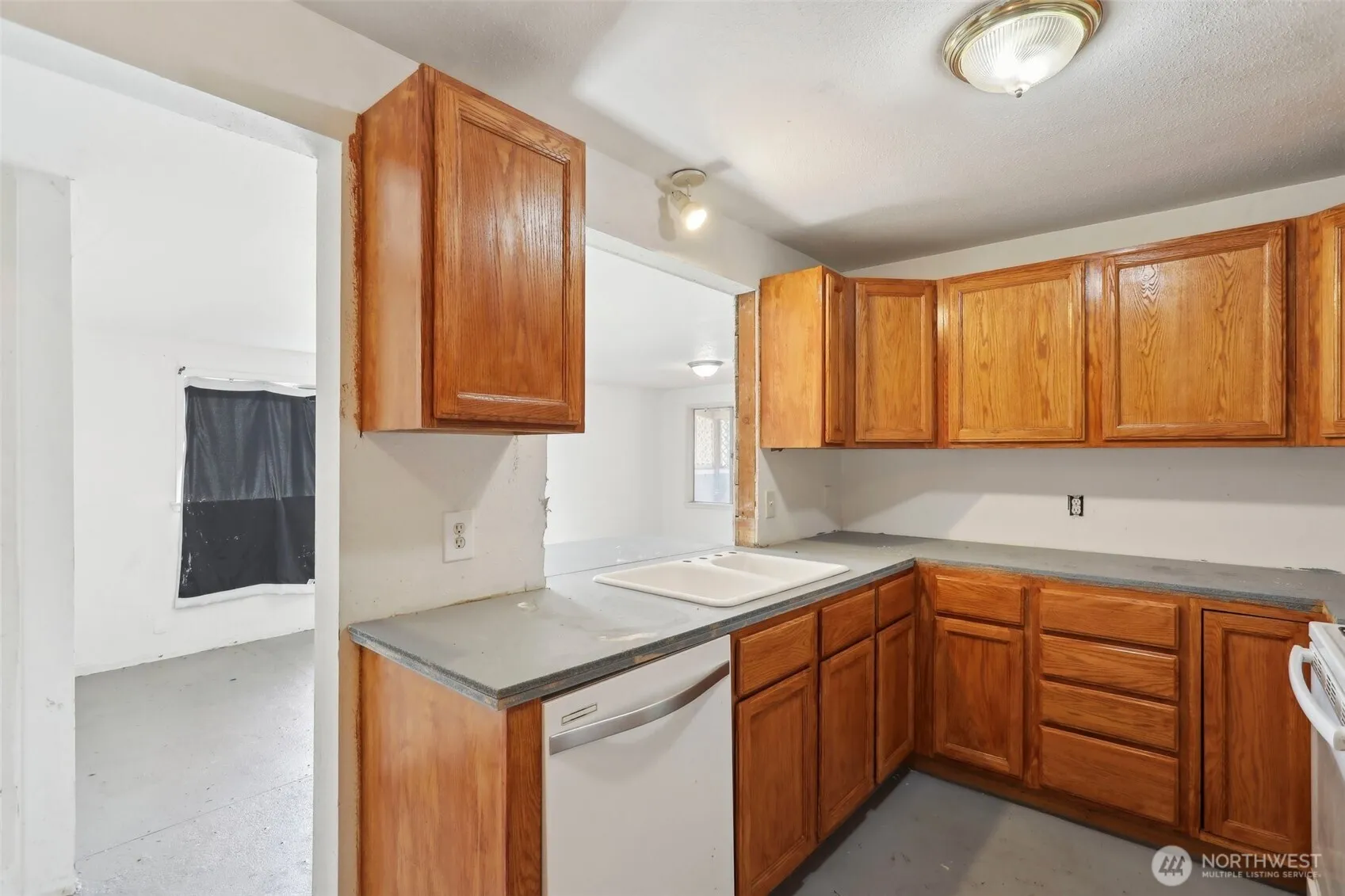 Spacious daylight Rambler with endless potential ready for your vision! This home offers 3 bedrooms and 1 bath upstairs, along with 2 spacious bedrooms and 2 full baths downstairs. Expansive living and family rooms, plus a massive covered patio, provide plenty of room to relax and entertain. A second kitchen on the lower level makes it ideal for multi-generational living. Cozy up by 2 fireplaces and enjoy the garage on a quiet, low-traffic street. The large yard features a huge nearly complete outbuilding, and terraced gardens. Perfectly located near I-5, I-405, SeaTac Airport, and Southcenter Mall, With creativity and elbow grease, this is an incredible value. Schedule your tour today!