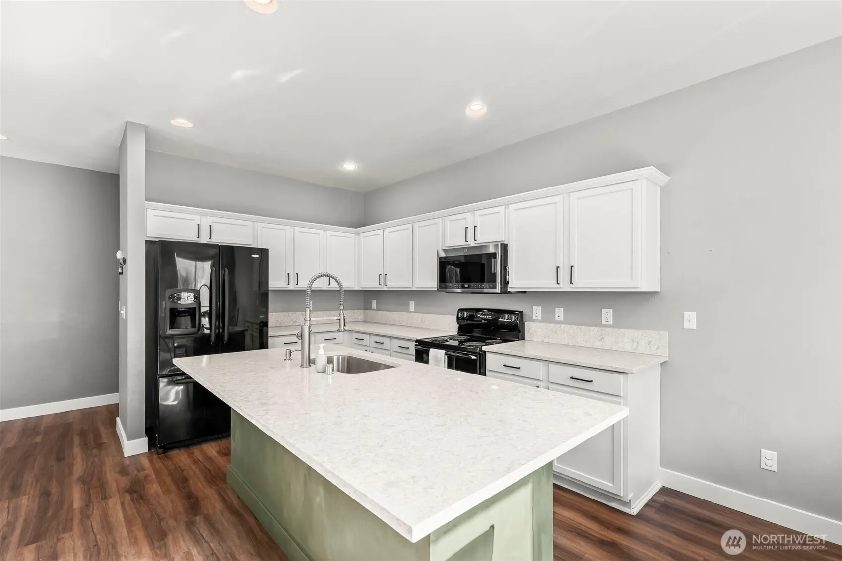 Beautifully updated home in the Saddle Creek community! Fresh interior/exterior paint, new carpet, and LVP flooring. The kitchen features new countertops, fixtures, and updated appliances—including a new dishwasher and microwave—centered around an island perfect for entertaining. Dining room opens to the back patio. Spacious primary suite with soaking tub, separate shower, dual sinks, and a walk-in closet. Two additional bedrooms share a full bath. New washer and dryer conveniently located upstairs. Updates include a new water heater, blinds, doors, trim, bathroom countertops, sinks, fixtures, freshly serviced furnace and A/C, professionally cleaned roof, smart home tech, and refreshed landscaping. Meticulously maintained and move-in ready!