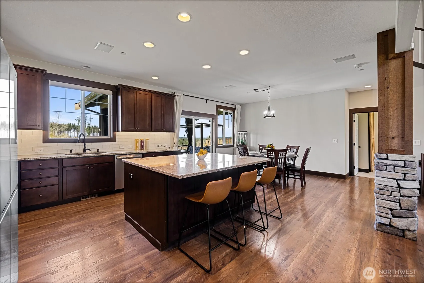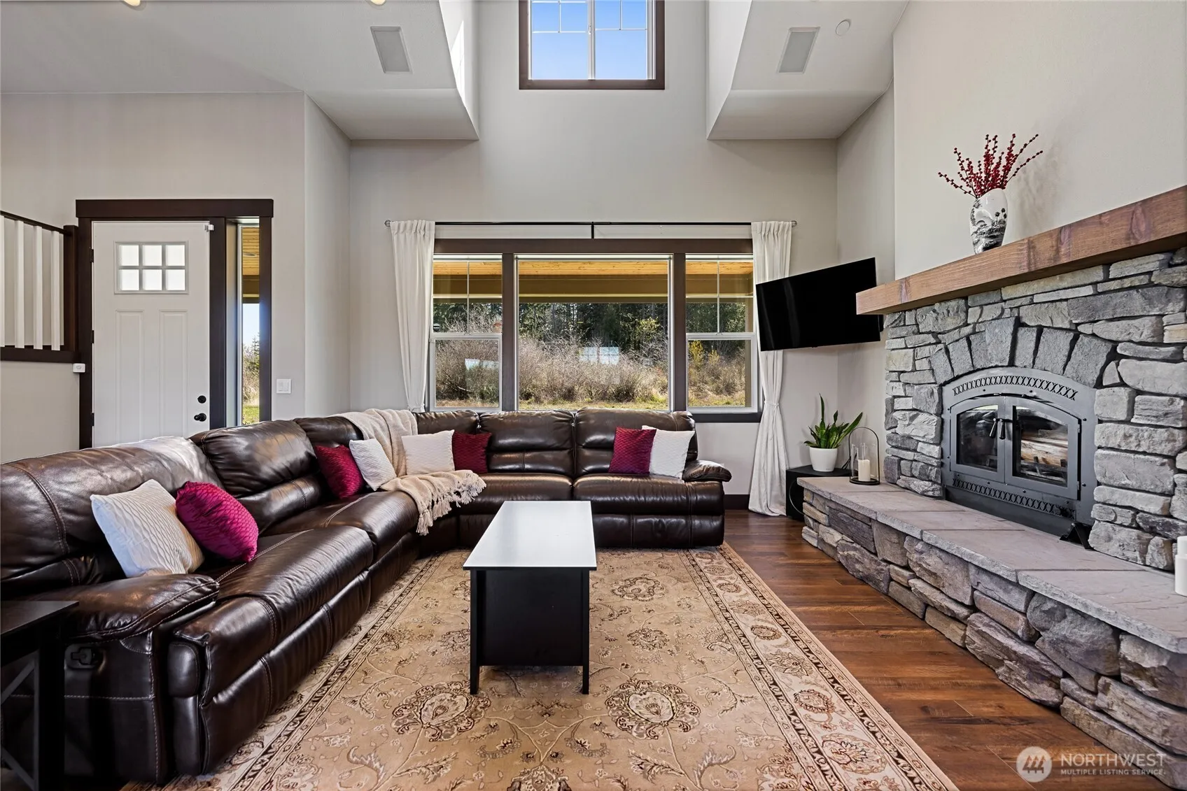 Custom-built home on 20 peaceful acres in Roy’s gated community! This beautiful home features vaulted ceilings, a spacious living room with a stone fireplace, and an open kitchen with stainless steel appliances, large island, and elegant cabinetry. The main-level primary suite offers a walk-in closet and spa-like bath with soaking tub and walk-in shower. Upstairs has three bedrooms, a full bath, and a large entertainment room with projector, screen, surround sound, and wet bar. Enjoy the outdoors on the covered patio with propane fireplace and drapery-style shades. The property includes a fenced pet area, two large storage sheds, and a deer-proof garden. Private, serene, and perfect for relaxing or entertaining! Must see!