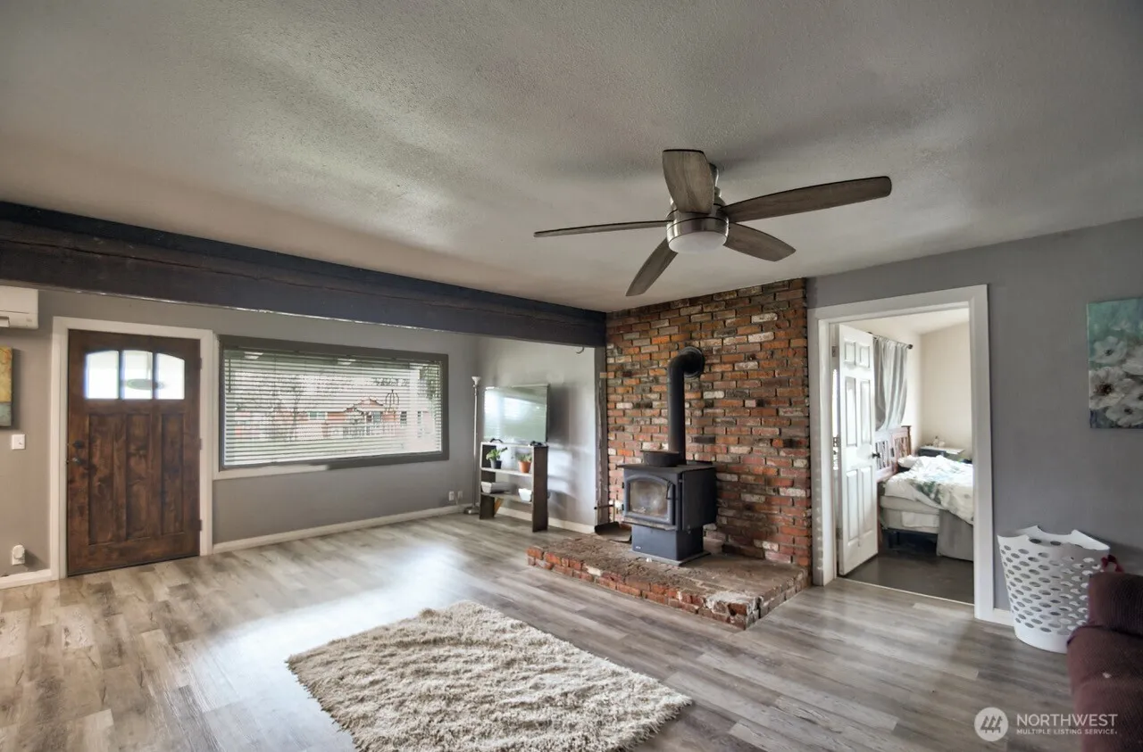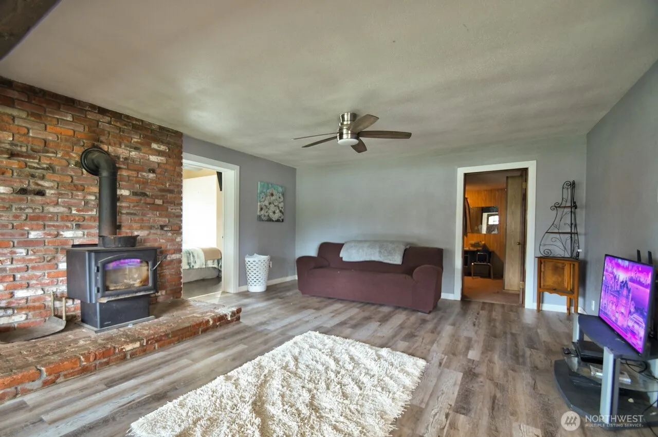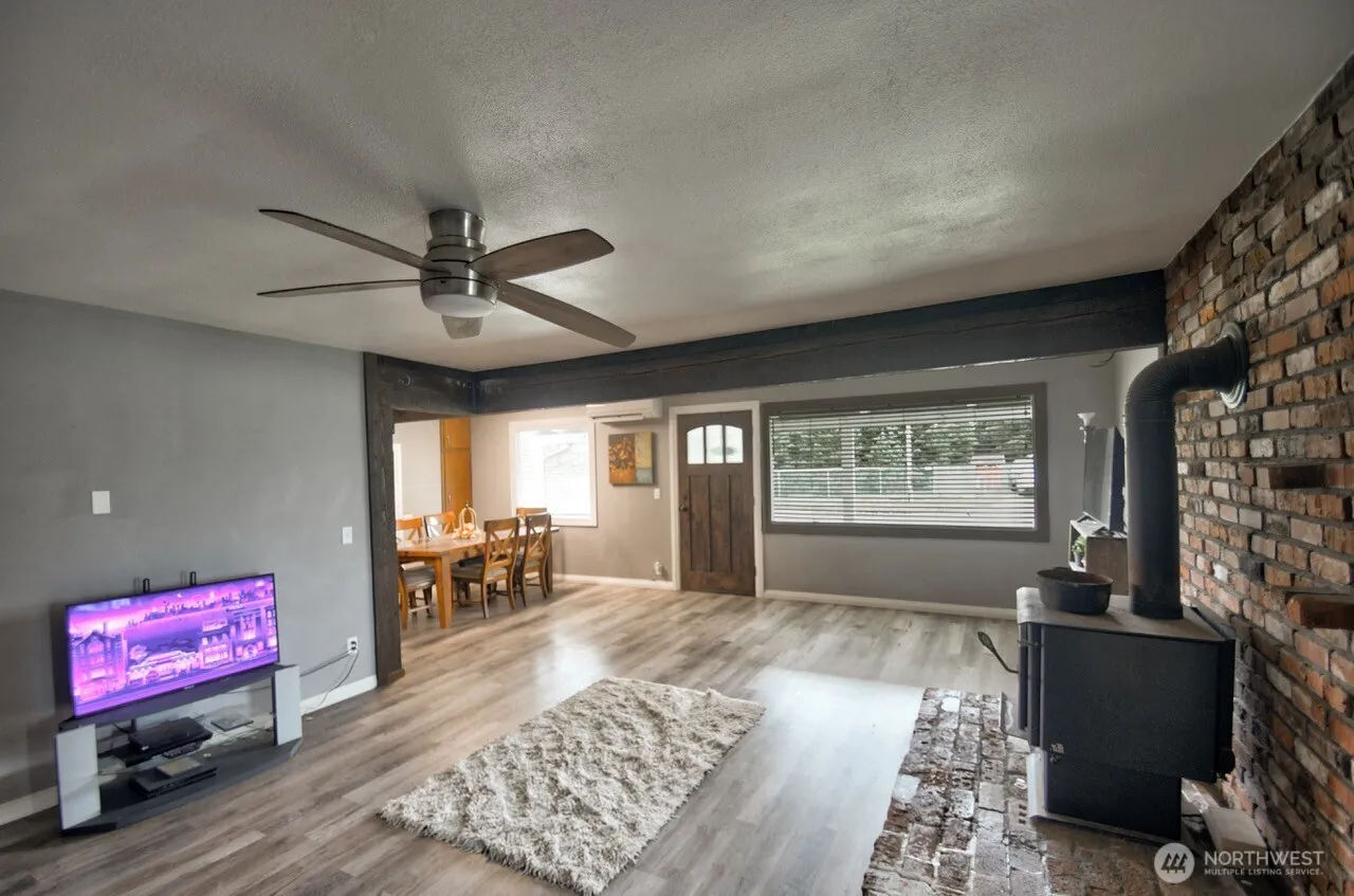 Charming 3 bed, 2 bath home on 2.8 serene acres! This 1,460 sq ft gem features updated flooring and fresh interior paint throughout. Enjoy the spacious living/dining combo and oversized living room with a cozy wood stove. Stay comfortable year-round with a new ductless heat pump. The primary suite boasts a walk-in closet and private full bath. Outside, find a partially fenced yard, attached 1-car carport, and a detached 1-car garage with an exercise/workshop space and additional craft/hobby room. Peaceful rural living with modern updates!