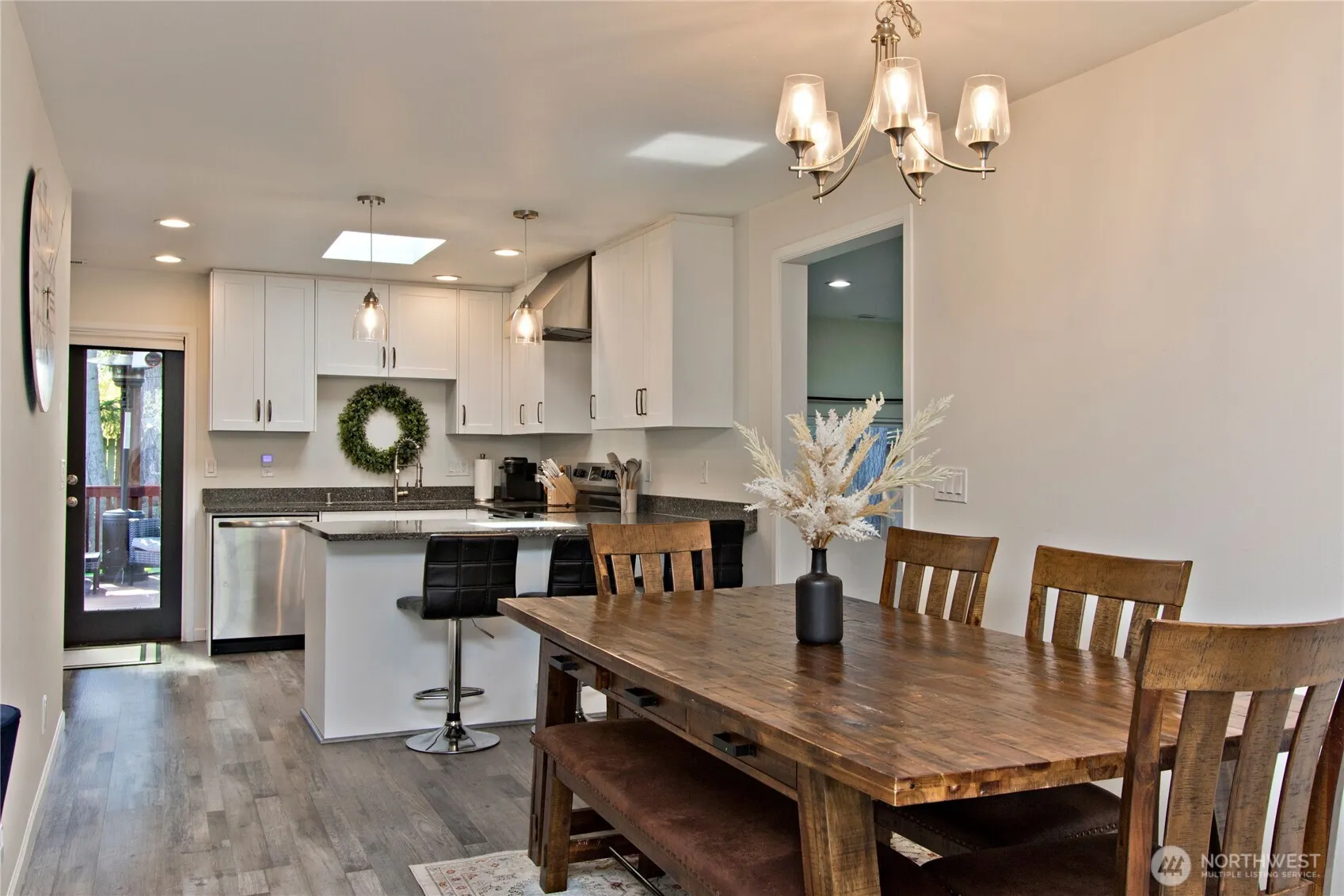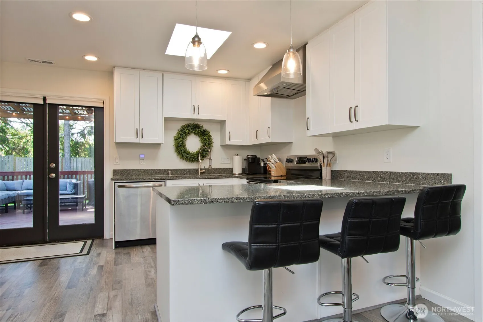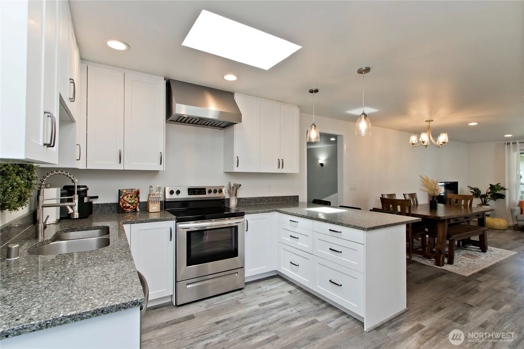 This beautifully updated 4 bedroom, ONE-LEVEL home was fully renovated in 2022 and features 1,901 sq ft of bright, open living space. The spacious kitchen features quartz counters, stainless steel appliances, and flows into a spacious living area and cozy family room with a custom electric fireplace and hidden storage. Skylights, LVP flooring, and French doors to a covered deck make it perfect for easy living and entertaining. Enjoy an oversized 770 SF garage with a new EV charger, dual driveways & carport for ample parking, a brand-new roof in 2022, and located in the sought-after TAHOMA School District. **$5,000 credit for buyers using Brian Calvo at All Western Mortgage!**