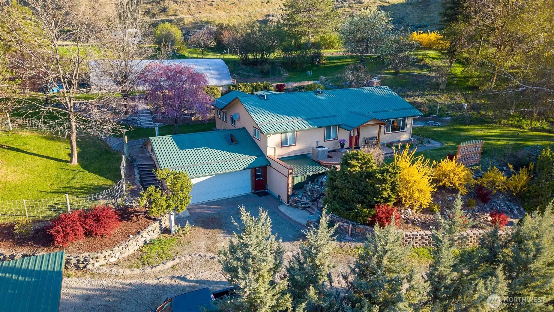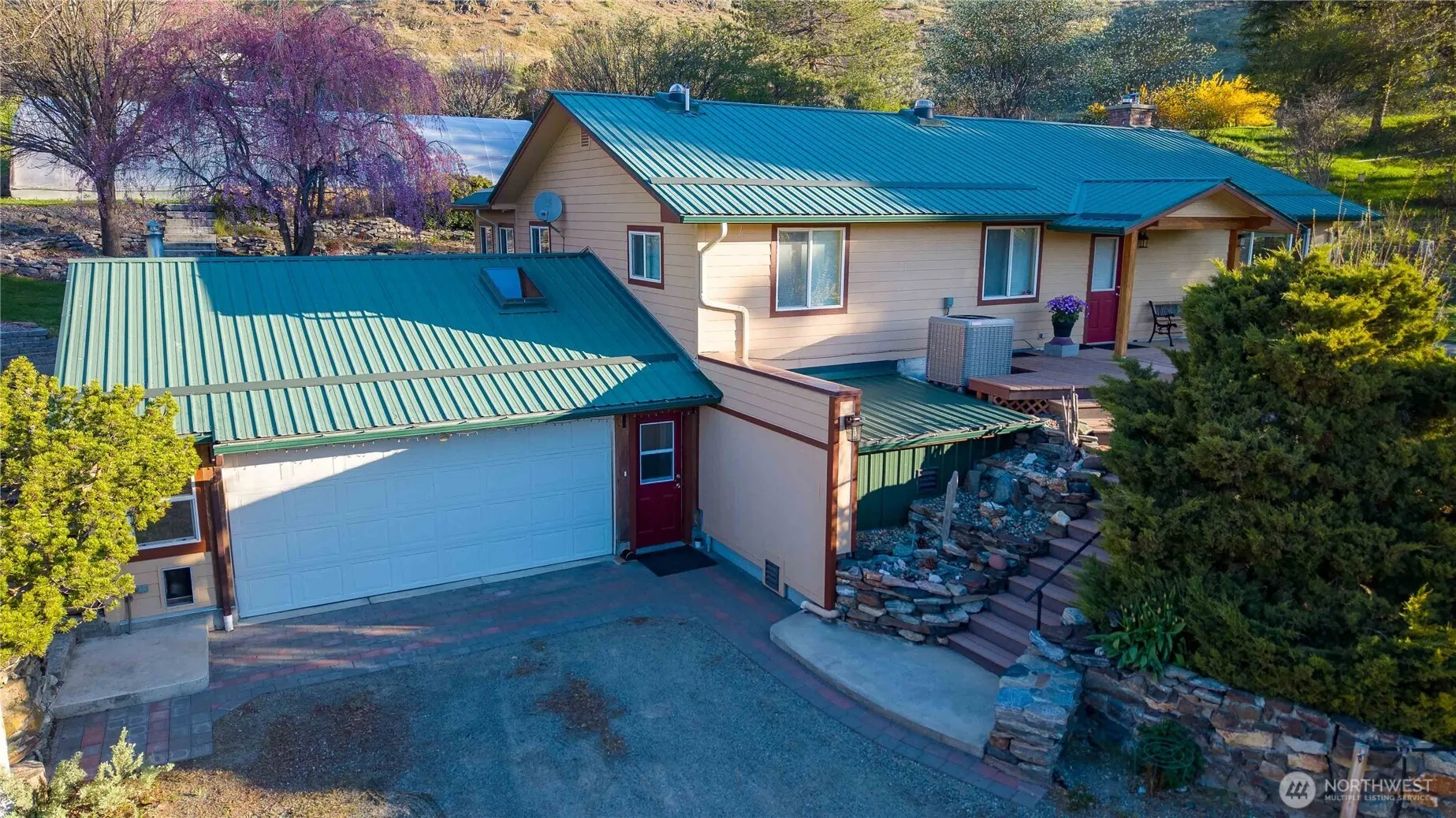 Riverside – bordered by Johnson Creek! Charming 3 BR/2BA on 23+ acres only 6 mi from Omak. Remodeled in 2001. Main level features cozy living room w/woodstove, dining room & well-equipped kitchen (appliances stay). Primary BR w/ vaulted ceiling & skylight. Guest BR & full bath. Lower level incl nonconforming BR, full BA, laundry, utility rooms & versatile bonus room w/ ample storage space. Attch 2-car garage w/ storage racks & 50A 125/250V welder’s receptacle. Outside you’ll find an inviting Swedish sauna, oversized insulated workshop, 30×60’ greenhouse, and 12×16’ & 16×18’ equipment shed. Large dog run, mature fruit trees & beautiful garden space. Come see this serene refuge, and make it your own. Septic. $629,900 MLS-2360136/H-3656