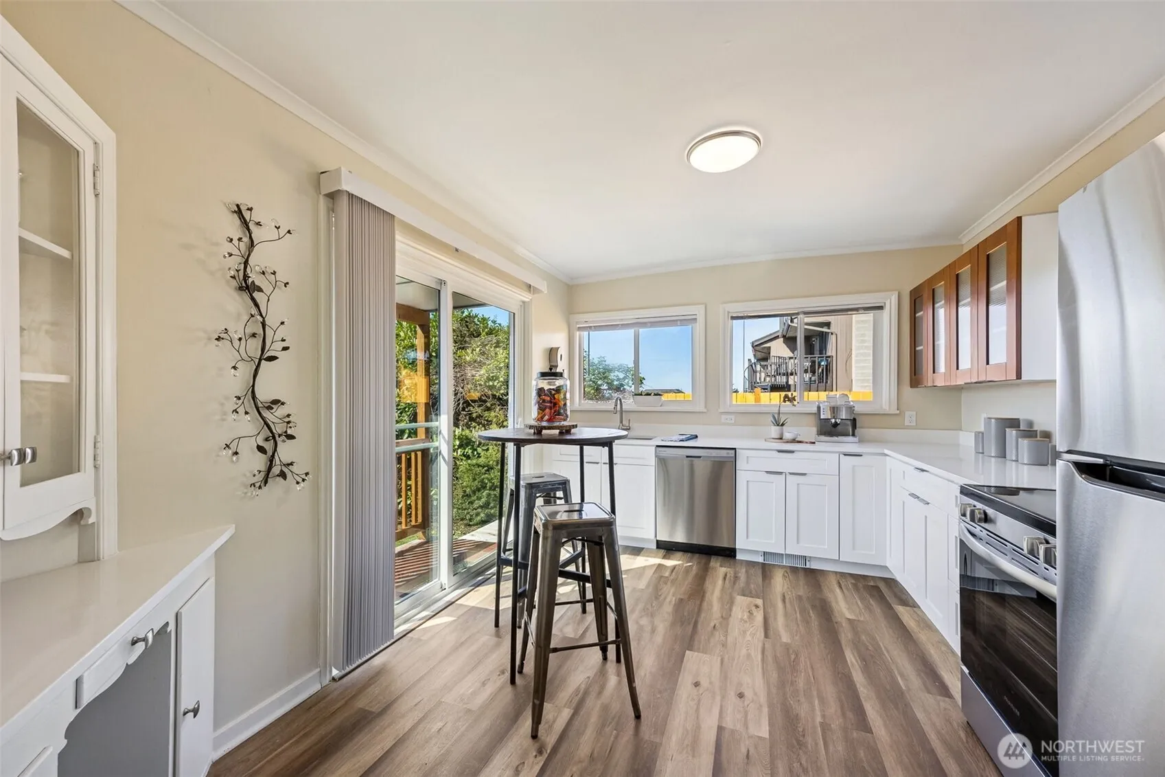 Three bed, 2 bath home plus a DADU on desirable North Hill in Des Moines with views of Puget Sound & Mt. Rainier. Spacious living areas, cozy wood-burning fireplace, two generously sized main floor bedrooms and an updated kitchen with new cabinets, counters & appliances. Lower level includes a large rec room, third bedroom, laundry room and loads of storage space. Two car detached garage with 1-bedroom apartment is ideal for guests or for generating rental income. Charming courtyard with stone fireplace is perfect for summer gatherings. New carpet, fresh paint inside and out & recently updated electrical system make this house move-in ready. Conveniently located to freeways, airport & shopping.