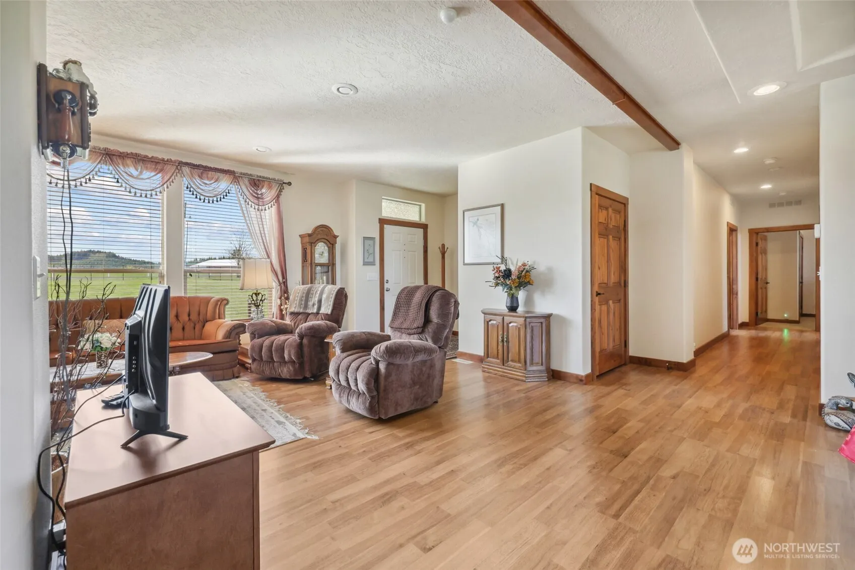 Peaceful views, beautiful home, lovely property! 5 acre parcel offers stunning Mountain & Capitol Forest vistas! Beautifully appointed one-level home outfitted w solid wood doors, tall ceilings, recessed lights, granite counters, & craftsman wood-wrapped windows. Dreamy open kitchen w island bar, tons of cabinets/counters, wall oven, pantry & more; Laundry/mud room w cabinets & 1/2 bath. Every detail for comfort has been considered: wide hallways, built-ins, tall bath vanities, hydrospa walk-in tub, tile shower, WIC, generator, & heat pump! Patio w ret. awning is wired for hot tub overlooking the wide territorial views & appealing landscaping. Storage shed & double garage (1 car door) for ample storage/hobby space. Luxurious country living!