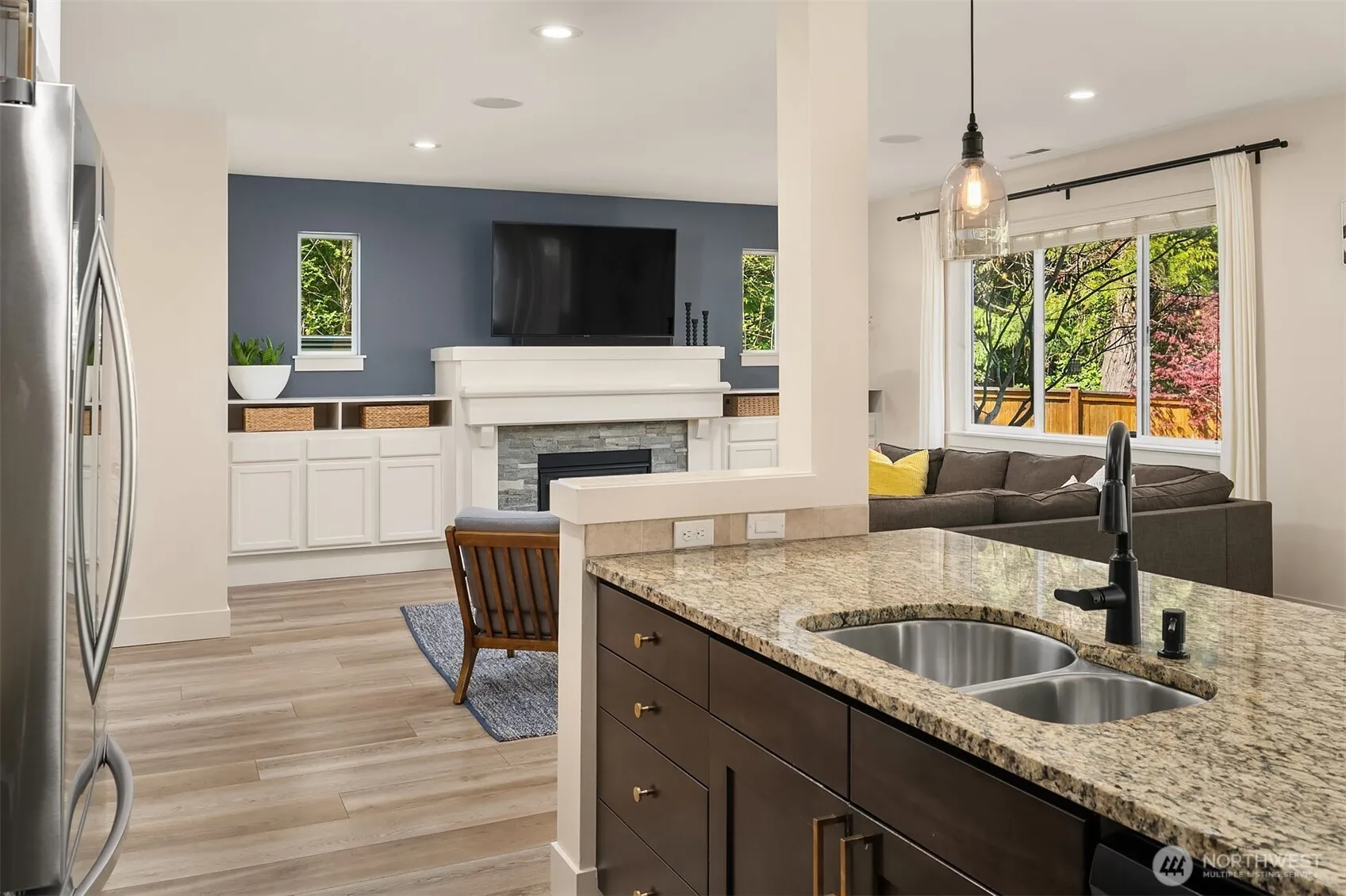 Welcome to this beautifully maintained home on a peaceful corner lot in the sought-after Arbors at Harbour Pointe neighborhood. Set within a wonderful community, this light-filled residence offers 4 spacious bedrooms, 2.5 baths, & a versatile den w/ custom cabinetry. Thoughtful upgrades include LVP flooring, central A/C, gas fireplace, custom closets, and built-ins throughout. The chef’s kitchen features granite countertops and updated appliances, while the luxurious primary suite boasts a spa-like bath and a generous walk-in closet. Outside, enjoy a meticulously landscaped backyard retreat w/ native plantings, irrigation, & a stamped concrete patio. Convenient location close to top-rated Mukilteo schools, parks, dining, & amenities.