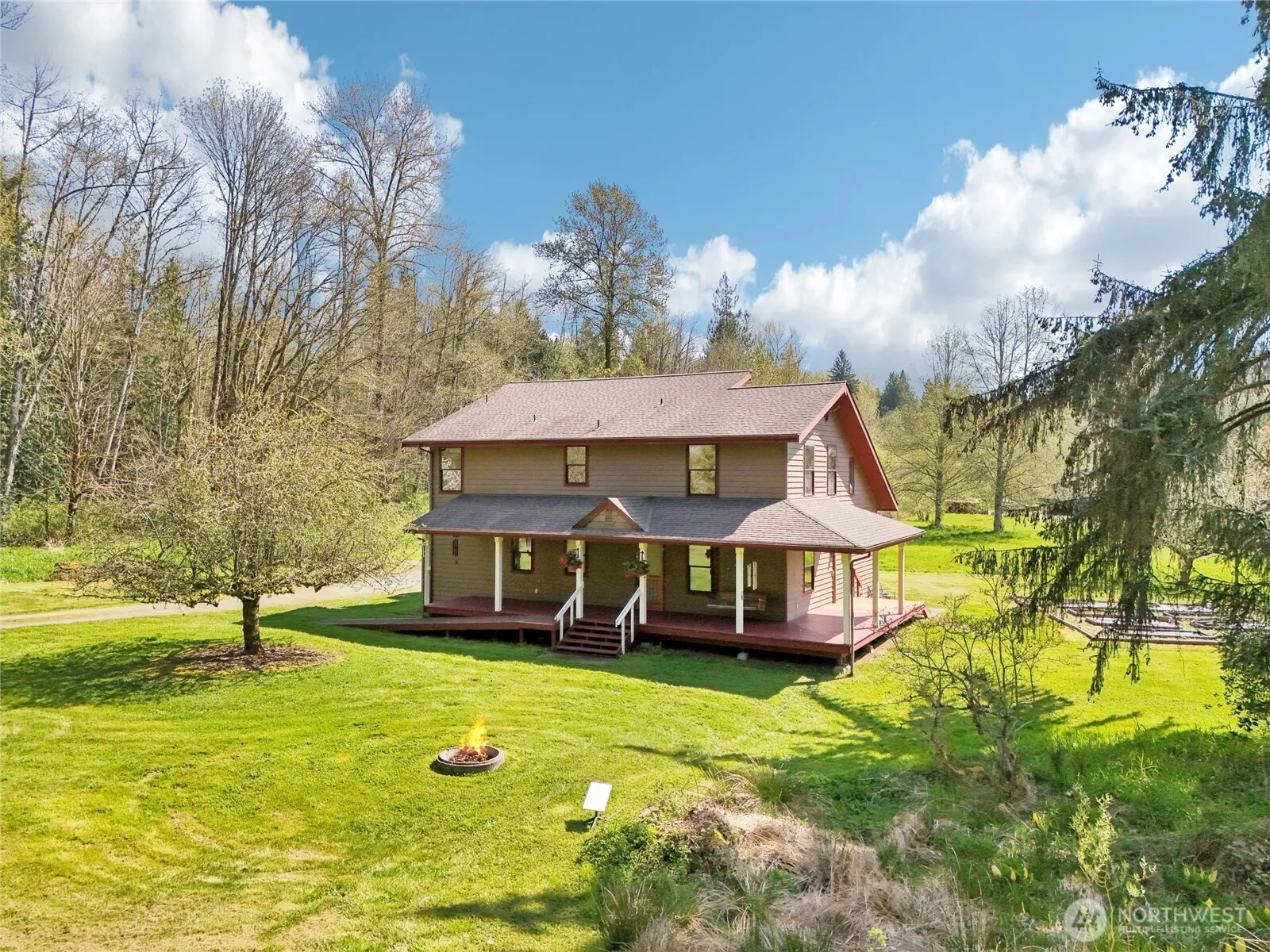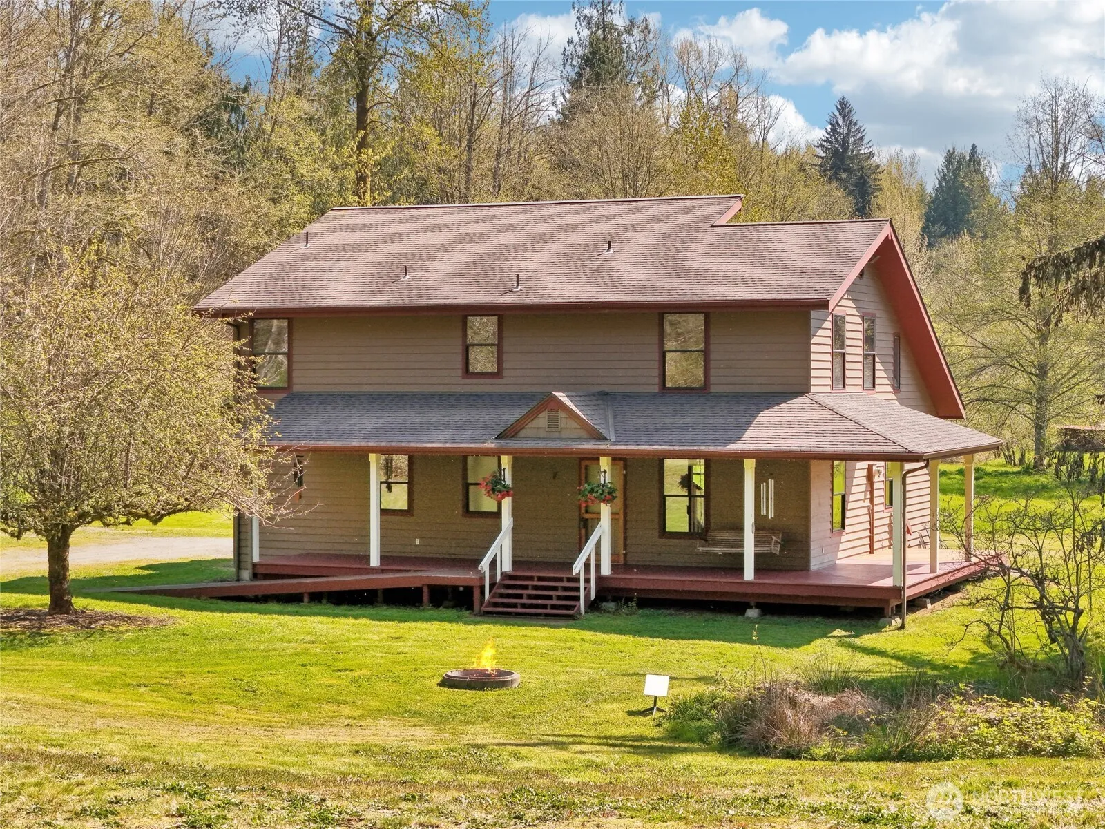 Welcome to this exquisite Arlington Heights retreat—on the market for the first time! This custom-built home showcases stunning woodwork, vaulted ceilings, and expansive windows that fill the space with natural light. The main level features a spacious great room with a gorgeous fireplace, formal dining, and a chef-inspired kitchen. A full bath, office, and additional bedroom offer flexibility. Upstairs includes the elegant primary suite, two additional bedrooms, and another full bath. Enjoy raised garden beds, a wraparound porch, and rare creek access with a private beach. A true gem that radiates pride of ownership!