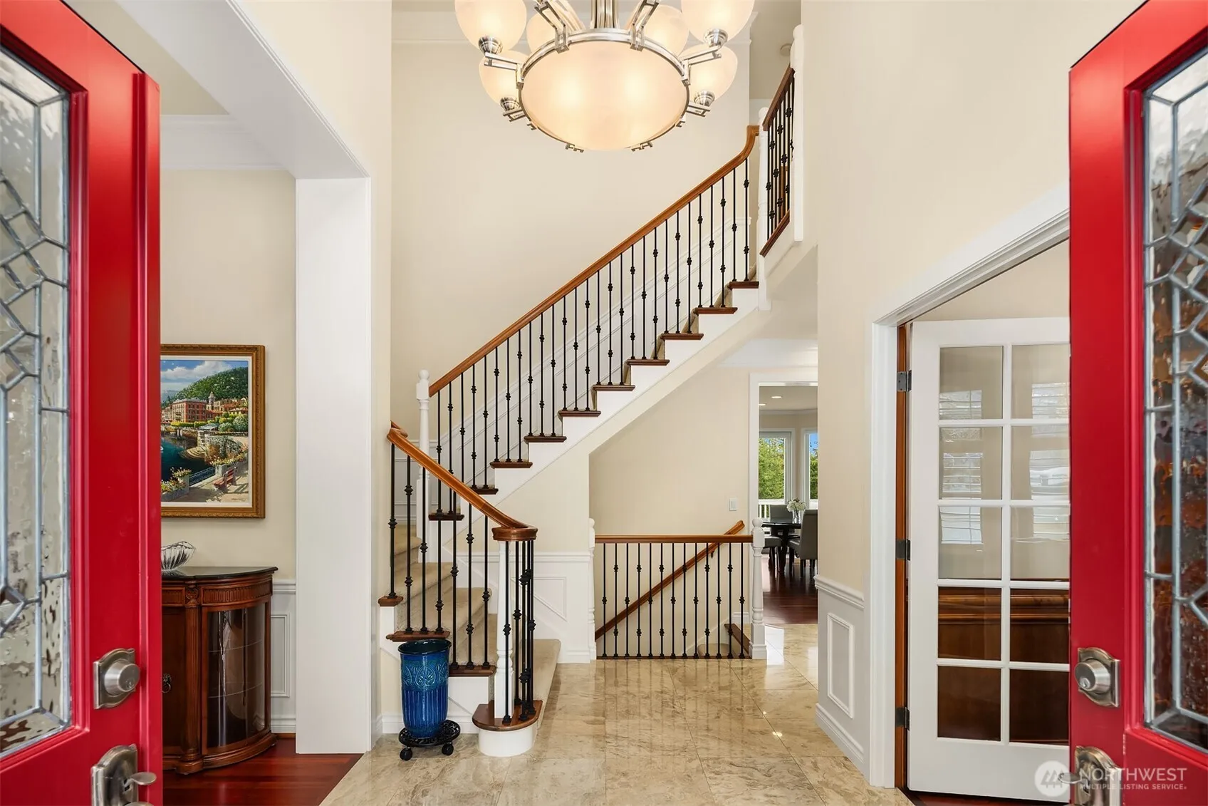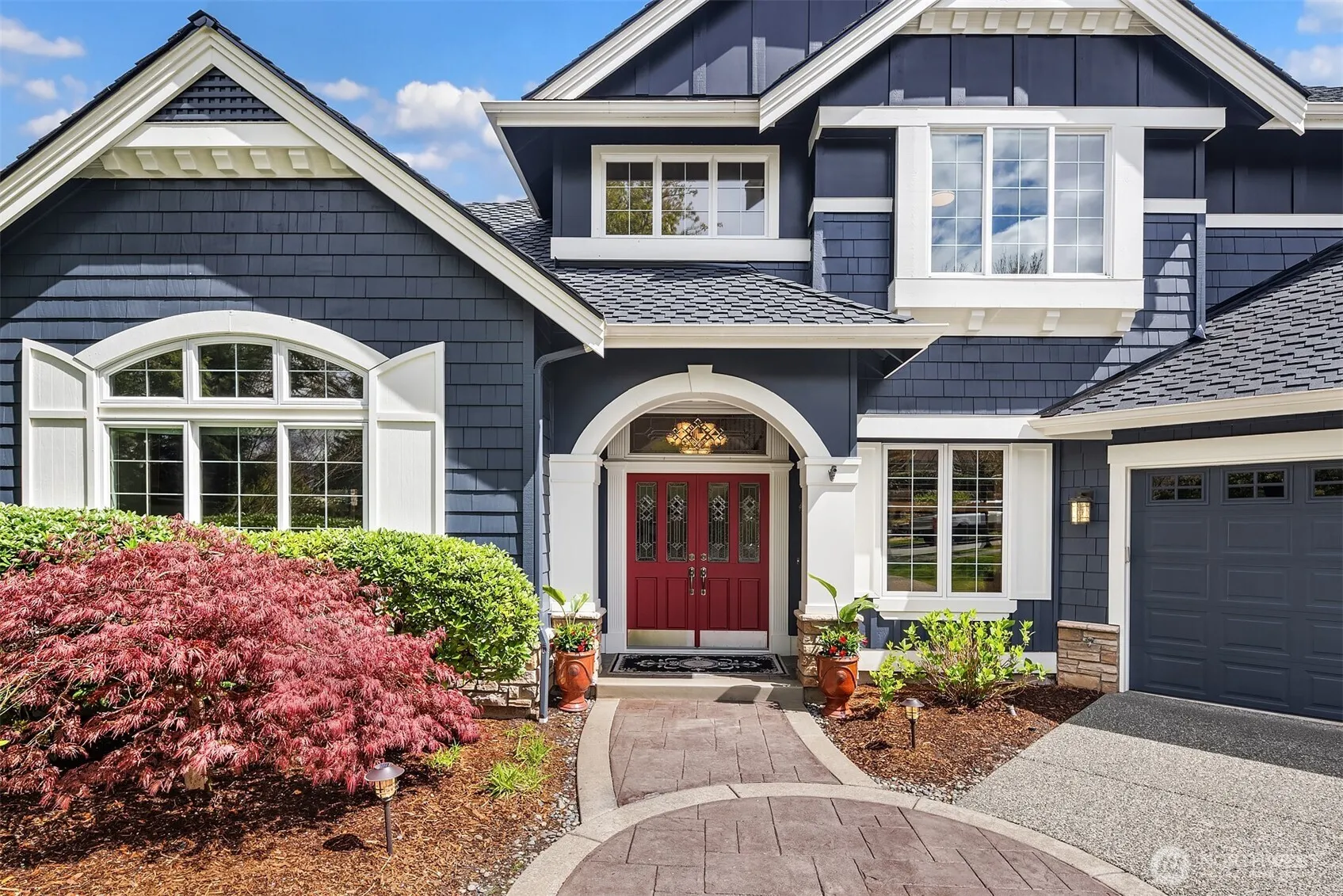 Perched above the 8th fairway of the Golf Club at Snoqualmie Ridge this meticulously maintained Buchan custom home boasts panoramic views of Mt. Si, The Cascades and Snoqualmie Valley. Natural light floods the main level. Formal living/ dining rooms flow seamlessly into a grand kitchen & great room and out onto an expansive deck great for entertaining. Top level features 4 bedrooms including a spacious primary suite with a fireplace, built-in bookshelves and endless views. Lower level features a huge entertainment room, 5th bedroom with a full bath, in-home sauna and flex space with options for a gym/office. Back yard with incredible views features a sport court & entertaining space.
