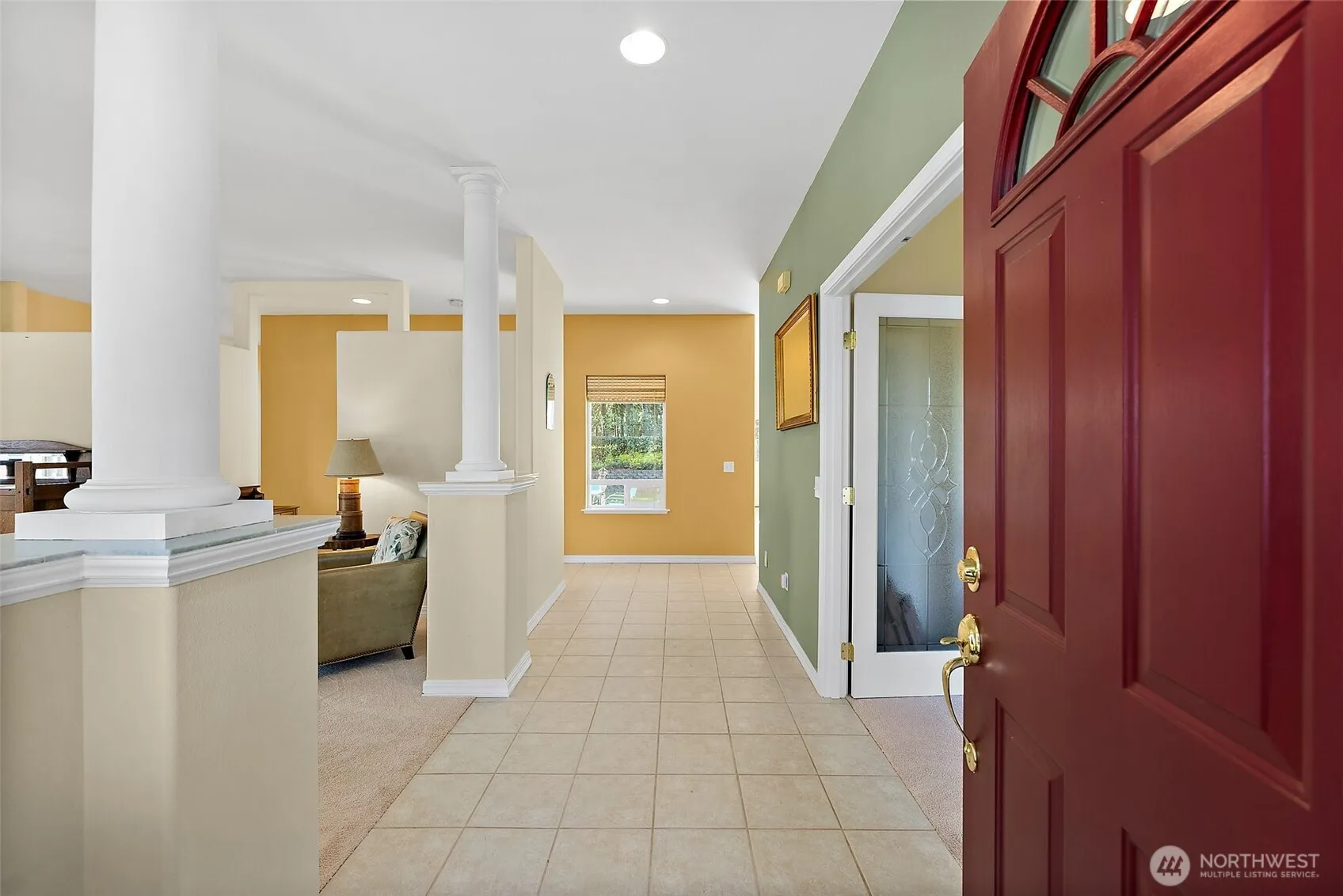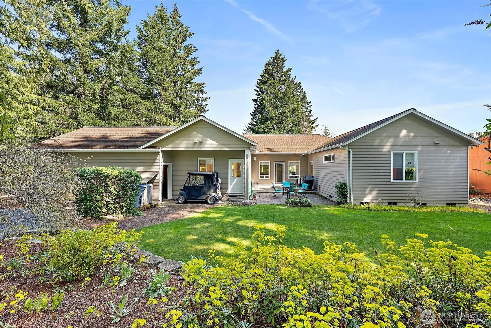 Welcome home! This custom built rambler backs up to hole 14 on desirable Lakeland Village golf course. Walking into the entrance you are greeted with 9′ ceilings throughout, an abundance of natural light and a spacious living room. Breathtaking views from your dining room include Mt. Rainer & Puget Sound. Upgrades include new roof, granite countertops throughout, new primary bedroom shower, LED lighting, windows, gutters & more. Enjoy the golf course and wildlife from your private backyard steps away from the course. All situated in Lakeland Village with 27-hole golf. Ample parking including garage, driveway and graveled area on northside of the garage. Additional amenities include trout stocked lake, beach, parks and sport courts.