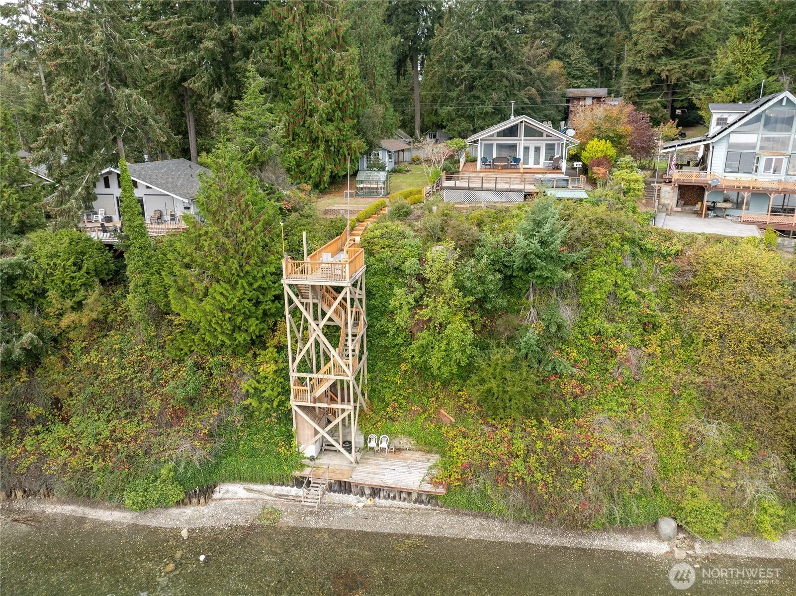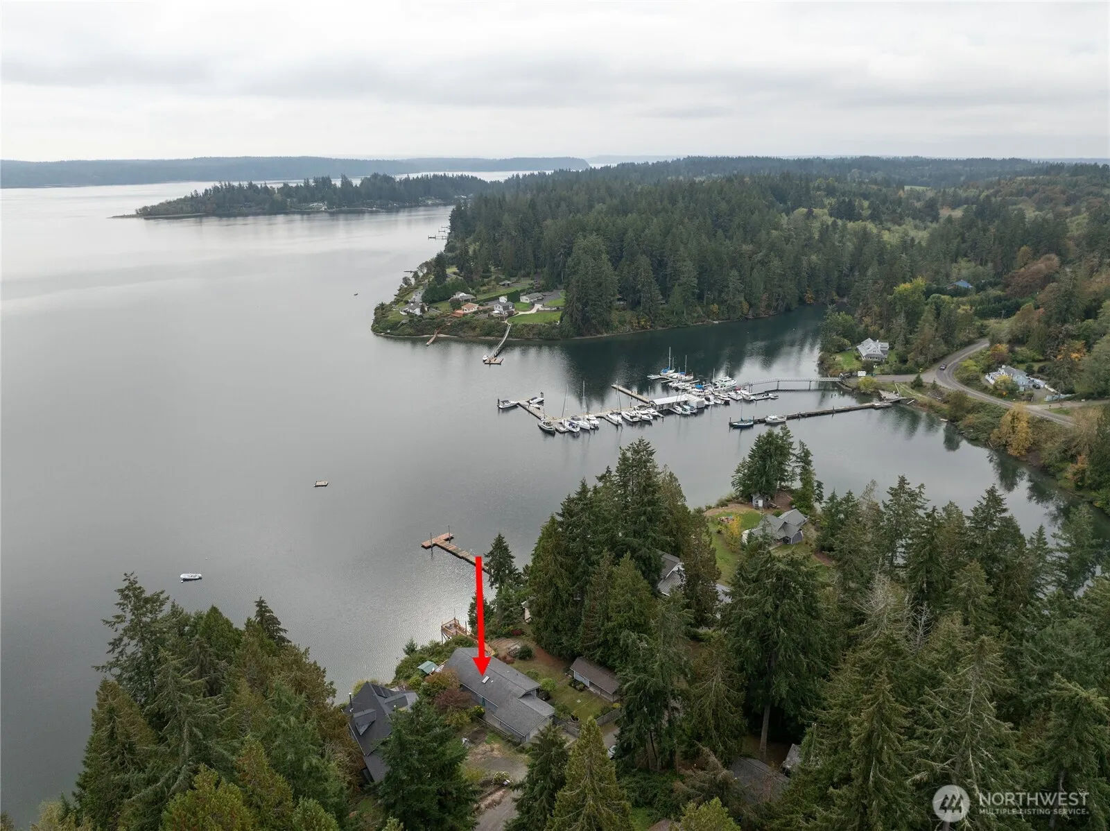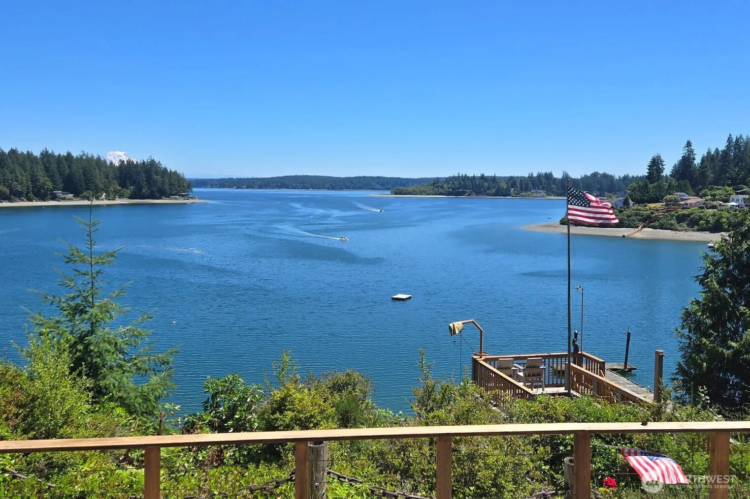 Spectacular location with unbelievable views of Filucy Bay, Longbranch Marina, and Mount Rainier. This cottage has expansive, newly rebuilt decks that provide a perfect setting for entertaining or relaxing while enjoying that view. A solidly built tower staircase gives you access to 82 feet of pristine tidal beachfront, which is ideal for coastal adventures. Beautifully landscaped grounds are adorned with mature trees and flowering shrubs, creating a picturesque outdoor oasis. Freshly painted kitchen, living room, and bathroom, an efficient wood stove, and a versatile layout with one bedroom plus an office or mudroom. Nice, oversized 2-car garage, carport, a private guest house, and greenhouse. A rare opportunity, not to be missed!