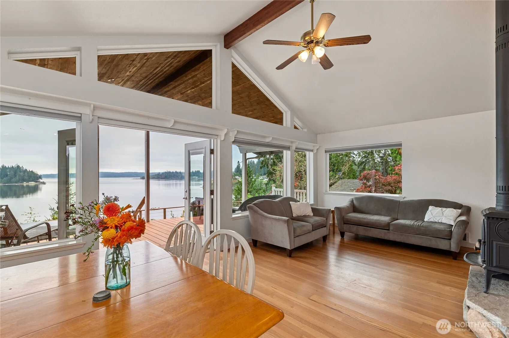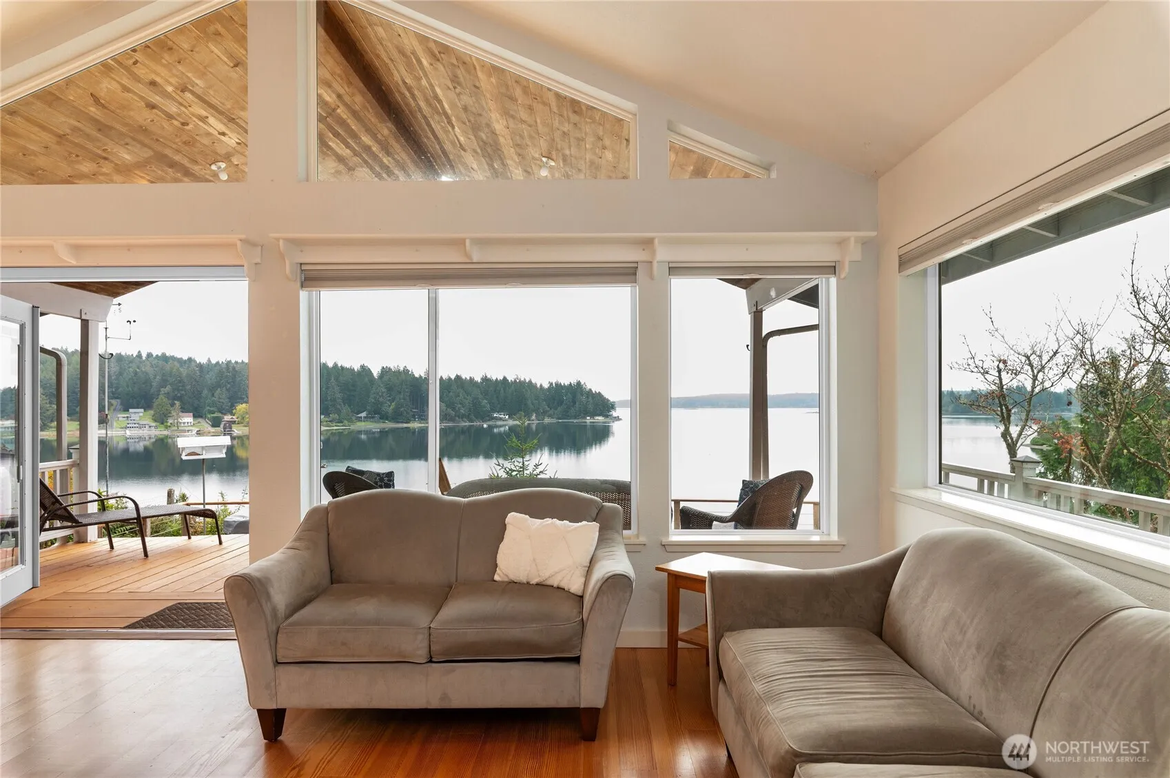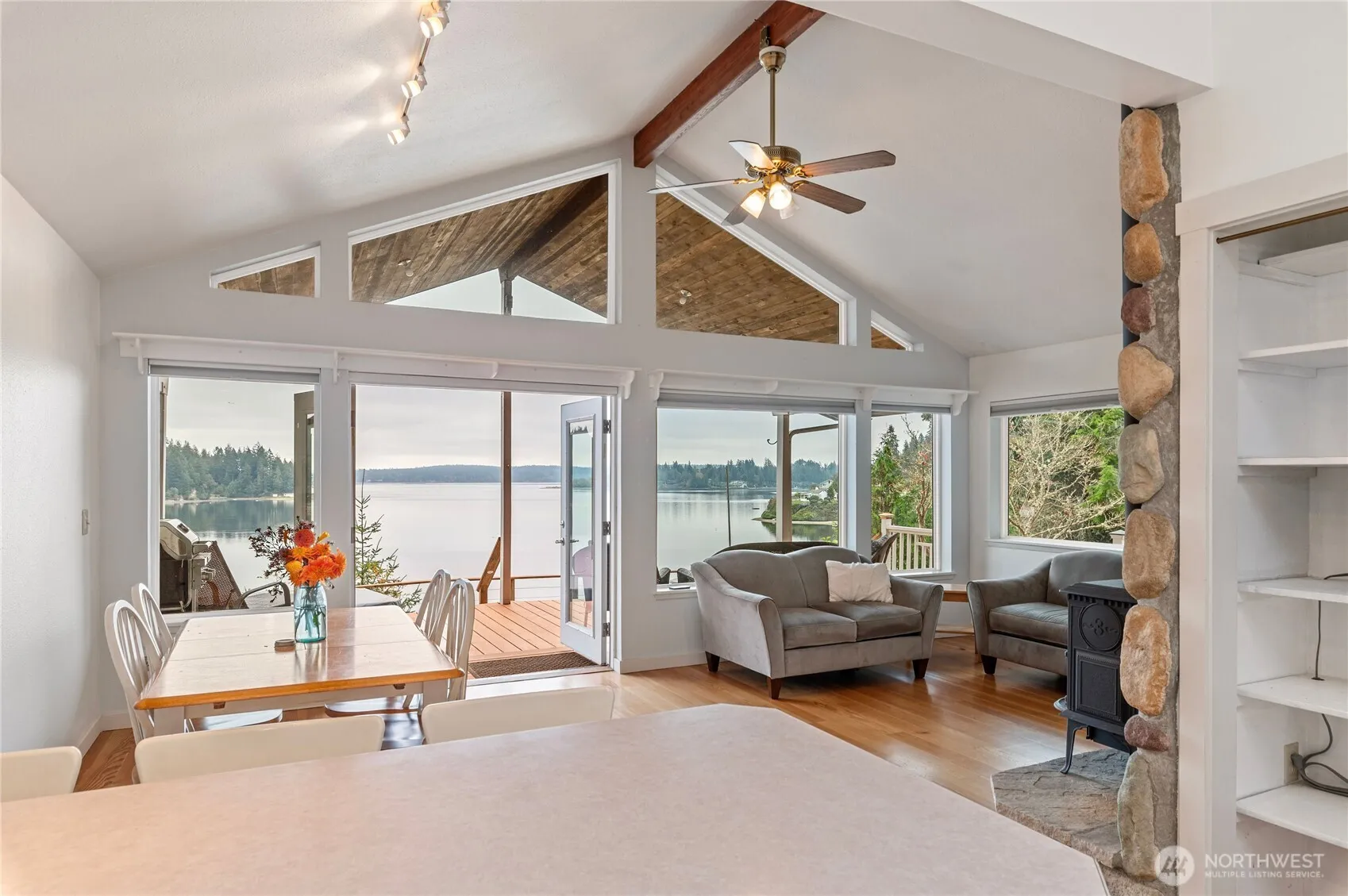 Spectacular location with unbelievable views of Filucy Bay, Longbranch Marina, and Mount Rainier. This cottage has expansive, newly rebuilt decks that provide a perfect setting for entertaining or relaxing while enjoying that view. A solidly built tower staircase gives you access to 82 feet of pristine tidal beachfront, which is ideal for coastal adventures. Beautifully landscaped grounds are adorned with mature trees and flowering shrubs, creating a picturesque outdoor oasis. Freshly painted kitchen, living room, and bathroom, an efficient wood stove, and a versatile layout with one bedroom plus an office or mudroom. Nice, oversized 2-car garage, carport, a private guest house, and greenhouse. A rare opportunity, not to be missed!