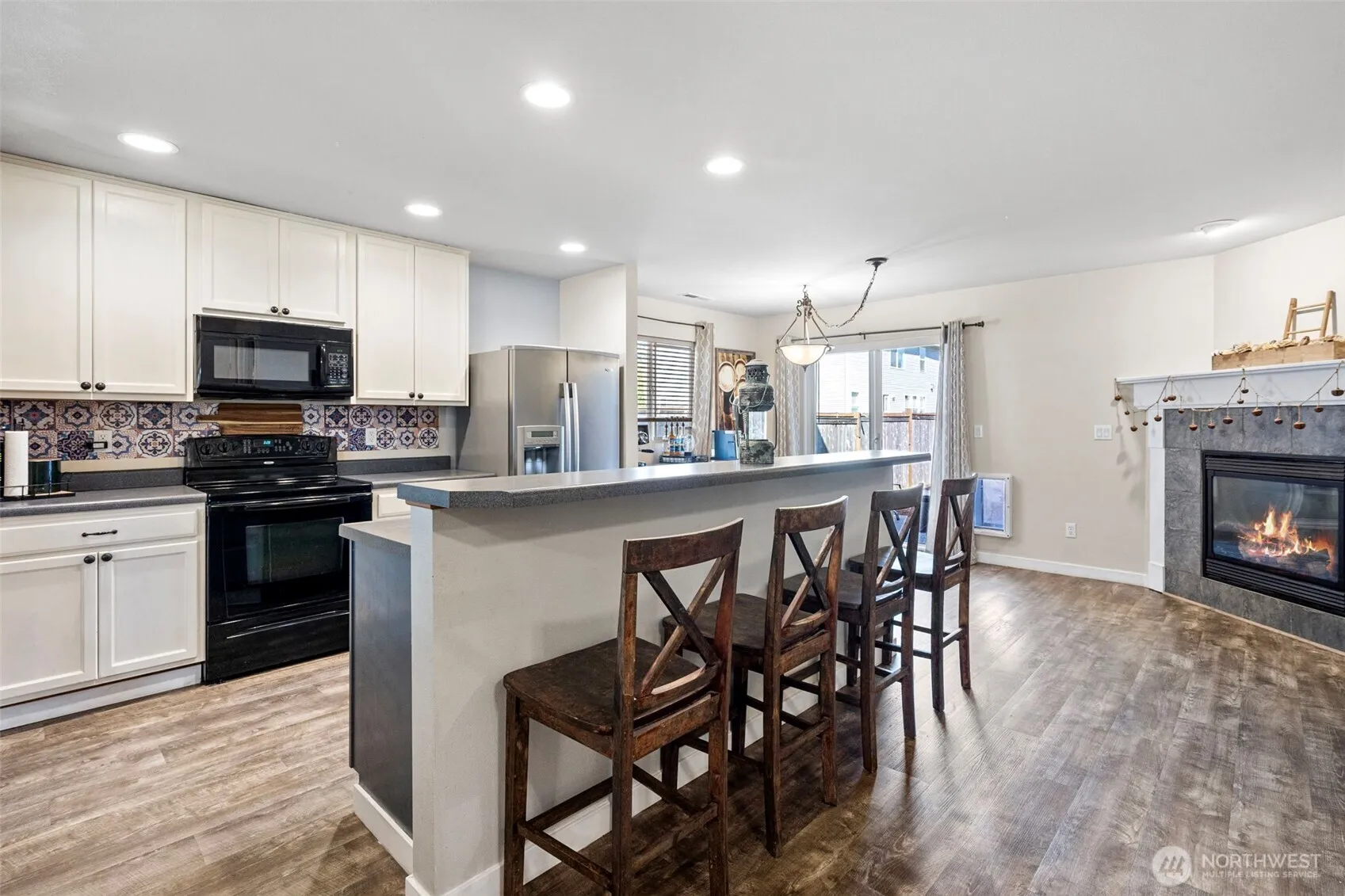 Beautiful 5-bed, 3.5-bath home with over 2,500 sq ft of flexible living w/updated flooring, open-concept layout & cozy gas fireplace. The kitchen features bar seating, stainless appliances, stylish backsplash & plenty of storage—ideal for gatherings or everyday meals. Upstairs offers two ensuite bedrooms, including a spacious primary suite with walk-in closet, soaking tub, dual vanities & separate shower. Three additional bedrooms & a full bath provide space for everyone. The fully fenced backyard is perfect for relaxing or entertaining & the neighborhood park are just steps from your front door. Minutes to I-5, shopping, parks, JBLM & top-rated Tumwater schools. Room to grow, space to thrive—this one checks every box!