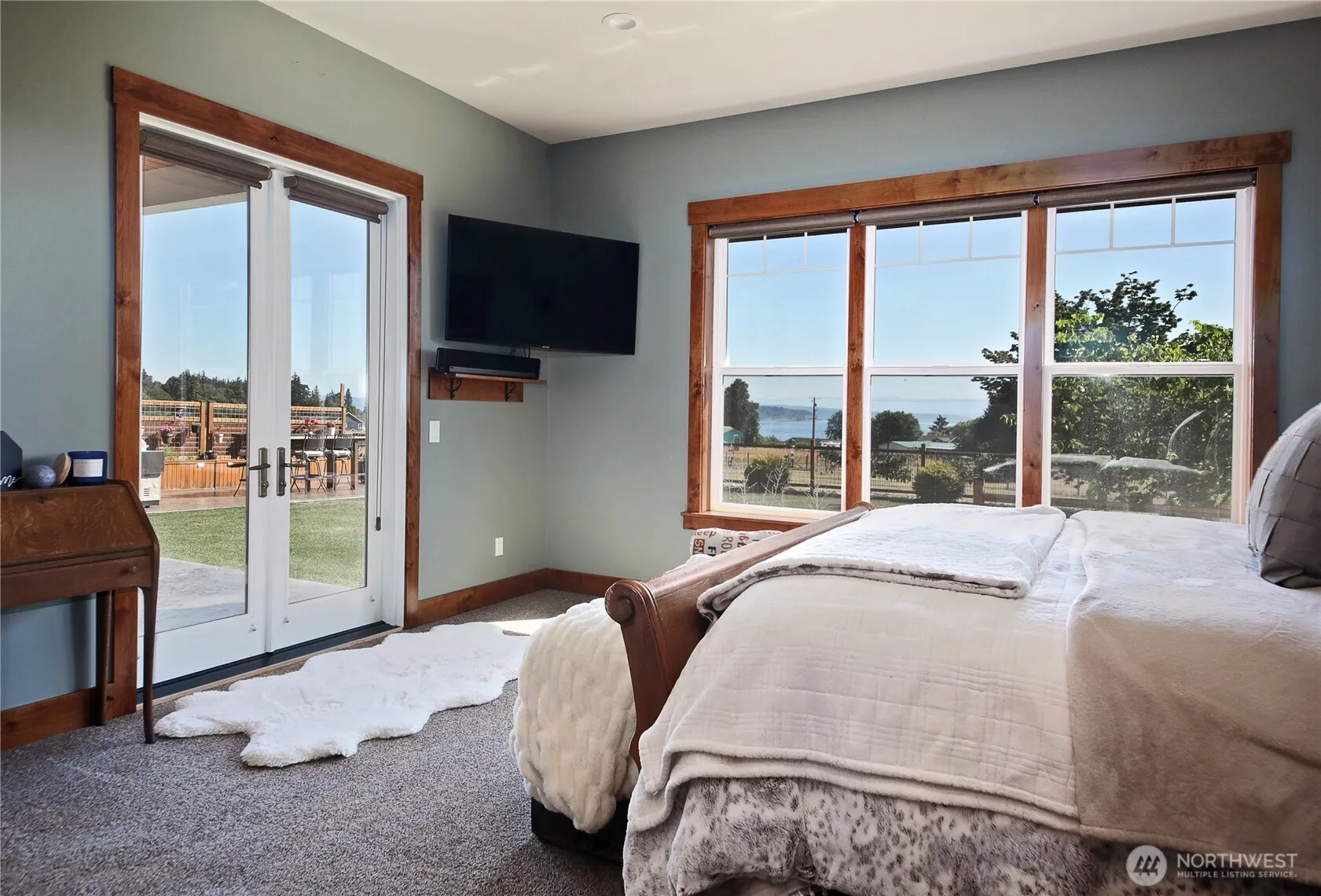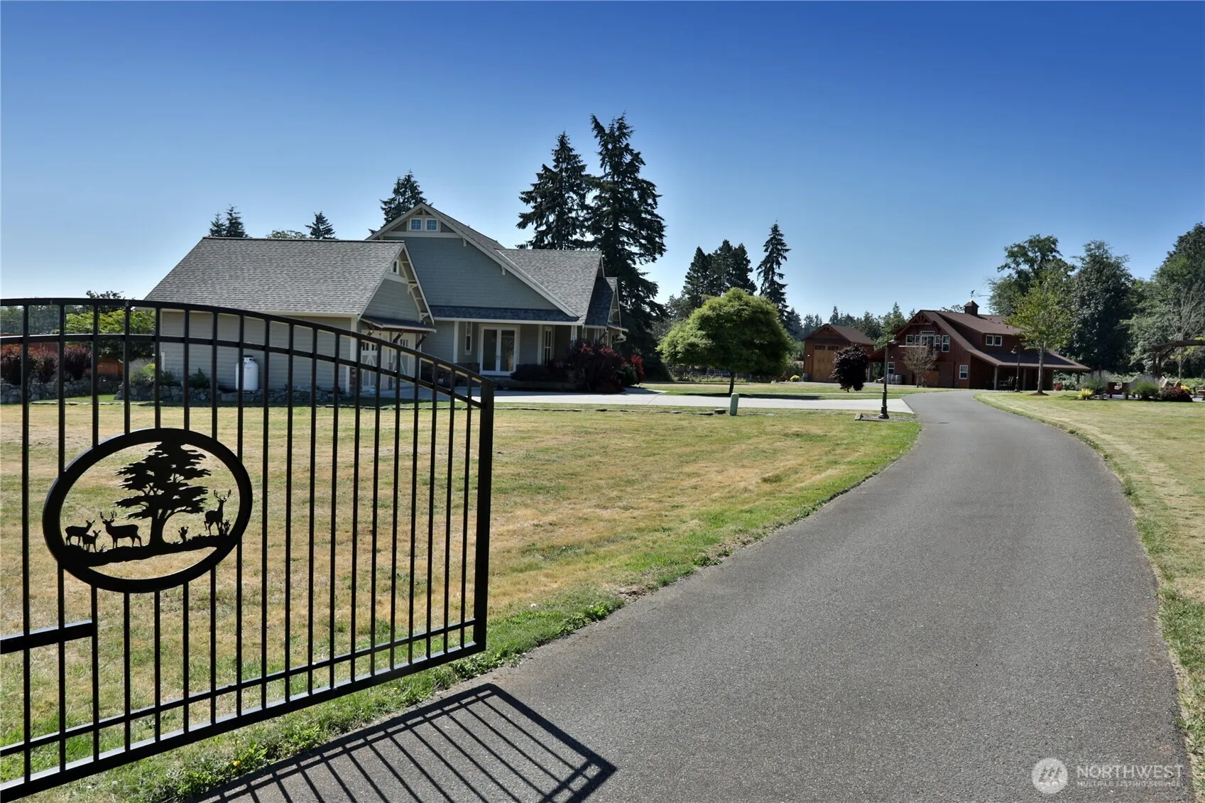 Welcome to the exquisite Black Walnut Terrace Estate with stunning views of Puget Sound, Mt Baker and The Cascades. This property has everything from beautiful outdoor spaces, a charming guest house that anyone would love to stay in, multiple garage and shop spaces, RV hook up, and so much more. The 6+/- acres is fully fenced with an abundant 22 tree orchard, raised garden beds and fenced pastures. The outdoor fireplace and patios are situated to take advantage of the views and enjoy the gardens. The main house boasts an open concept with a fabulous chef’s kitchen, living and dining space. The sumptuous primary suite has custom cabinets throughout the closet and elegant bathroom. Attention to detail is what sets this property apart!