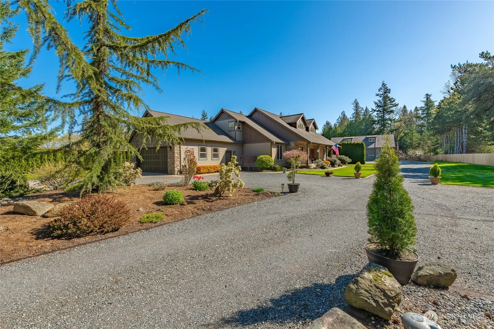 Gorgeous NW Contemporary set back on a park-like 1.77 acres. Huge kitchen with granite, custom cabinets, walk-in pantry, prep sink, and SS appliances. Bright master suite with tile shower and walk-in closet. Striking stone entry, Rock fireplace, Oak floors, Clear fir doors/trim, high efficiency furnace with A/C, tankless hot water, vaulted ceilings/skylights. Lovely Koi pond out front. 937sf. Guest Suite, Bonus room/4th Bedroom upstairs in the main house. 2777sf. 3bd/3ba main house totaling 3714sf. plus a 768sf. Nonconforming ADU above the 48×32’ Shop has 1 br/Studio with kitchen and 1/2 bath with laundry and 3/4 bath in lower shop level. Separate Mini splits for heating/AC in the shop and ADU. Too many upgrades and improvements to list!